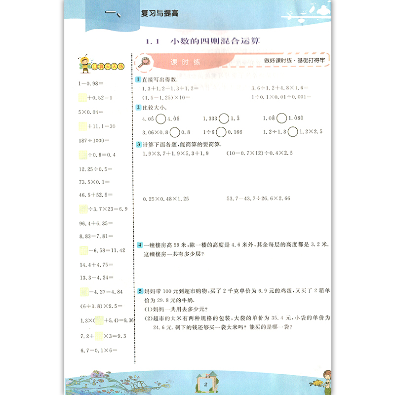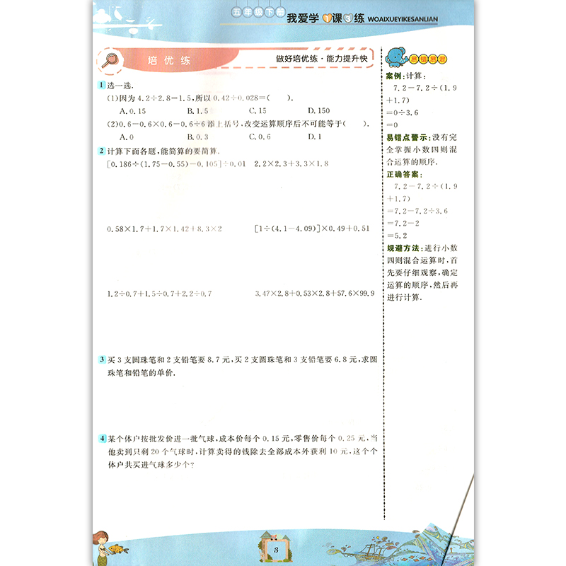 我爱学 一课三练 五年级下 数学 5年级下册第二学期 1课3练与上海市新教材同步配套上海地区专用上海小学教辅课后练习 小学生练习