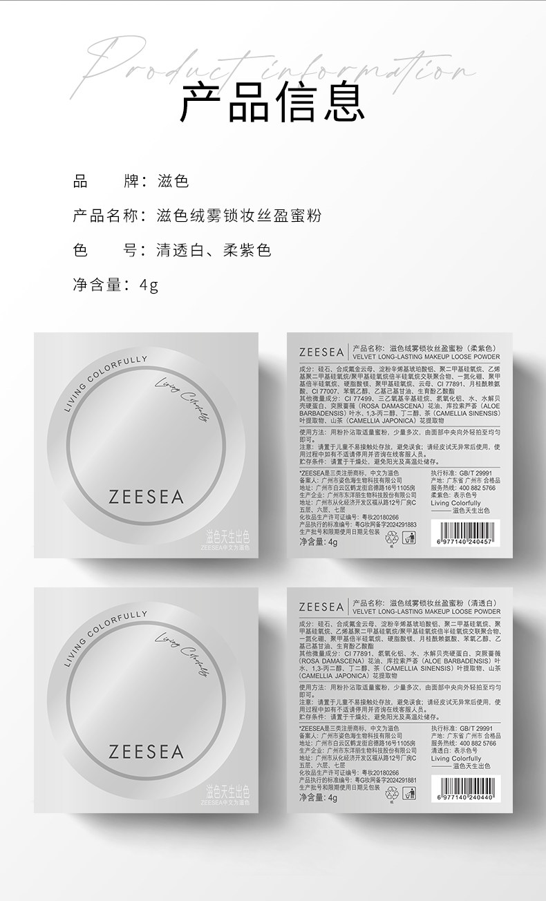 [蜜粉]【到手价13.3元 | 39.9元任选3件】ZEESEA滋色绒雾锁妆丝盈蜜粉4g(任选3件,拍下立减)