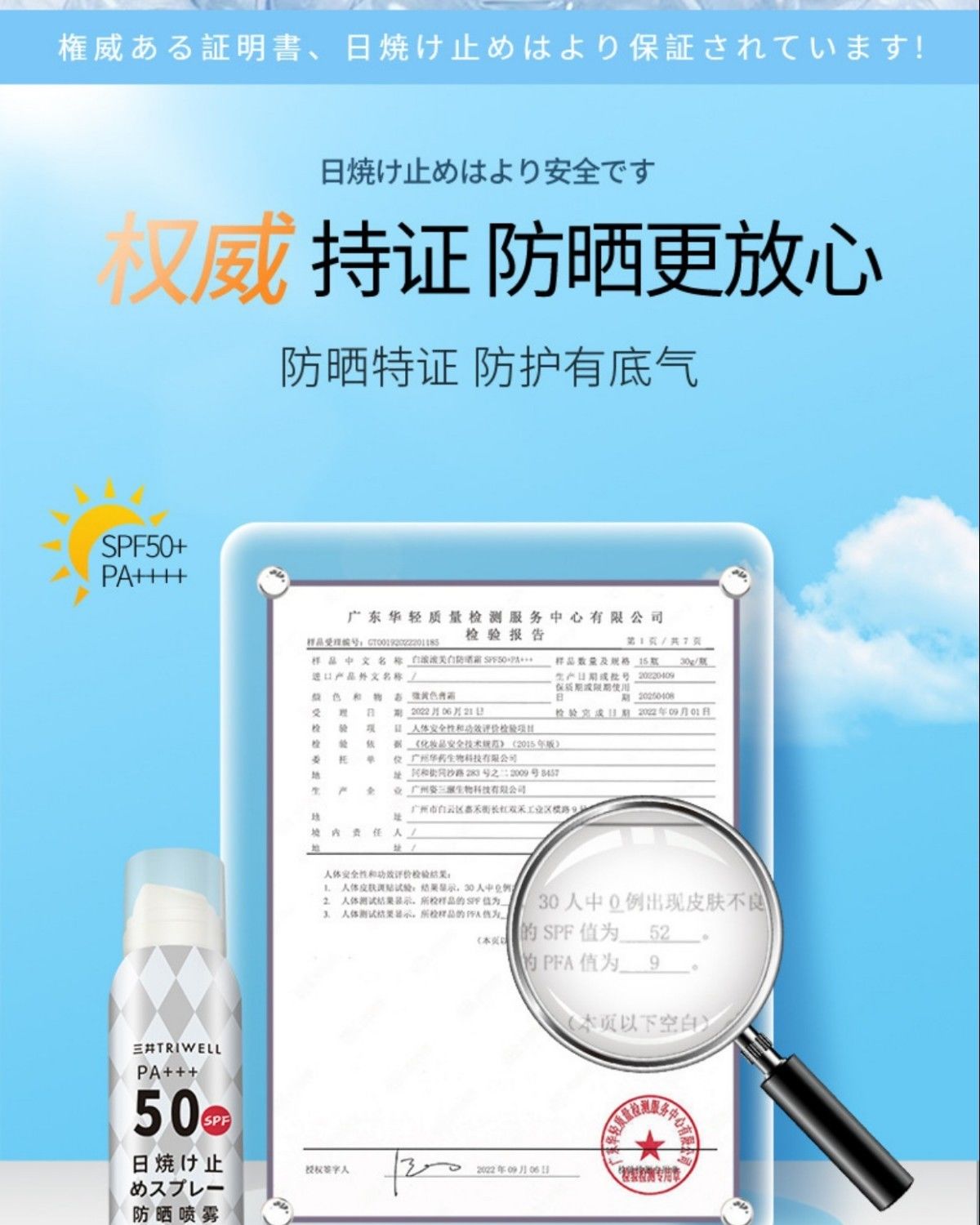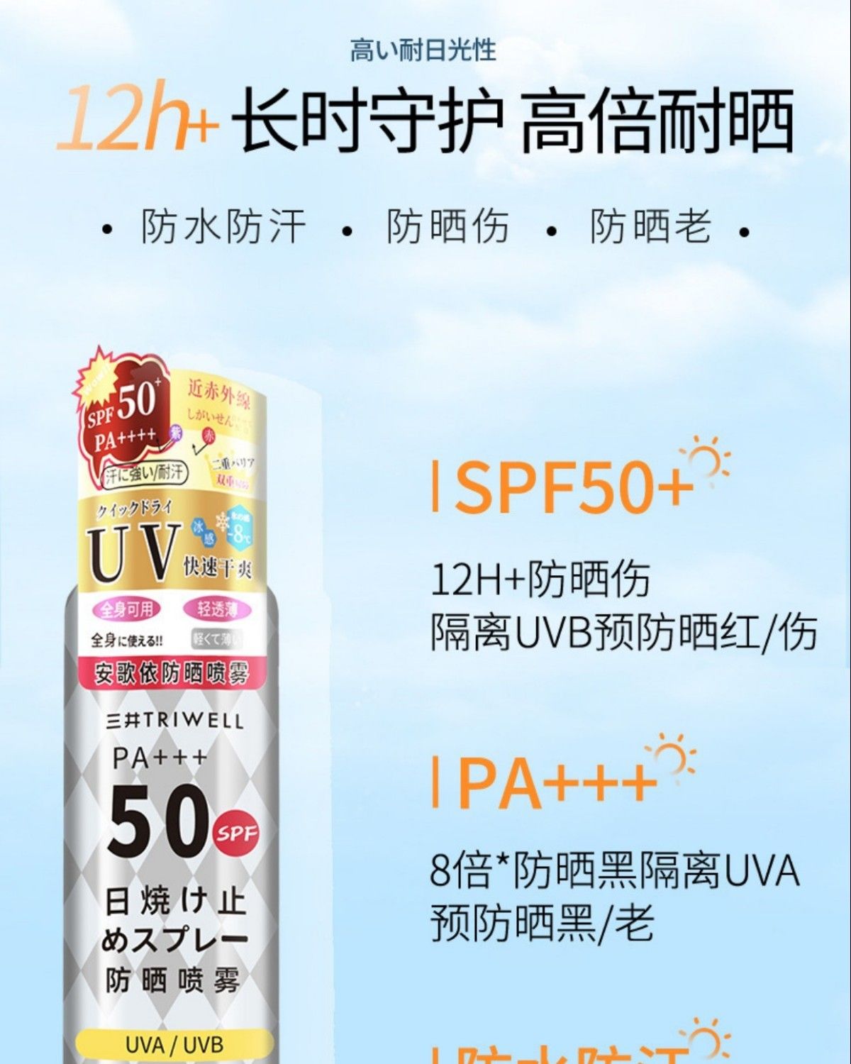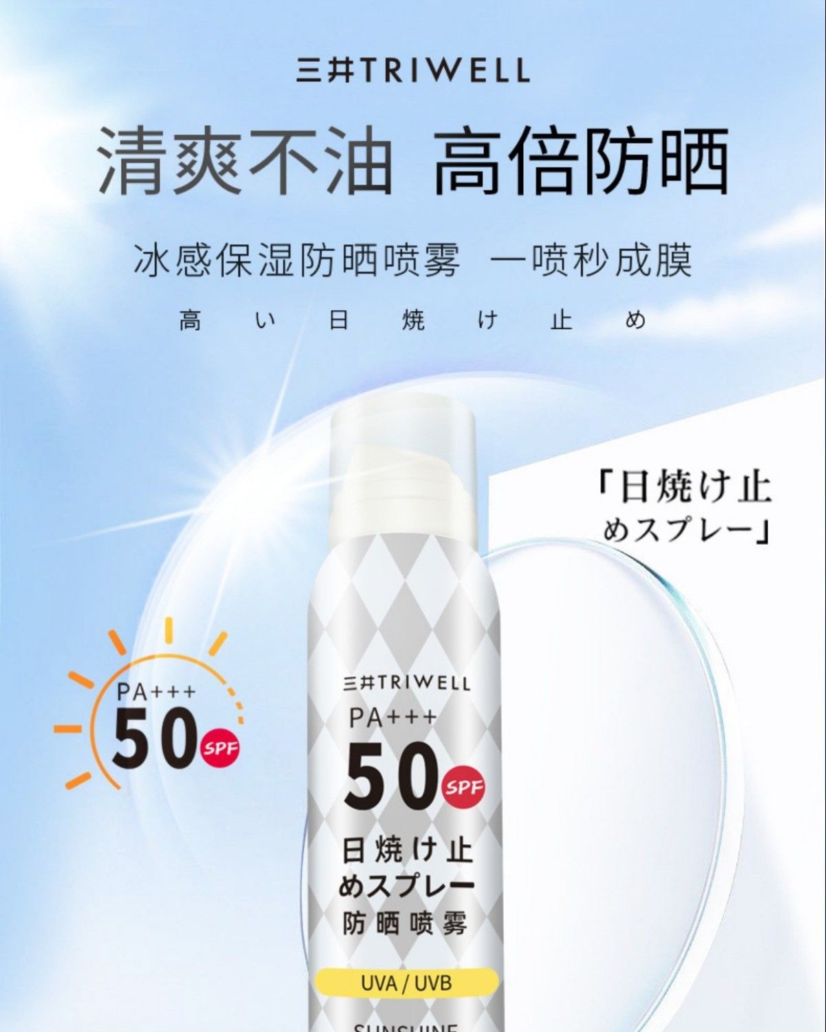 【爆款超低价预售 急单慎拍】三井防晒喷雾冰感白滚滚美白提亮肤色防紫外线夏季轻薄SPF50日本