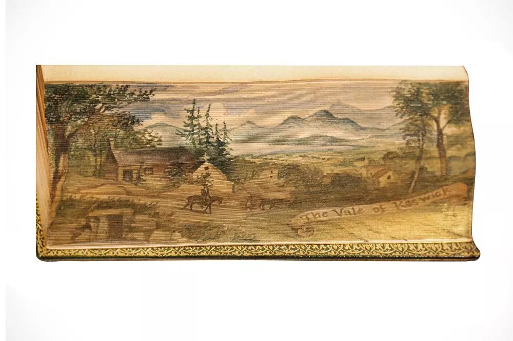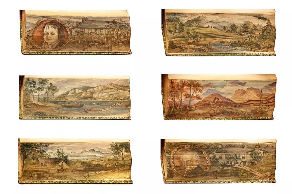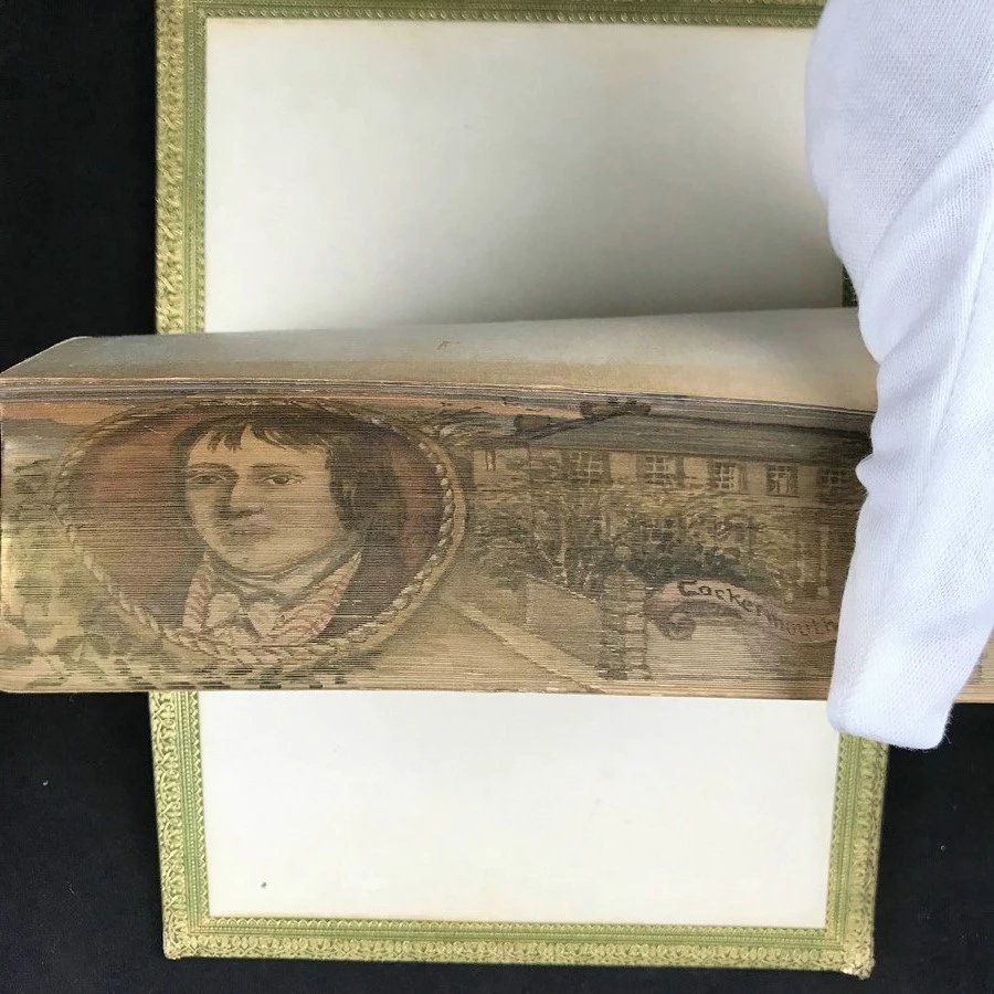 每一卷的书口画都不同,第一卷为华兹华斯的肖像和一个标有坎伯兰郡科克茅斯的小屋(华兹华斯的出生地);