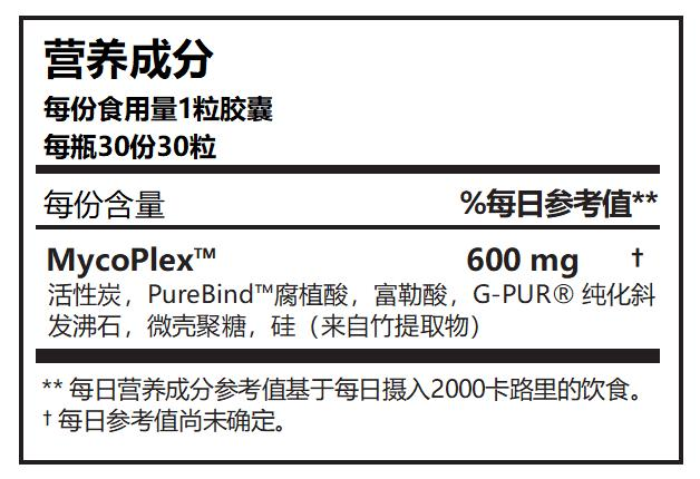 MycoPlex™ 含六种定向吸附成分(如G-PUR®沸石斜发沸石、PureBind™腐殖酸),这是一种获得专利、高度纯化的天然沸石形式。G-PUR®使用专有的纯化工艺来去除土壤中以前可能结合的任何污染物,使其能够与胃肠道内的更多污染物结合。斜发沸石是最理想的沸石形式,因为其他形式的沸石具有高铝与二氧化硅的比例,降低了它们的结合能力。它也更稳定,这意味着它不会在体内分解,并且对结合氨具有很高的亲和力。