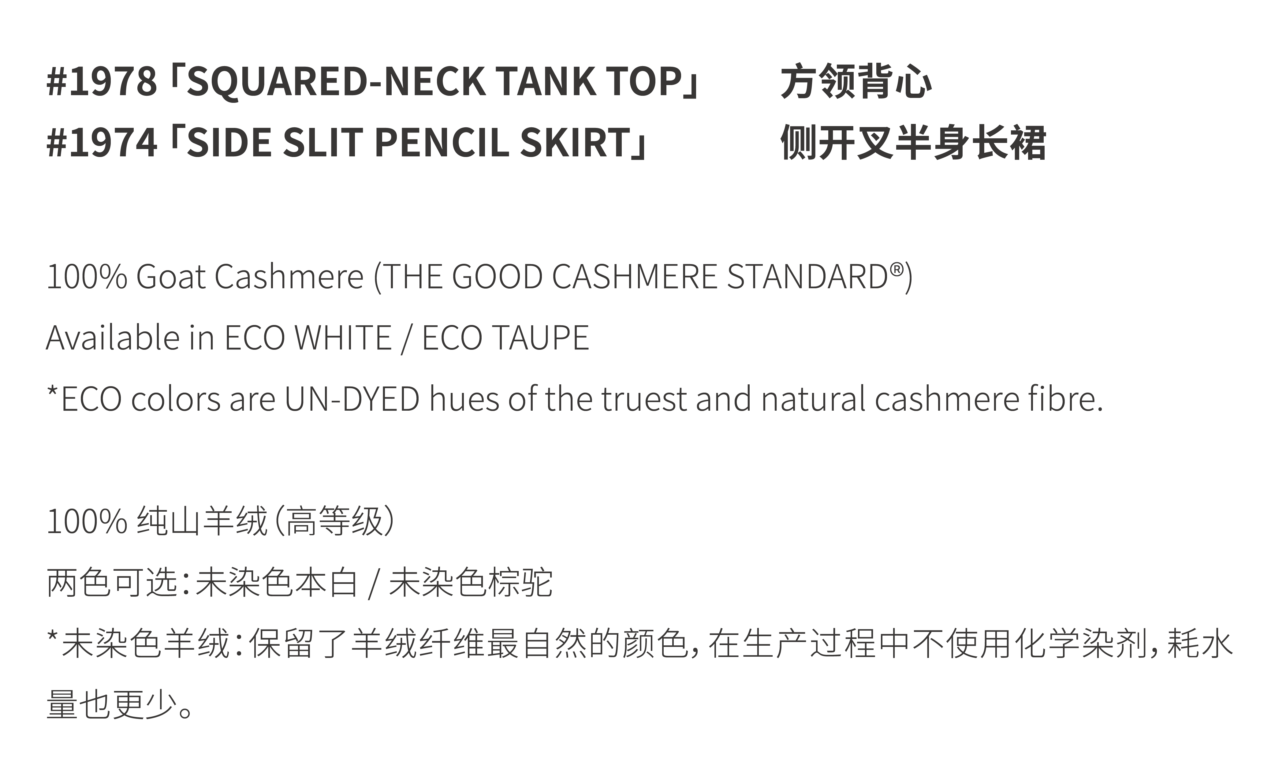 #1978 1974「SQUARED-NECK TANK TOP & SIDE SLIT PENCIL SKIRT」100% CASHMERE 方领背心和侧开叉半身长裙