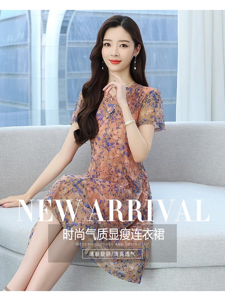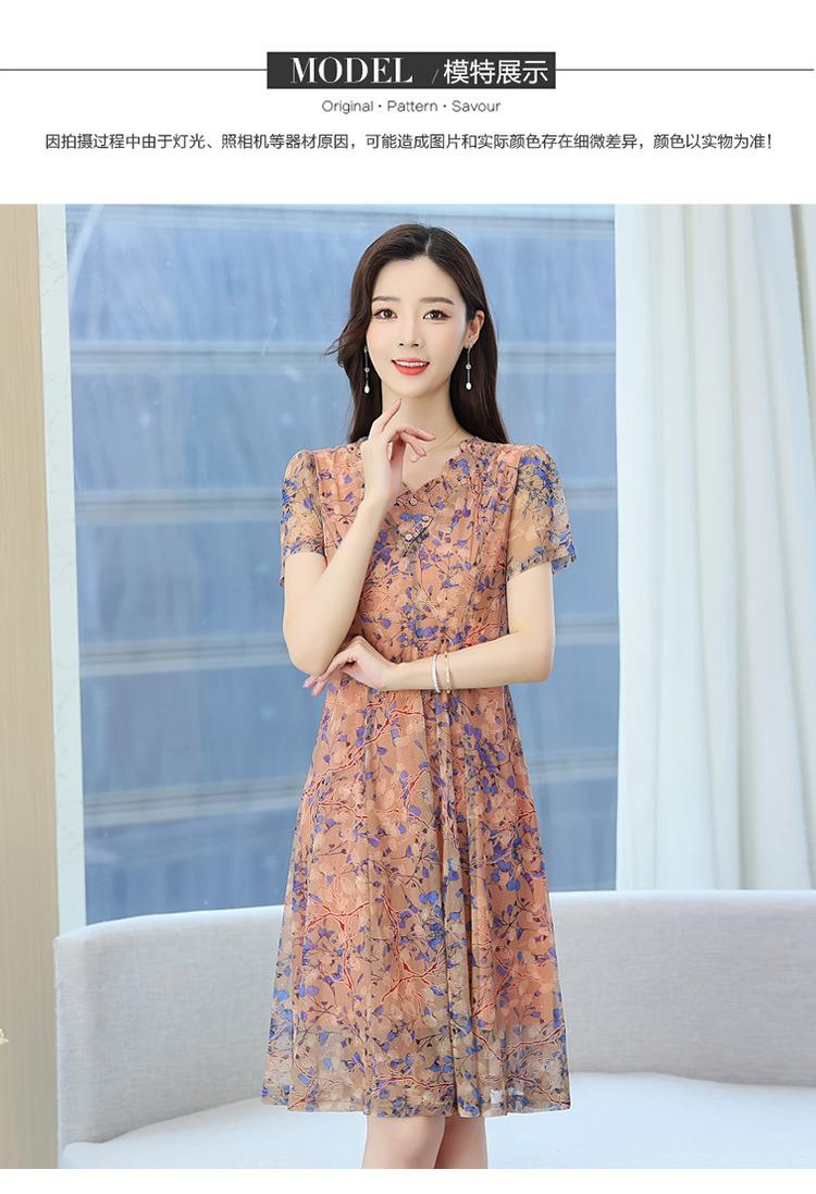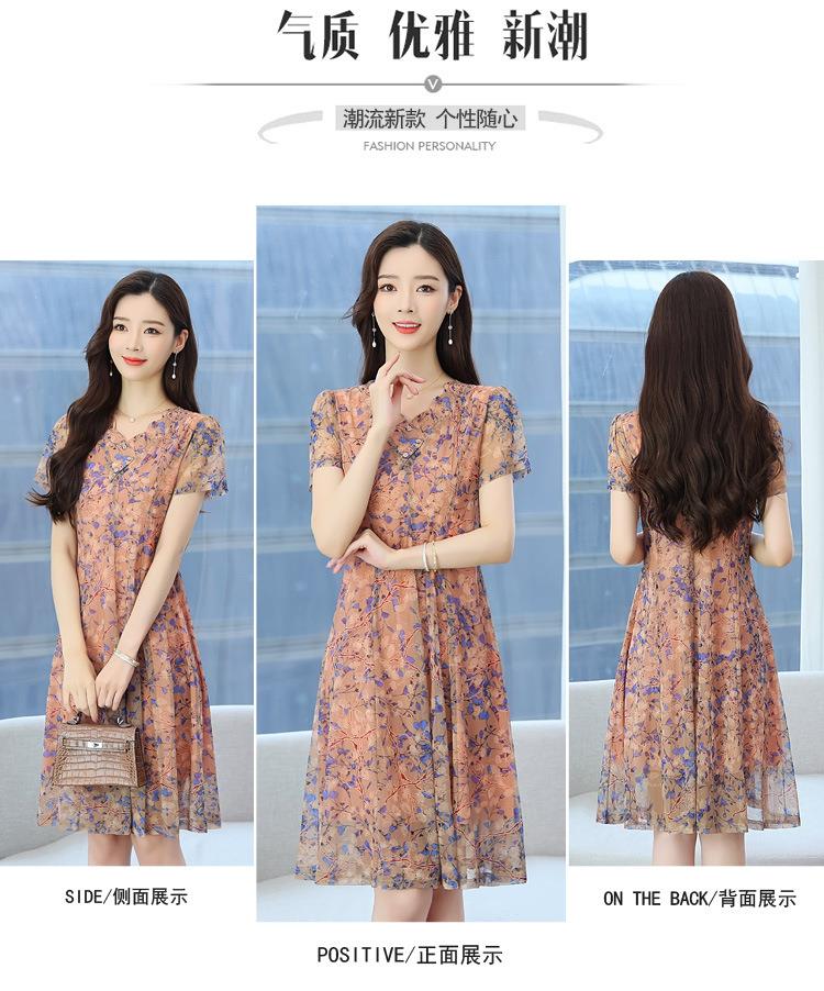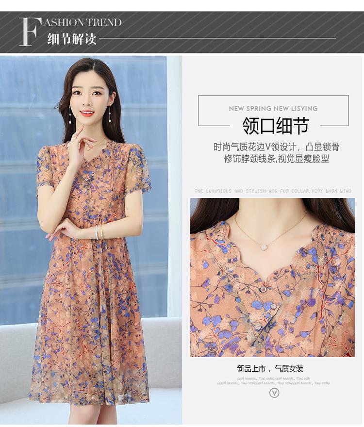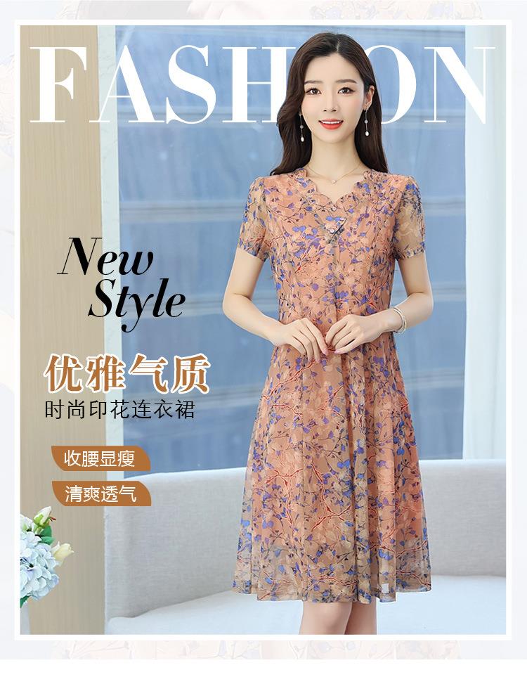 中年妈妈夏装连衣裙洋气新款40岁50中老年女2024夏季气质雪纺裙子