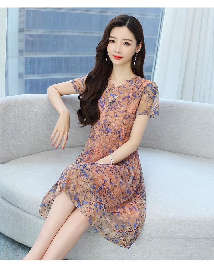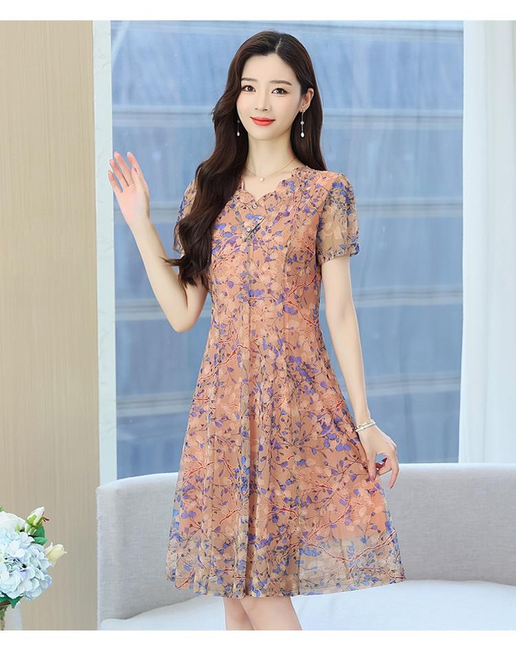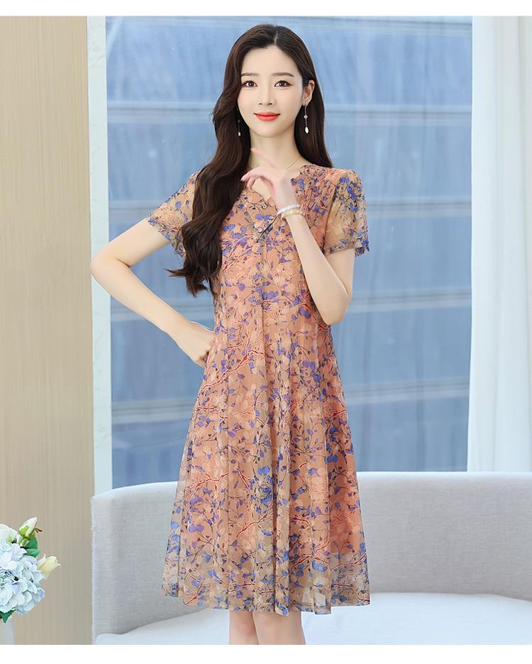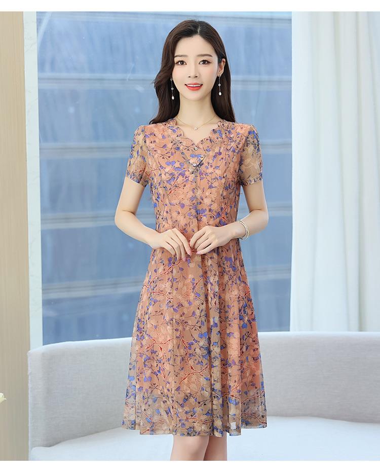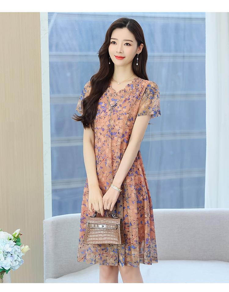 中年妈妈夏装连衣裙洋气新款40岁50中老年女2024夏季气质雪纺裙子