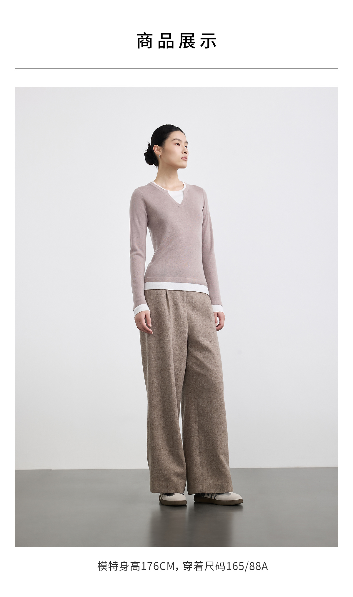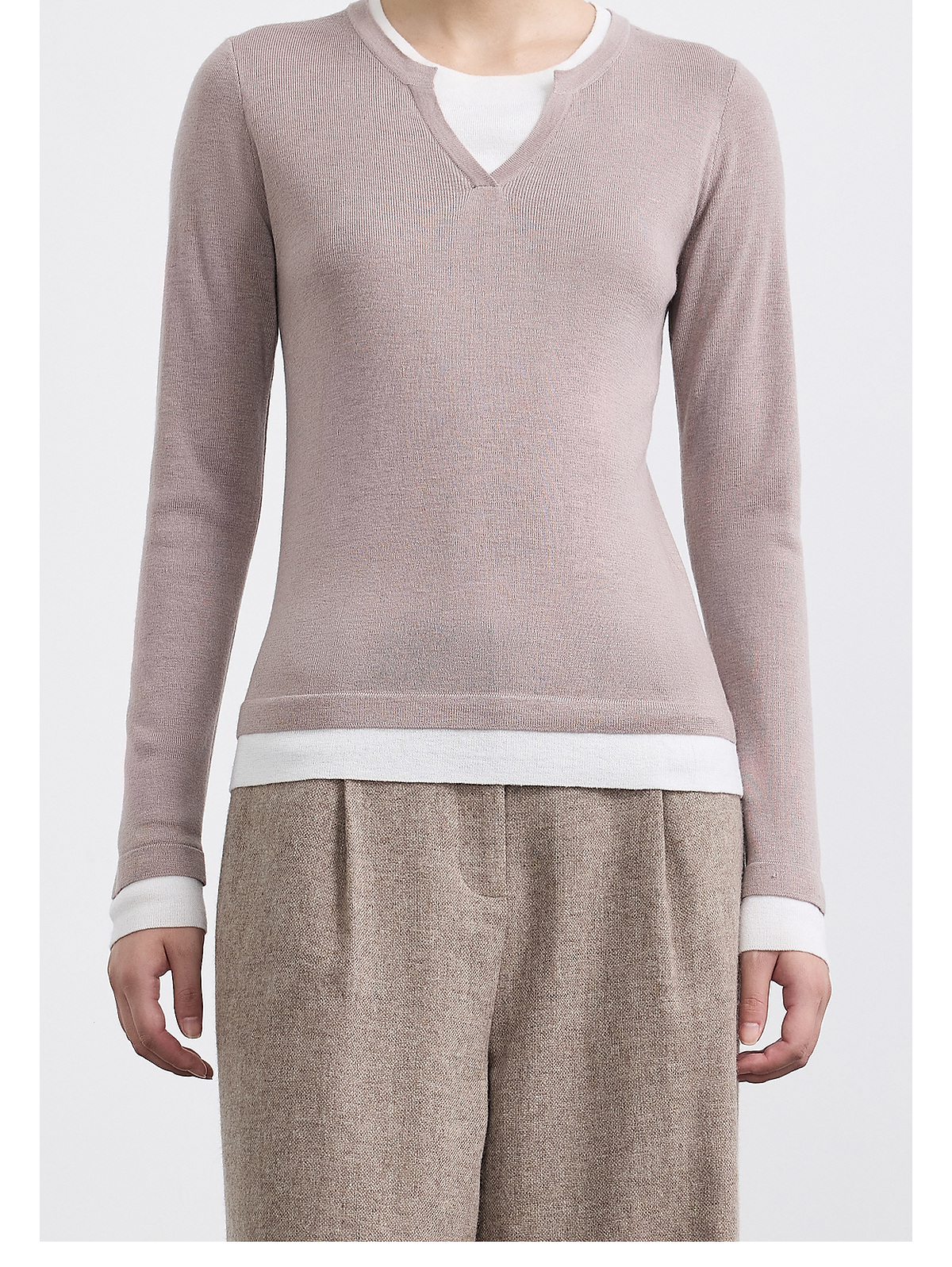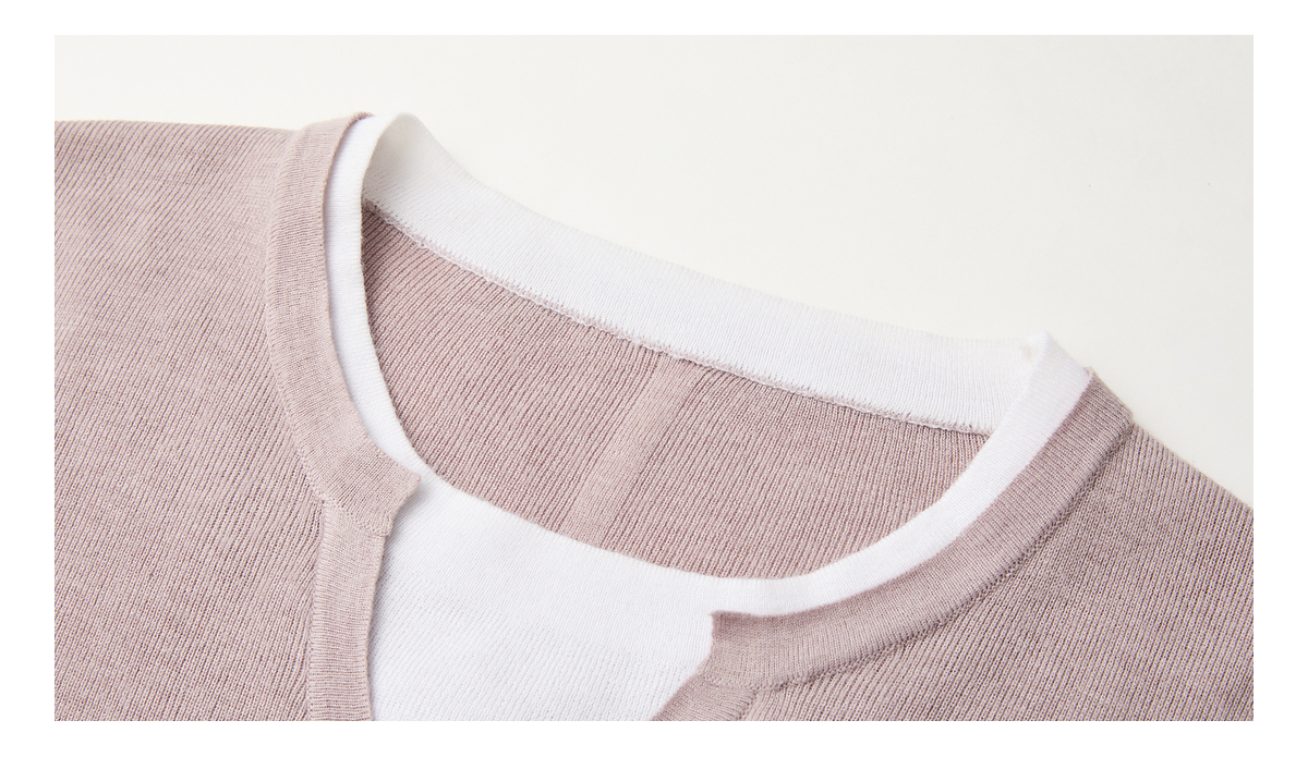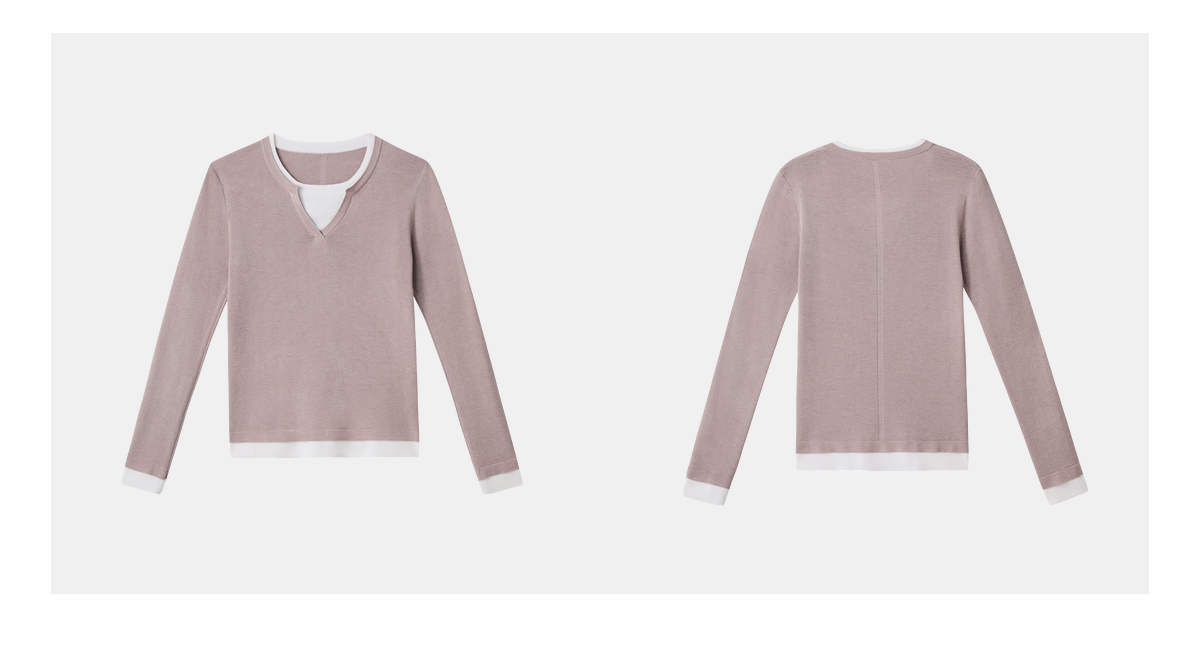 PURE TOUCH女装 25秋冬新款羊毛混纺针织衫v领拼接假两件套头毛衣
