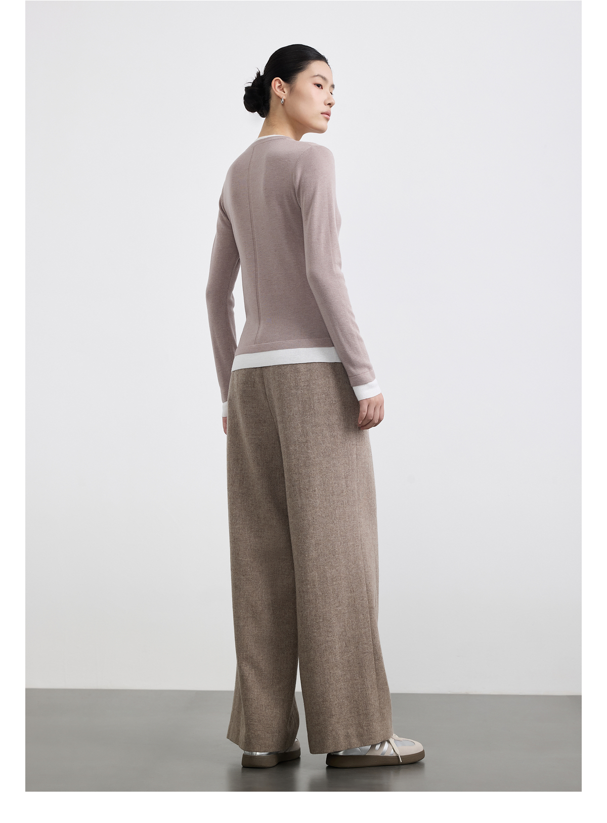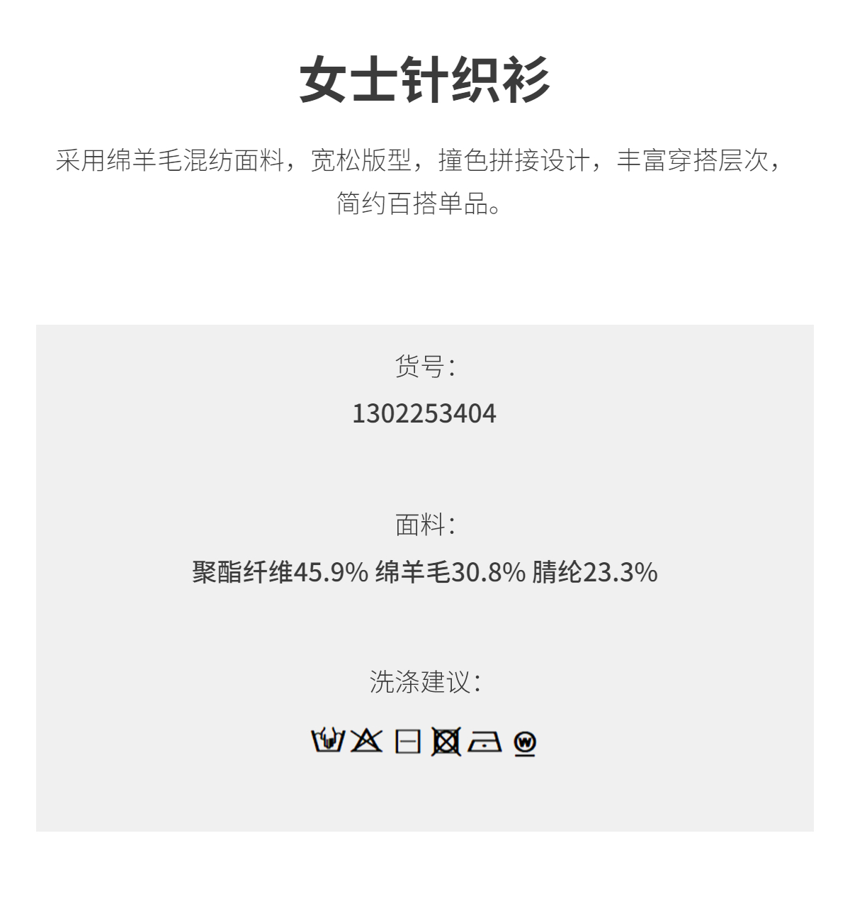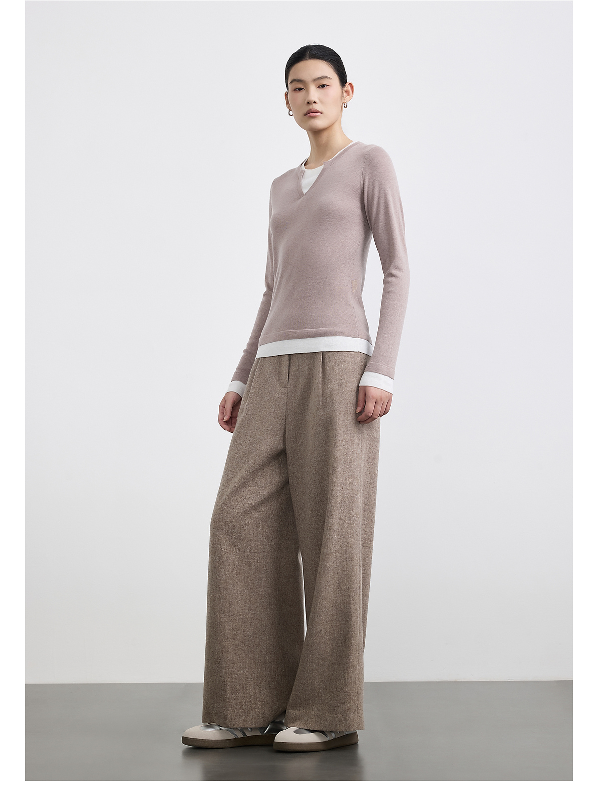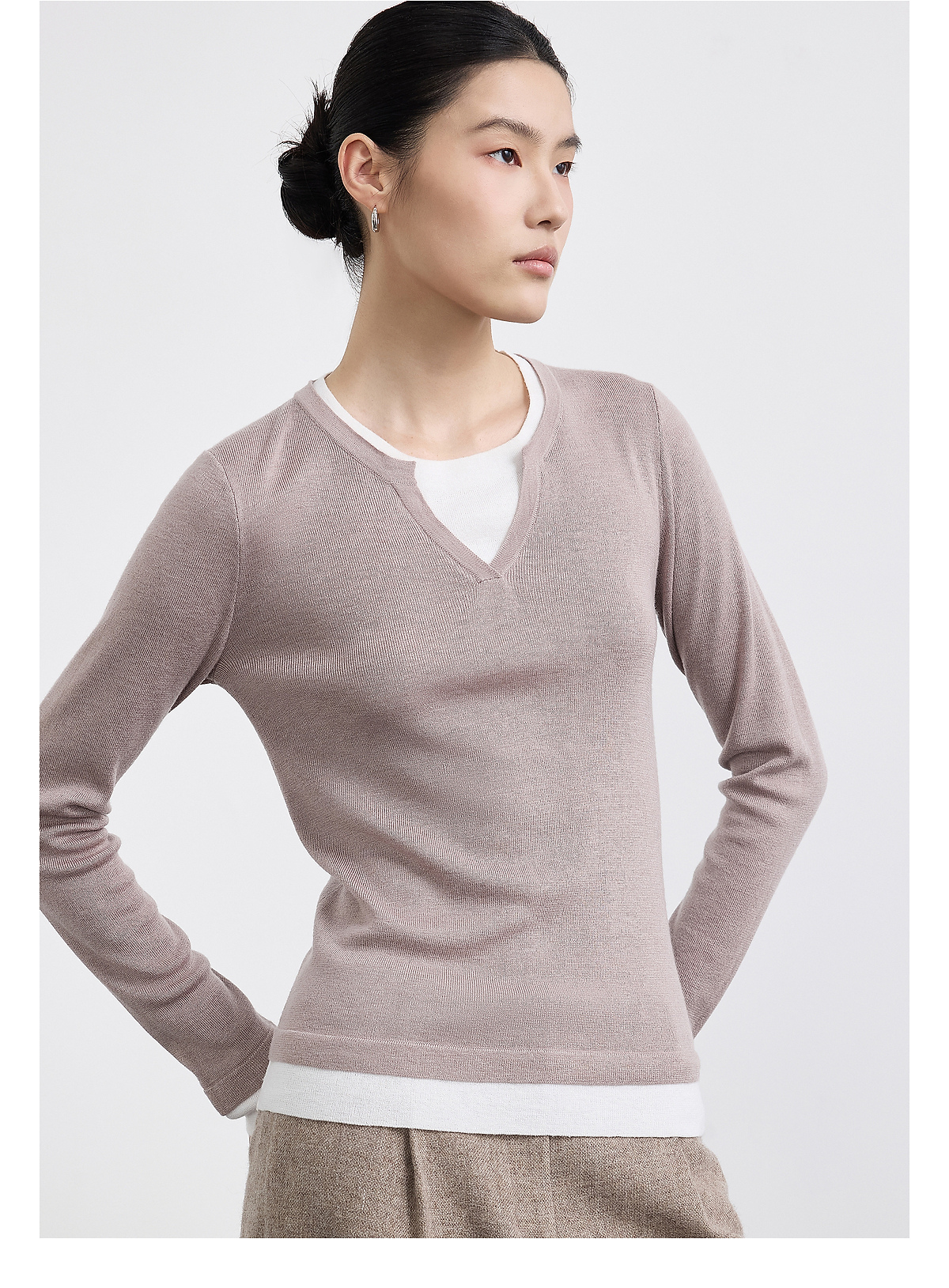 PURE TOUCH女装 25秋冬新款羊毛混纺针织衫v领拼接假两件套头毛衣