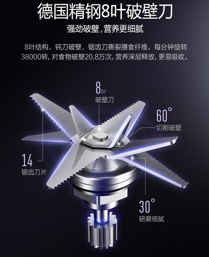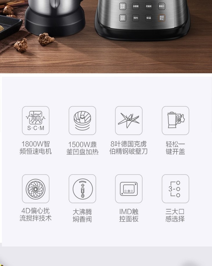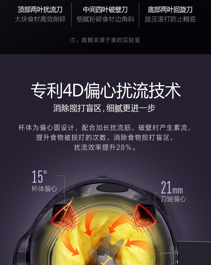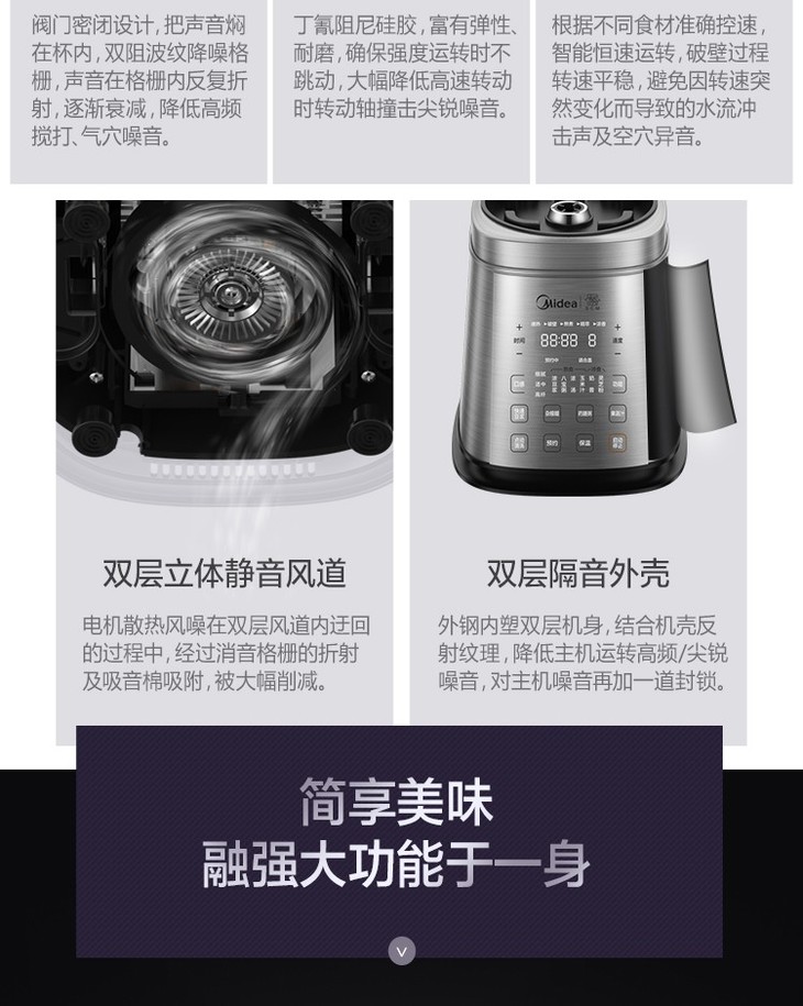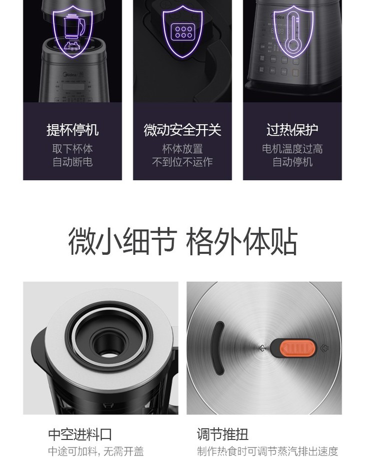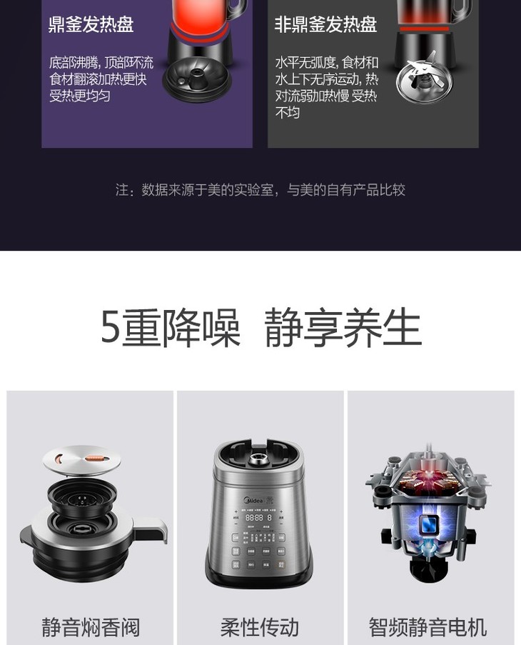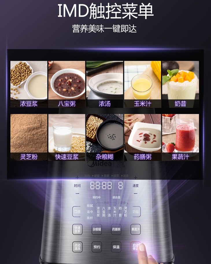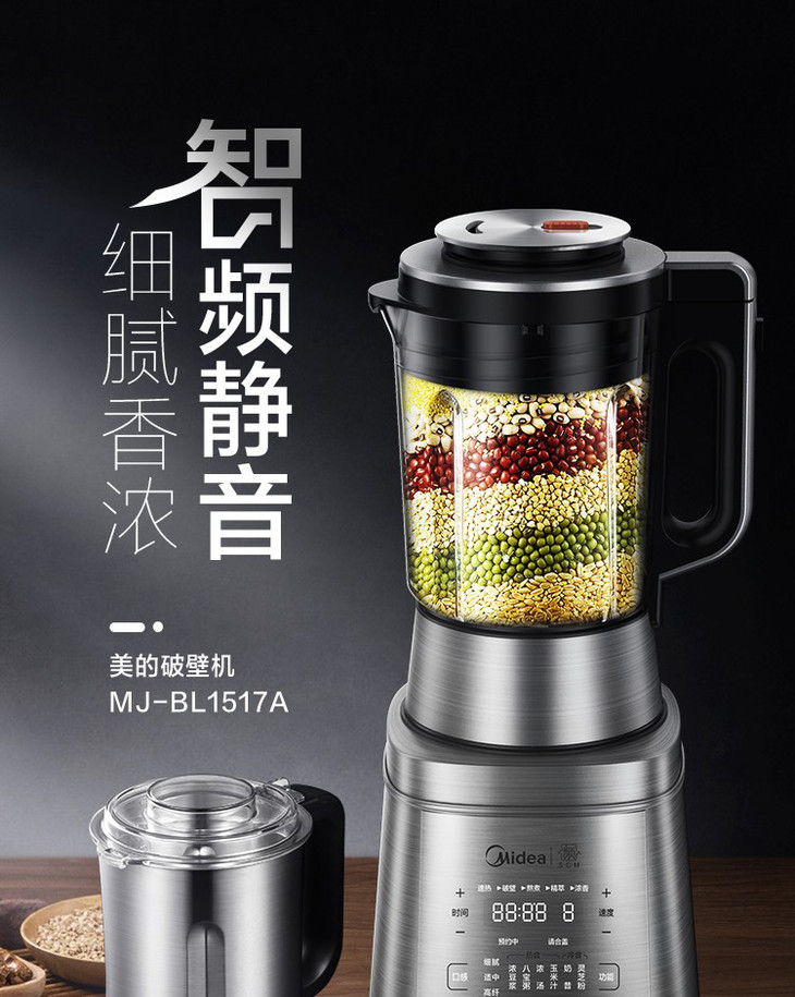 美的破壁机(508505) BL1517A料理机智能加热豆浆机家用果汁机搅拌机辅食机 智频静音 8叶刀头 快速加热