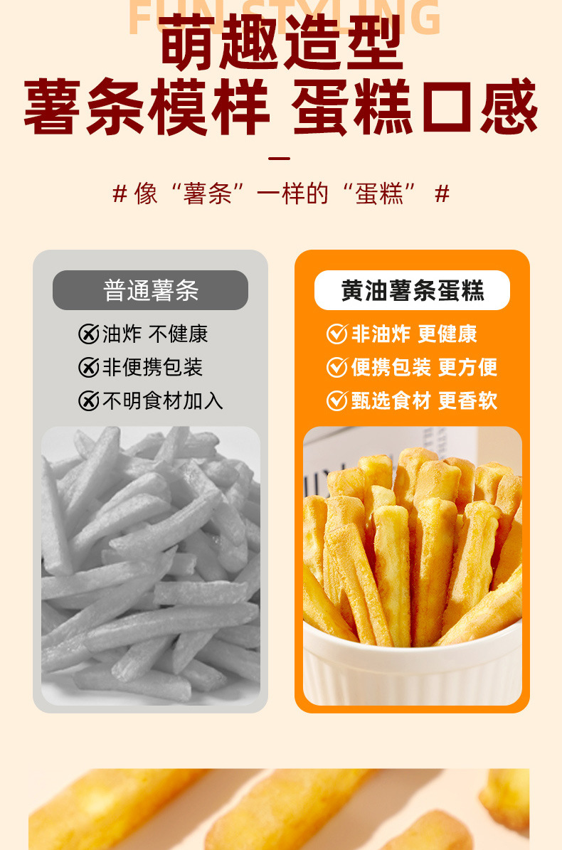 【萌趣造型❗黄油薯条蛋糕】每一根真材实料,健康非油炸,细腻香软口感,儿童早餐小吃面包休闲零食点心健康营业代餐QQ