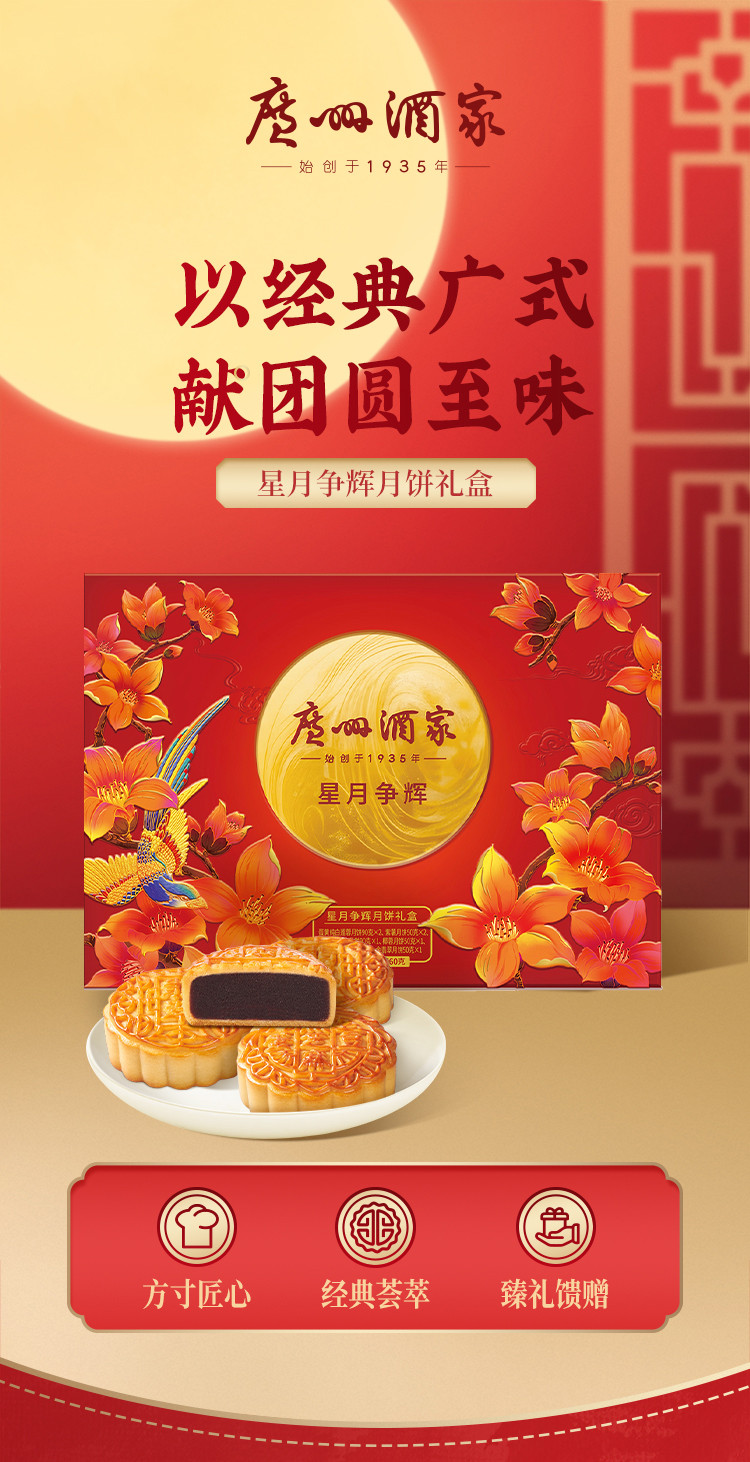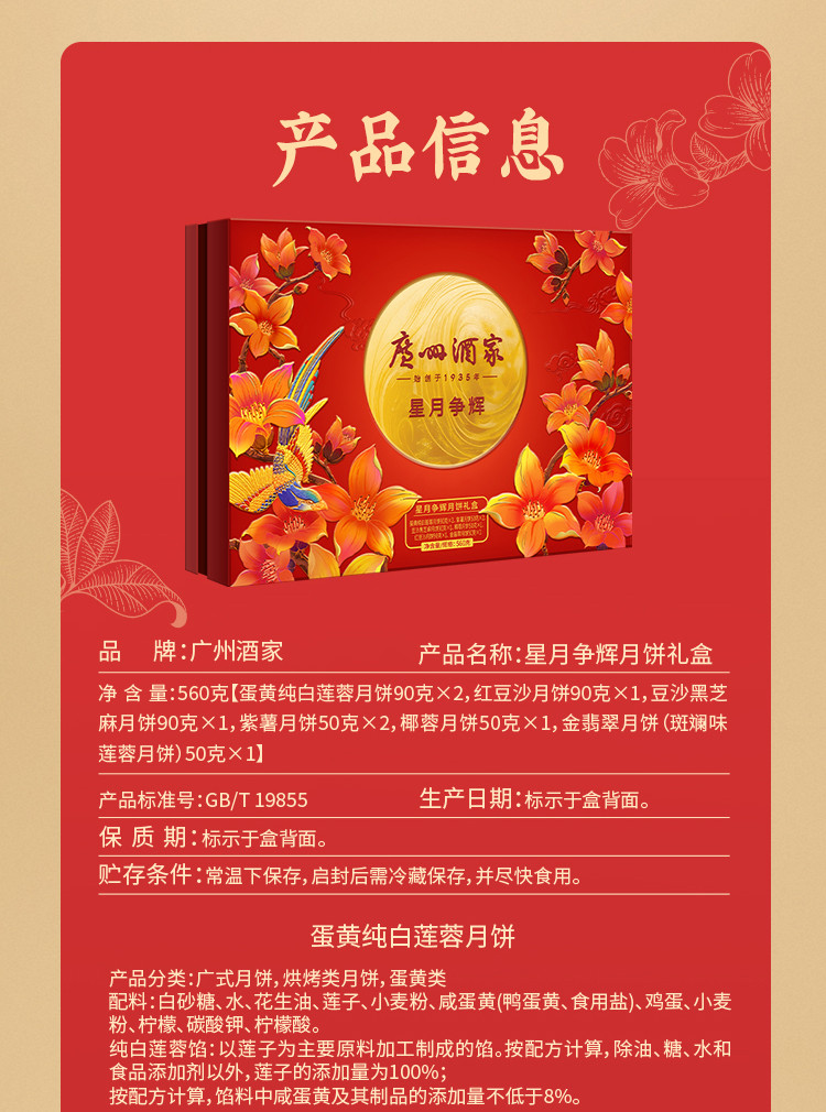 广州酒家星月争辉月饼礼盒560g【包邮直发】