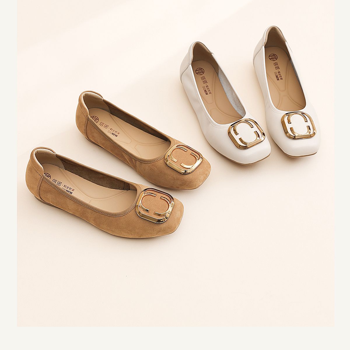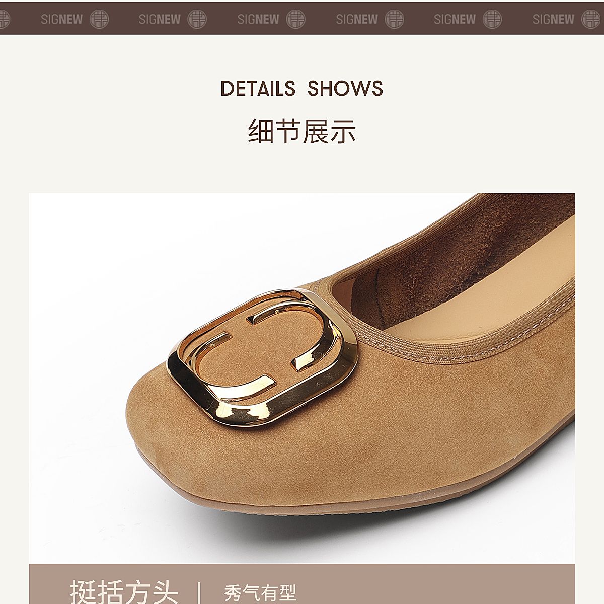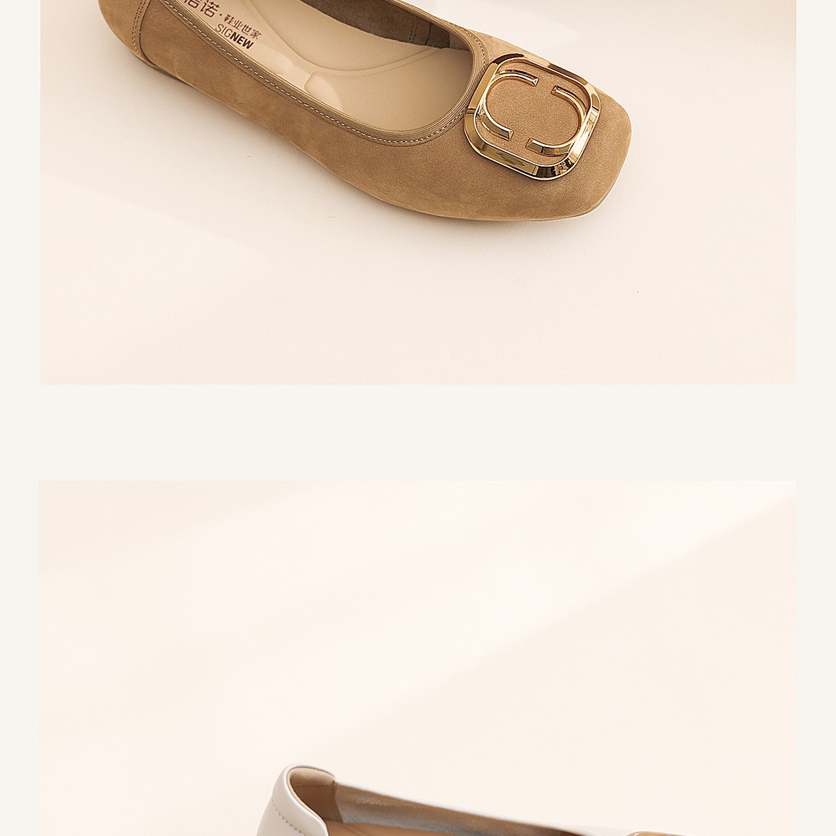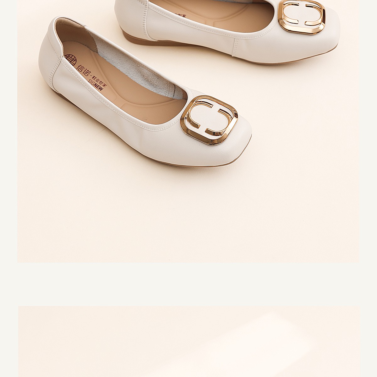 温柔风真皮方头浅口单鞋女平底金属扣气质百搭舒适奶奶鞋X6C009-15