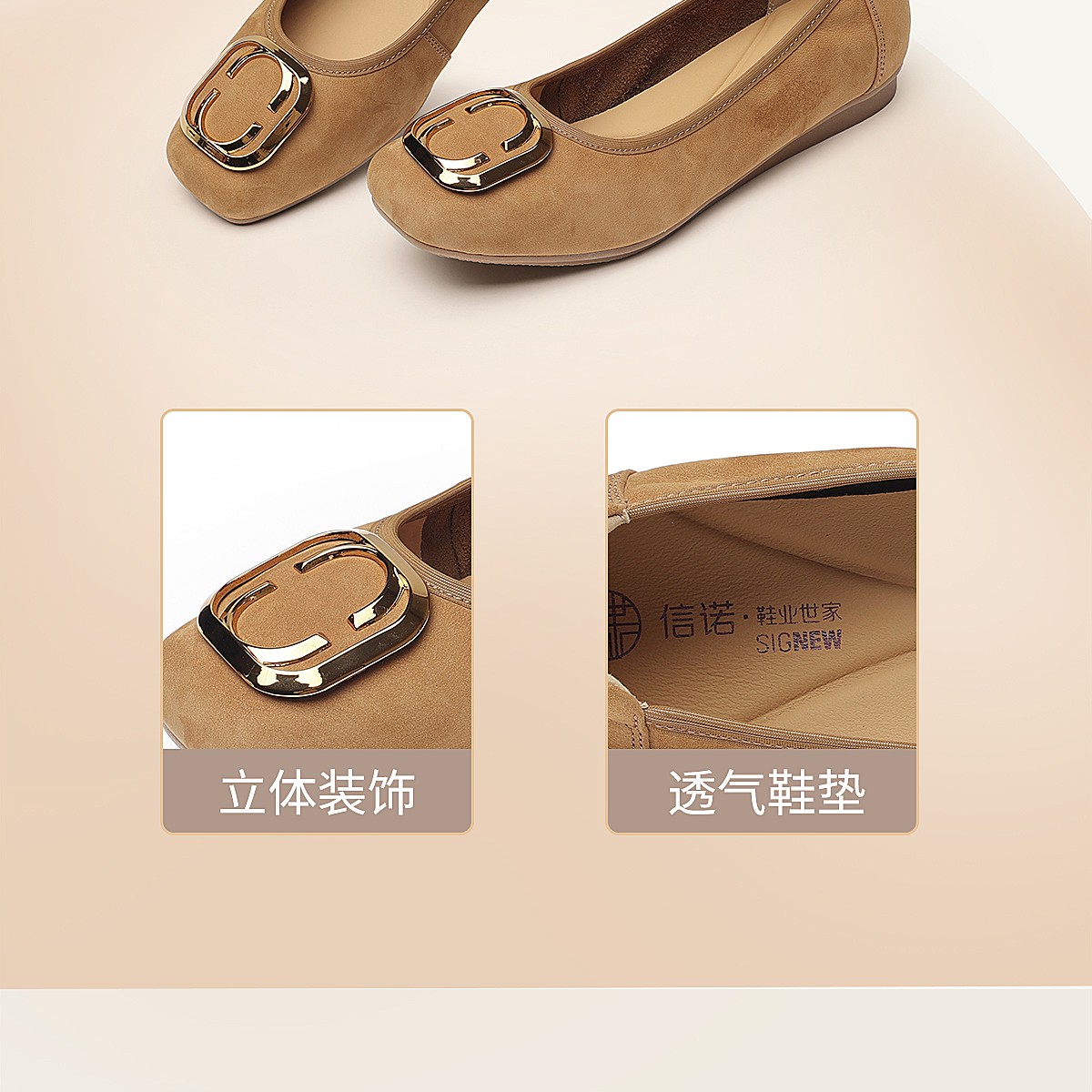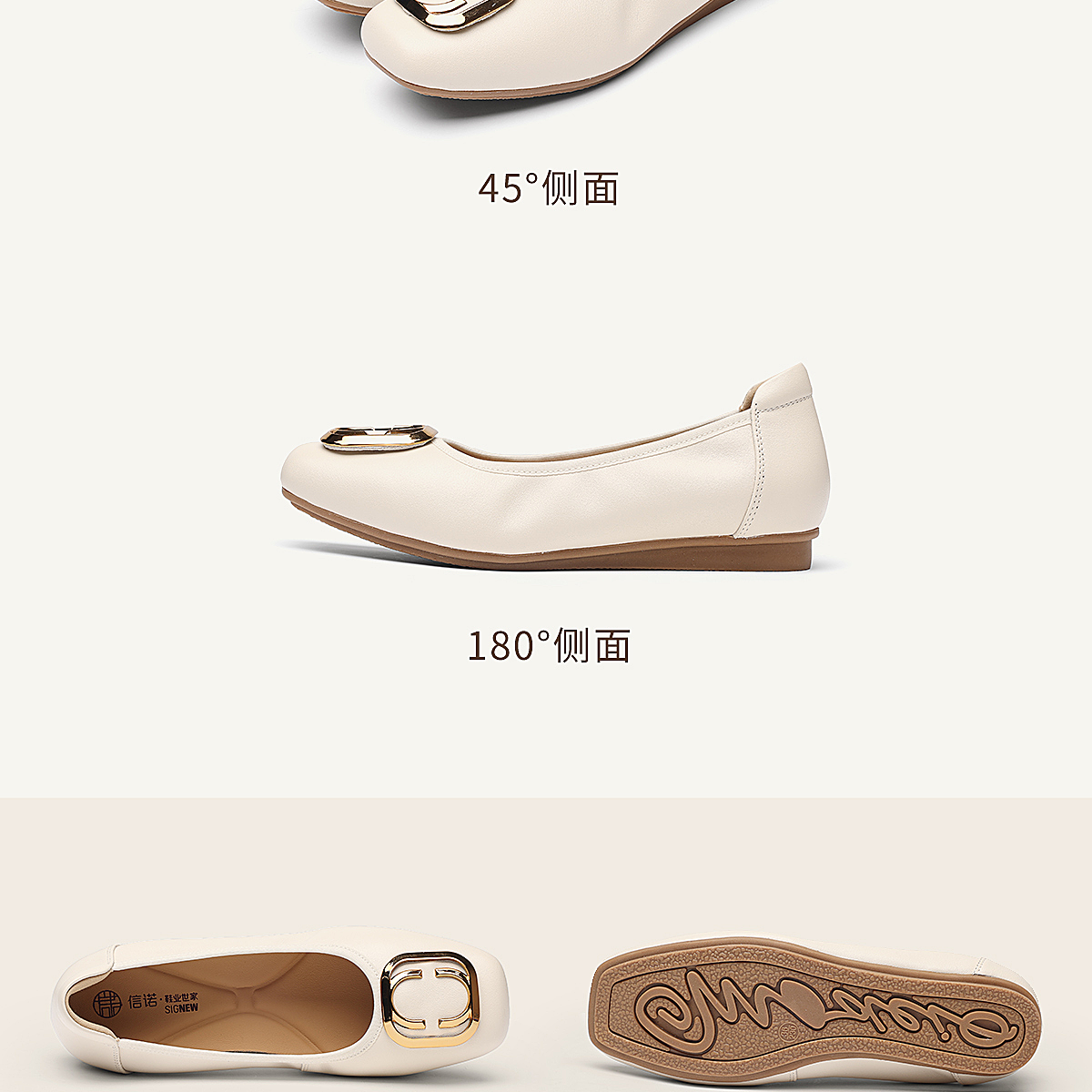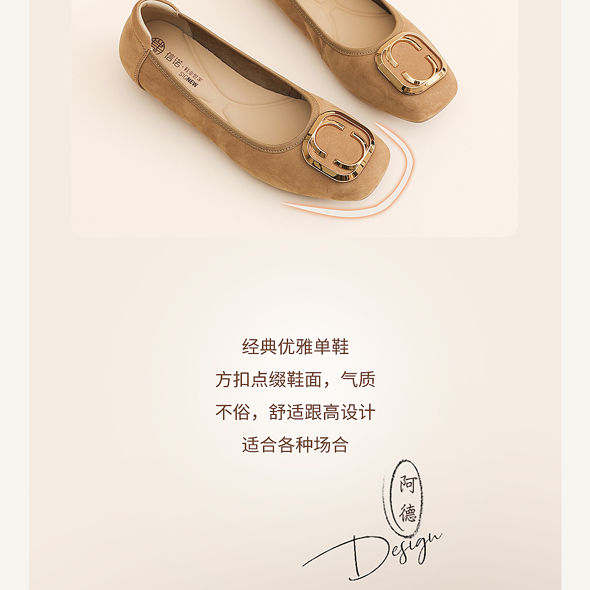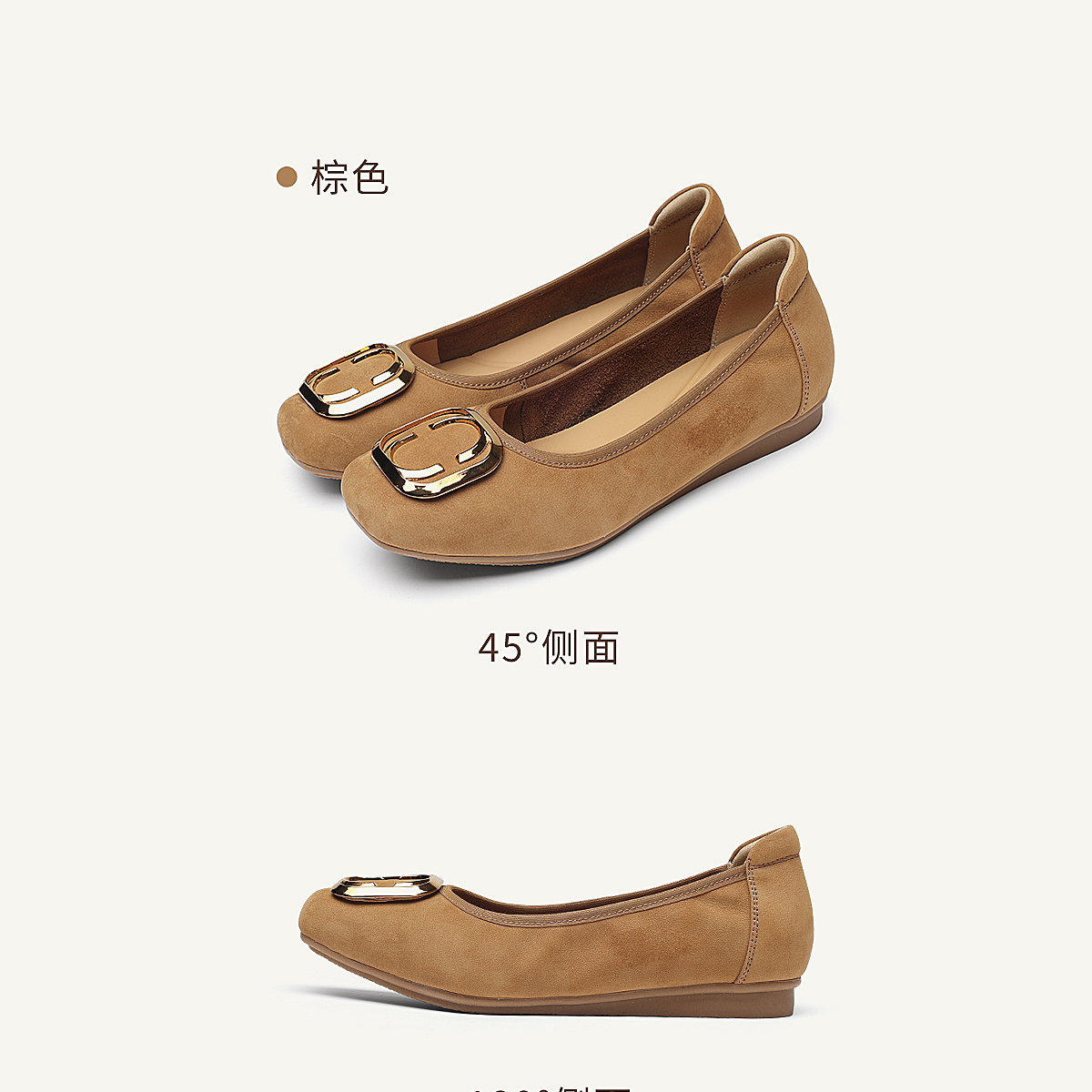 温柔风真皮方头浅口单鞋女平底金属扣气质百搭舒适奶奶鞋X6C009-15