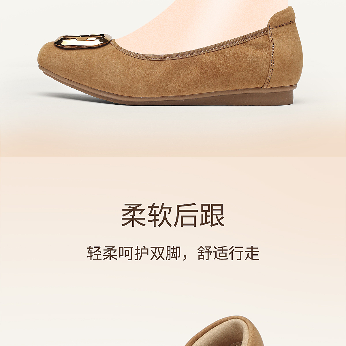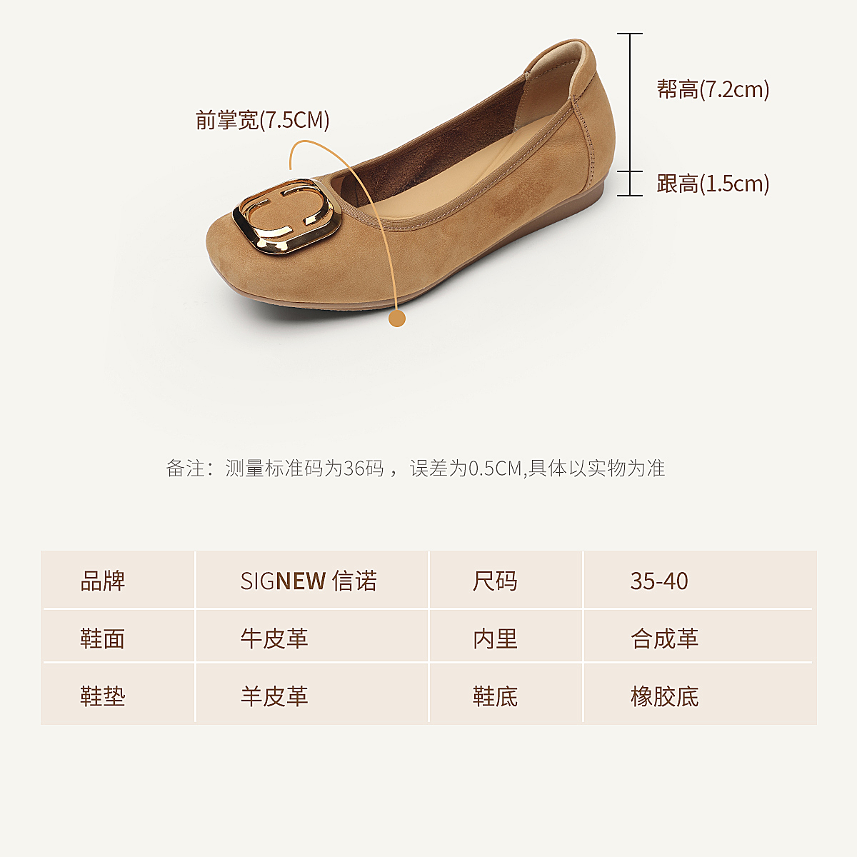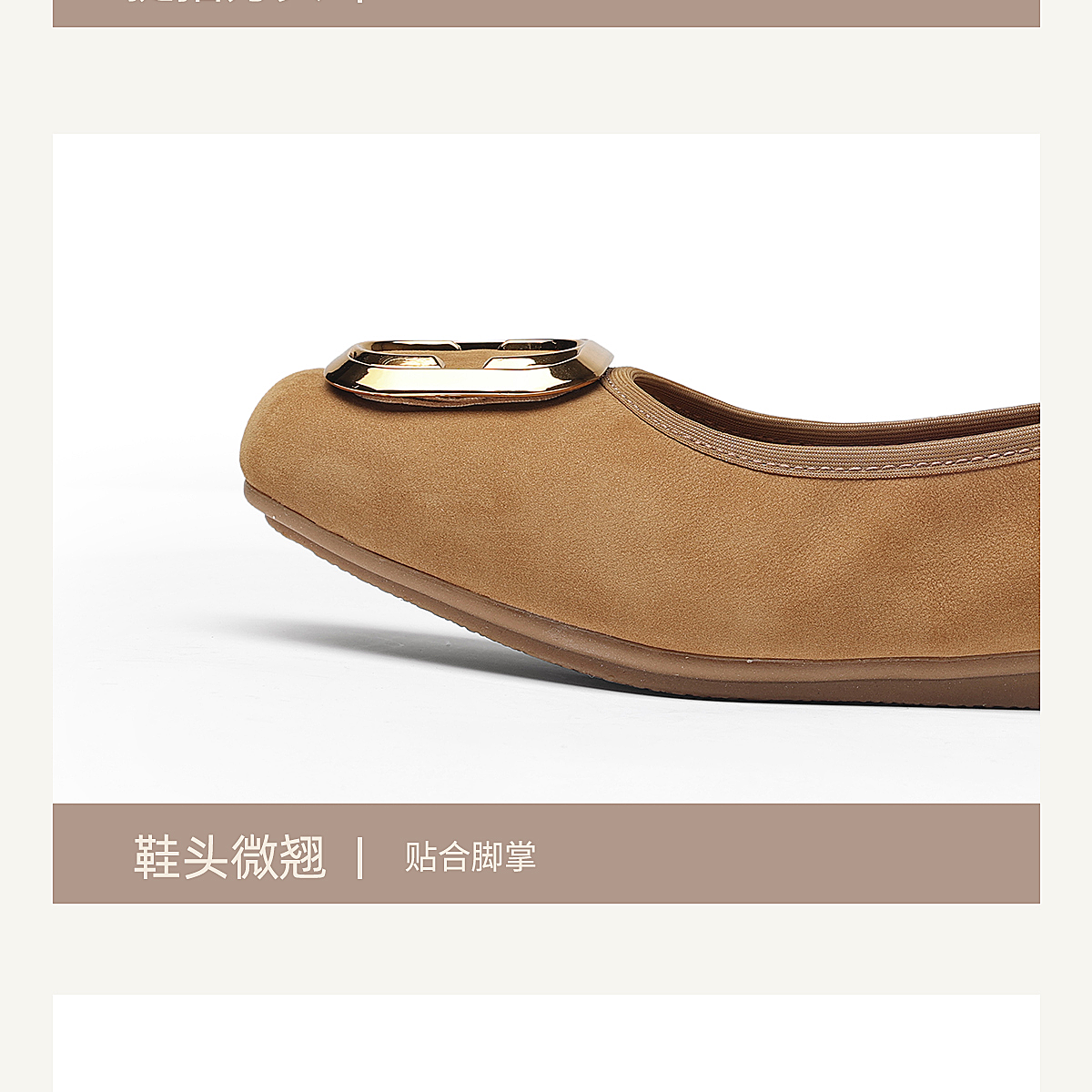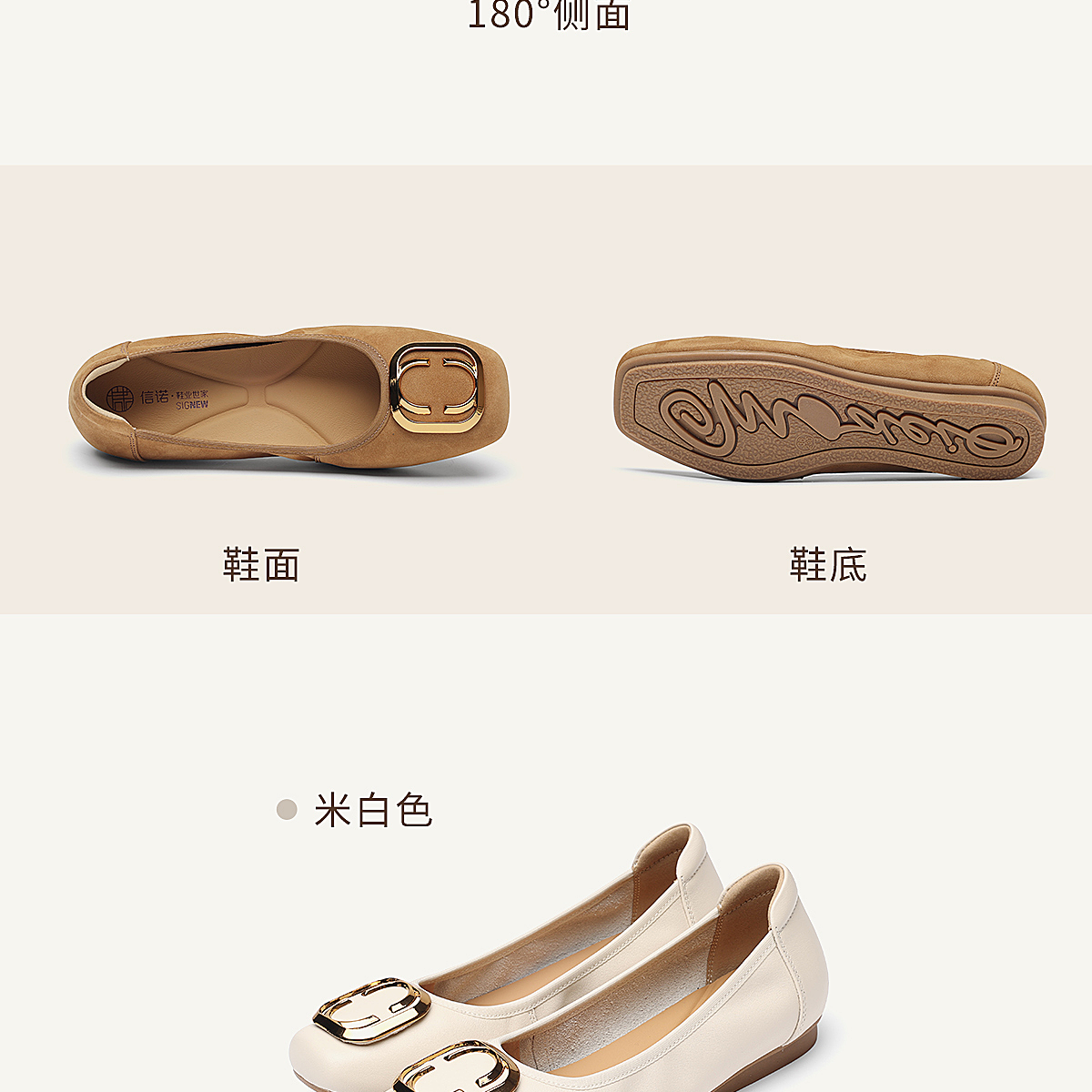 温柔风真皮方头浅口单鞋女平底金属扣气质百搭舒适奶奶鞋X6C009-15