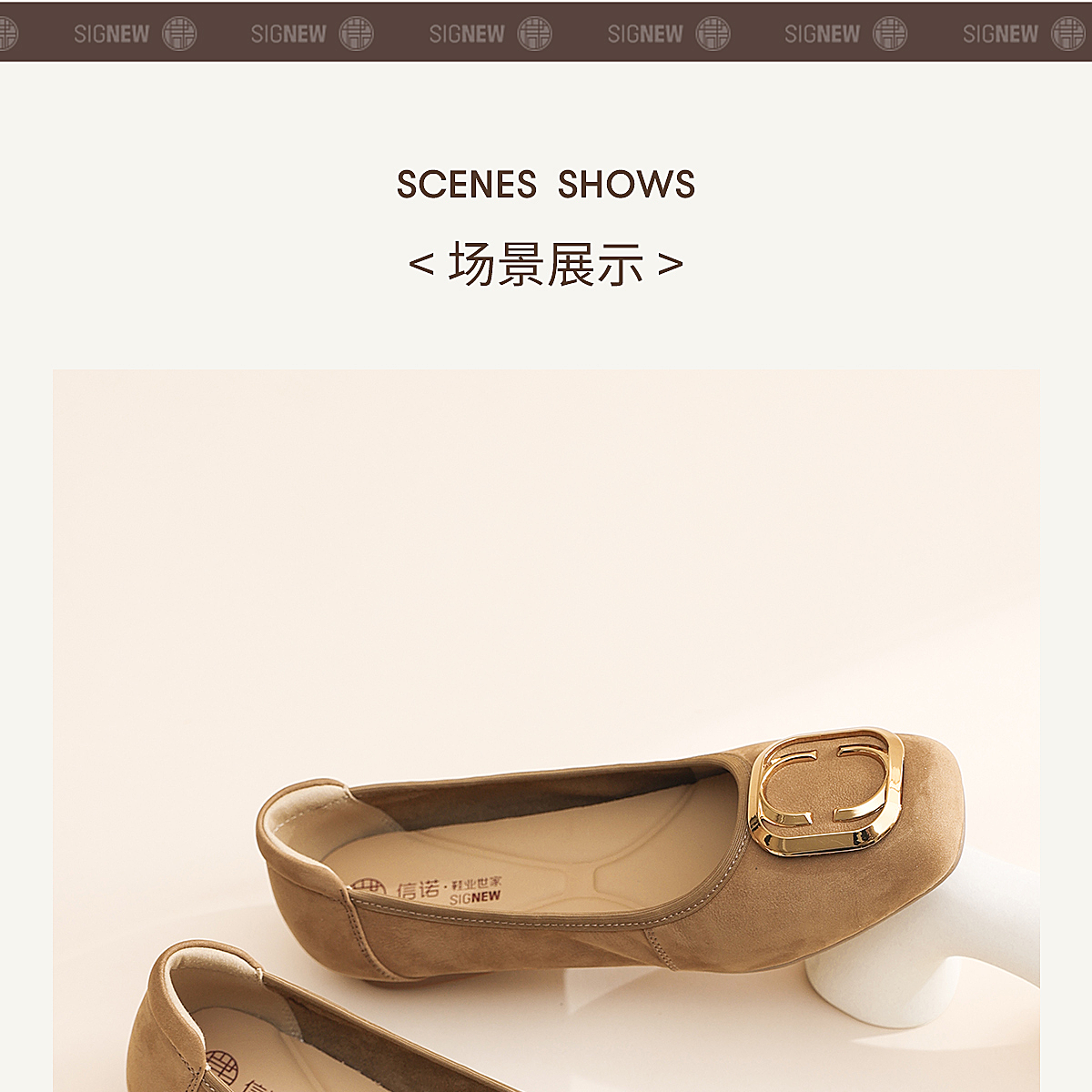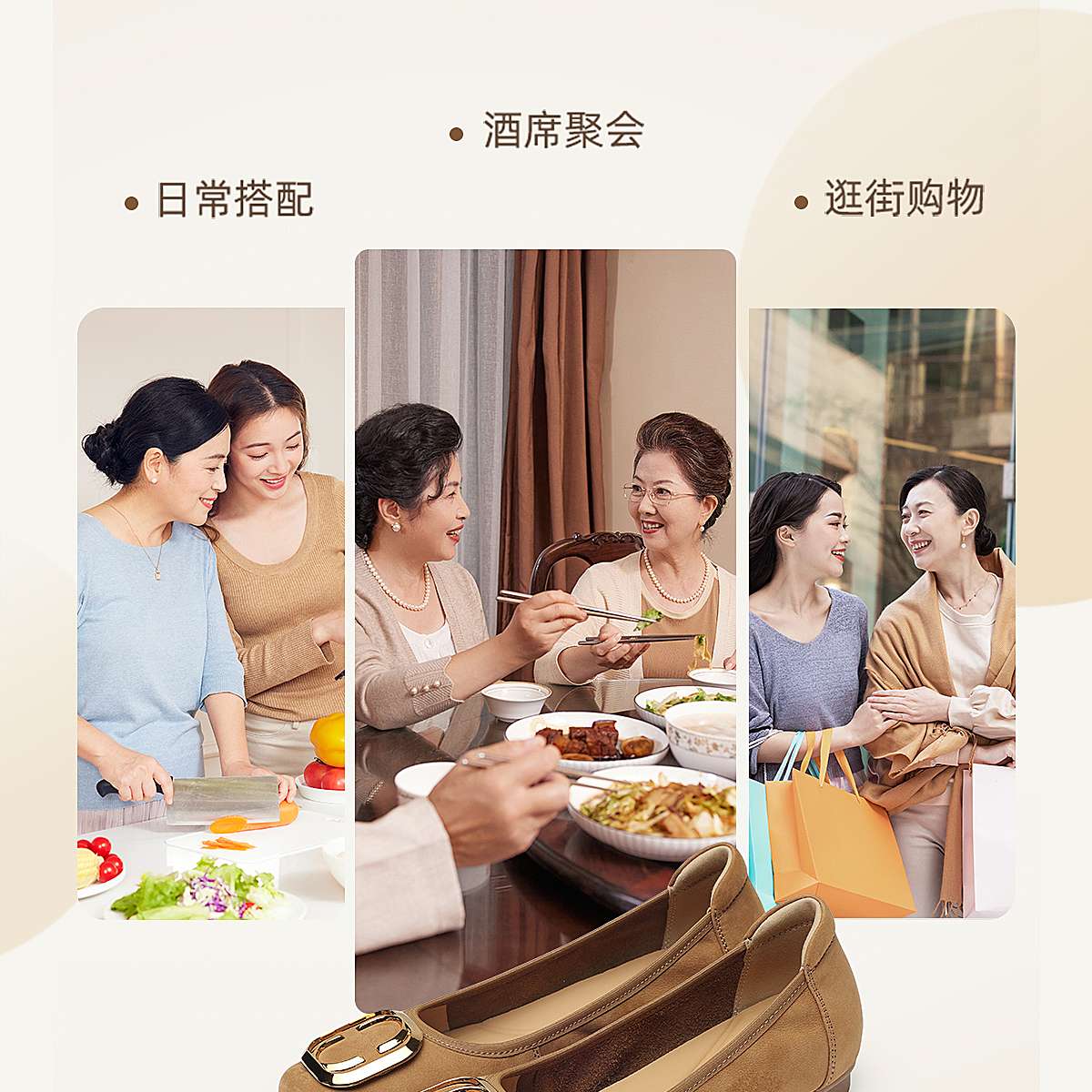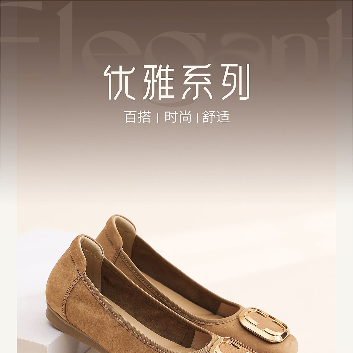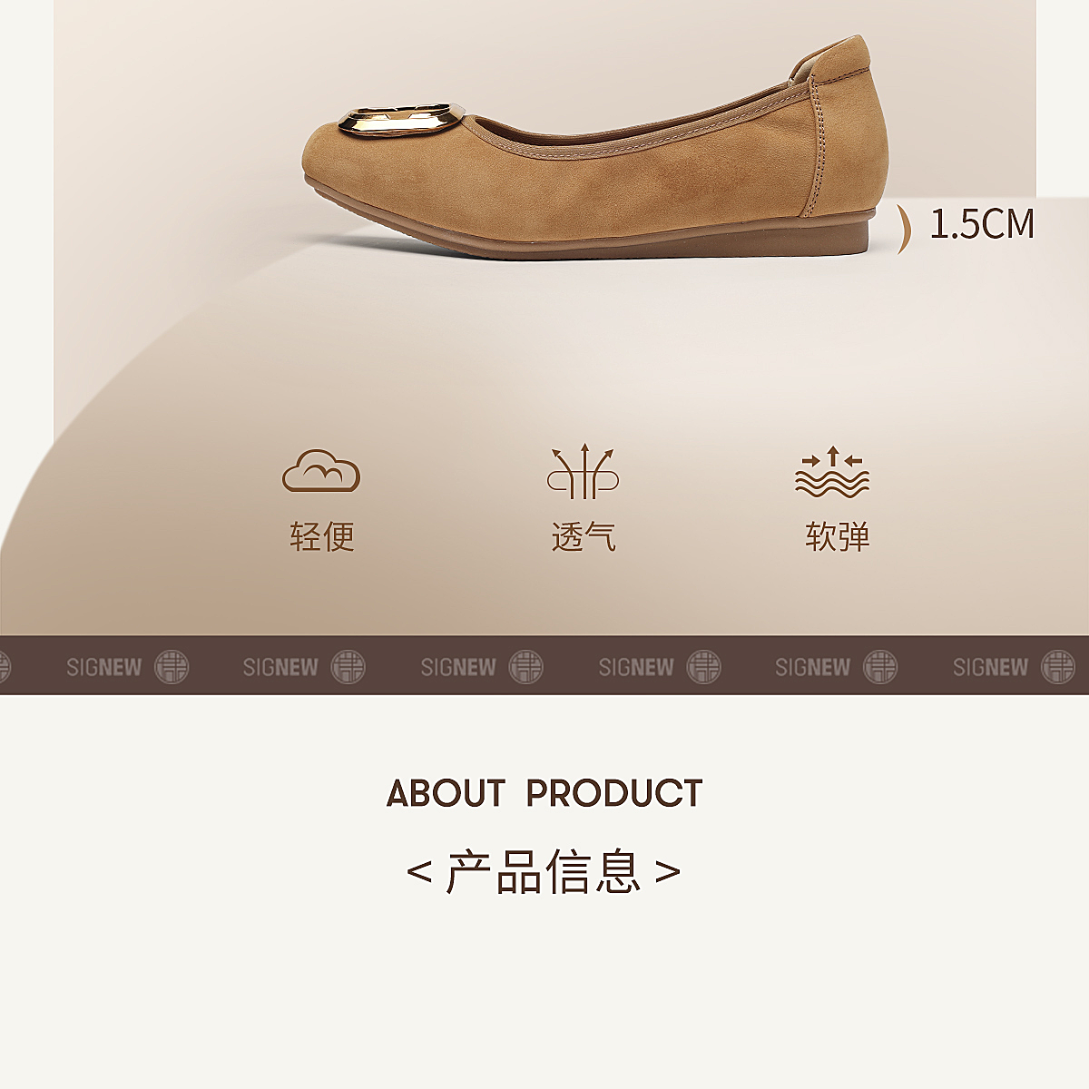 温柔风真皮方头浅口单鞋女平底金属扣气质百搭舒适奶奶鞋X6C009-15
