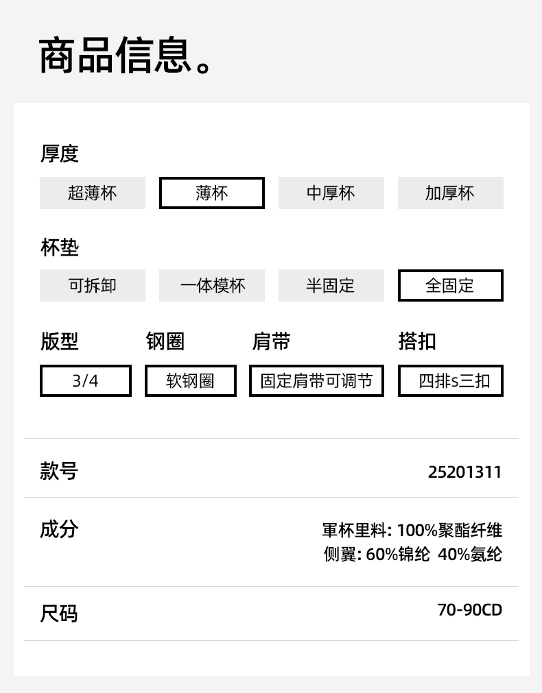 【商场同款】熳洁儿 大胸显小无痕内衣温控软支撑高级感亲密光杯系列25201311