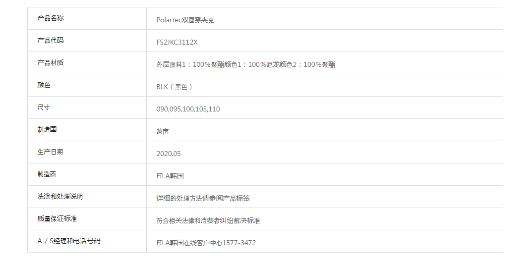 韩国F家斐乐韩国双面夹克FS2JKC3112X_BLKJPY带授权招加盟代理