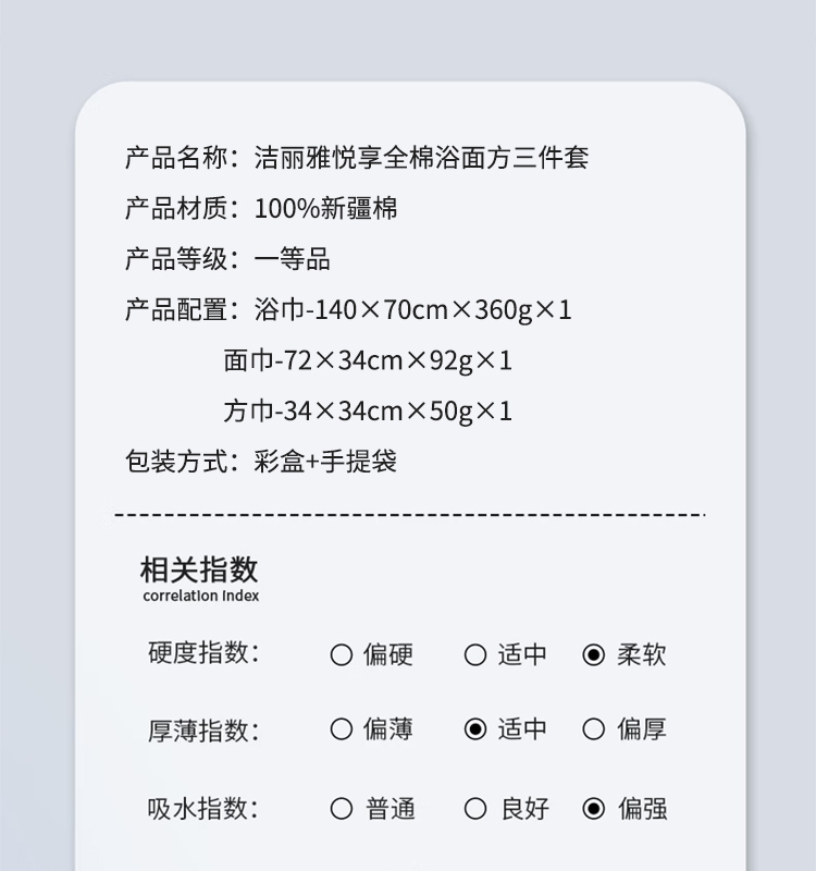 洁丽雅悦享全棉浴面方三件套