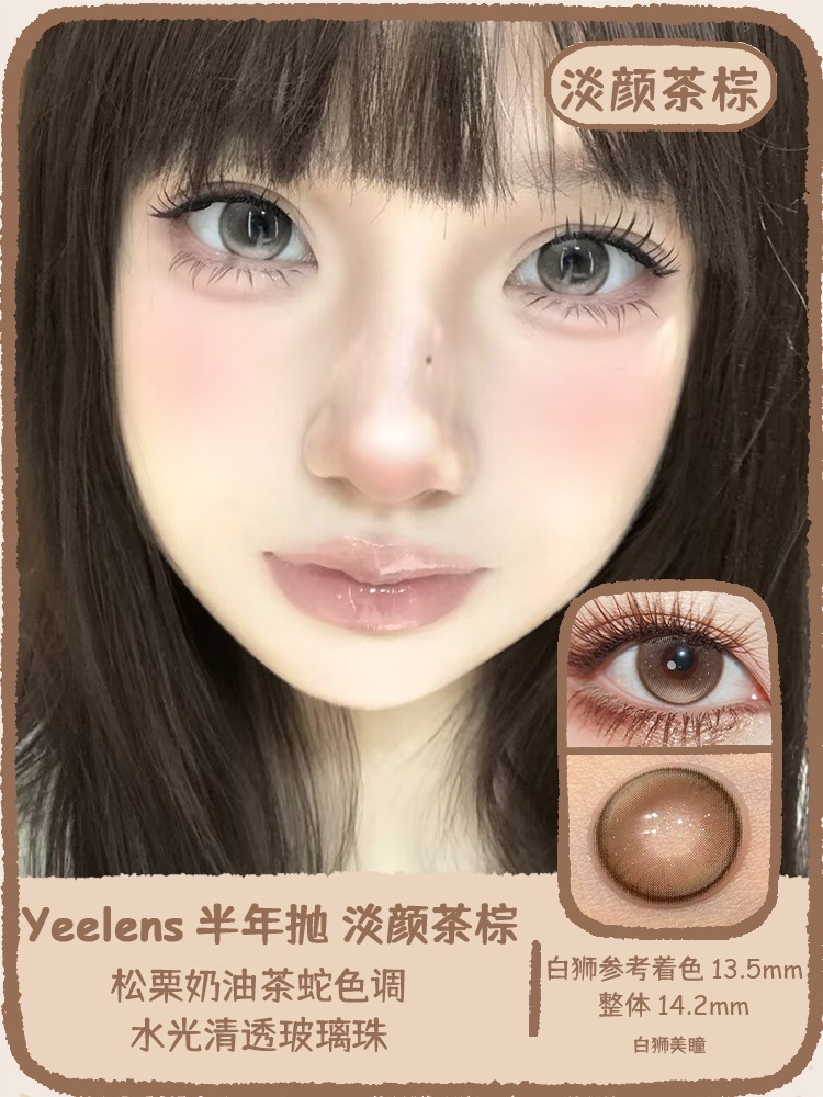 Yeelens旗下 半年抛·S19困困小狗&S20淡颜茶棕&S21恋综妹宝 14.2mm白狮参考着色中大直径 2片