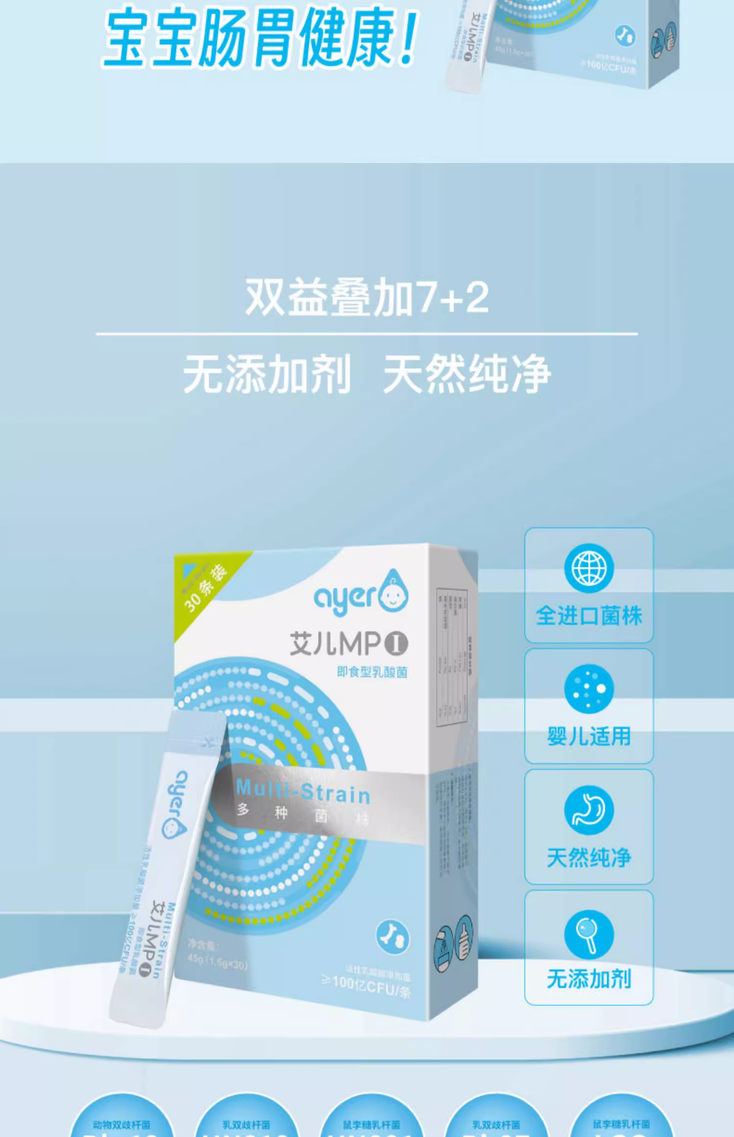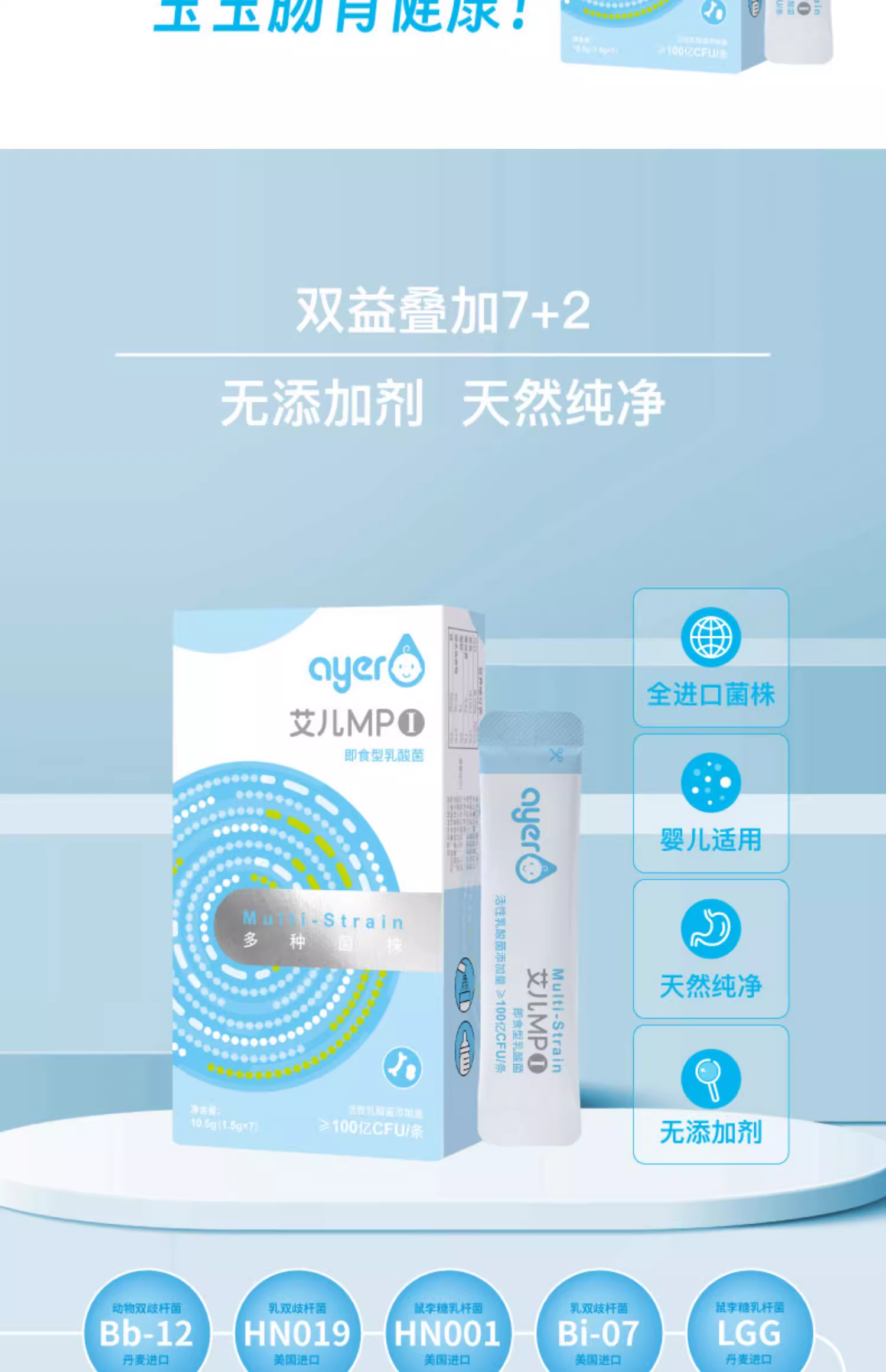 艾儿益生菌MP1 7种益生菌 2种益生元双益叠加 婴儿即食型乳酸菌(7条装买二送一)