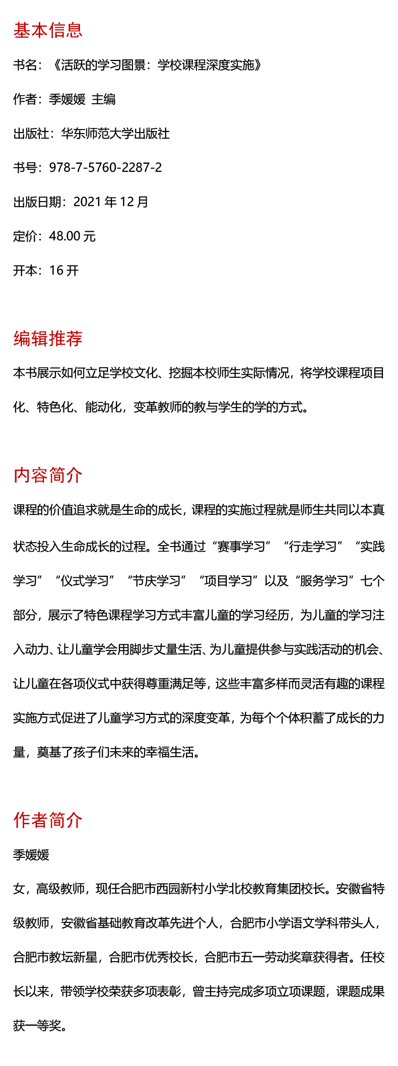 活跃的学习图景:学校课程深度实施 品质课程聚焦丛书 学习方式变革 课程设置与实施创新 小学案例 正版 华东师范大学出版社