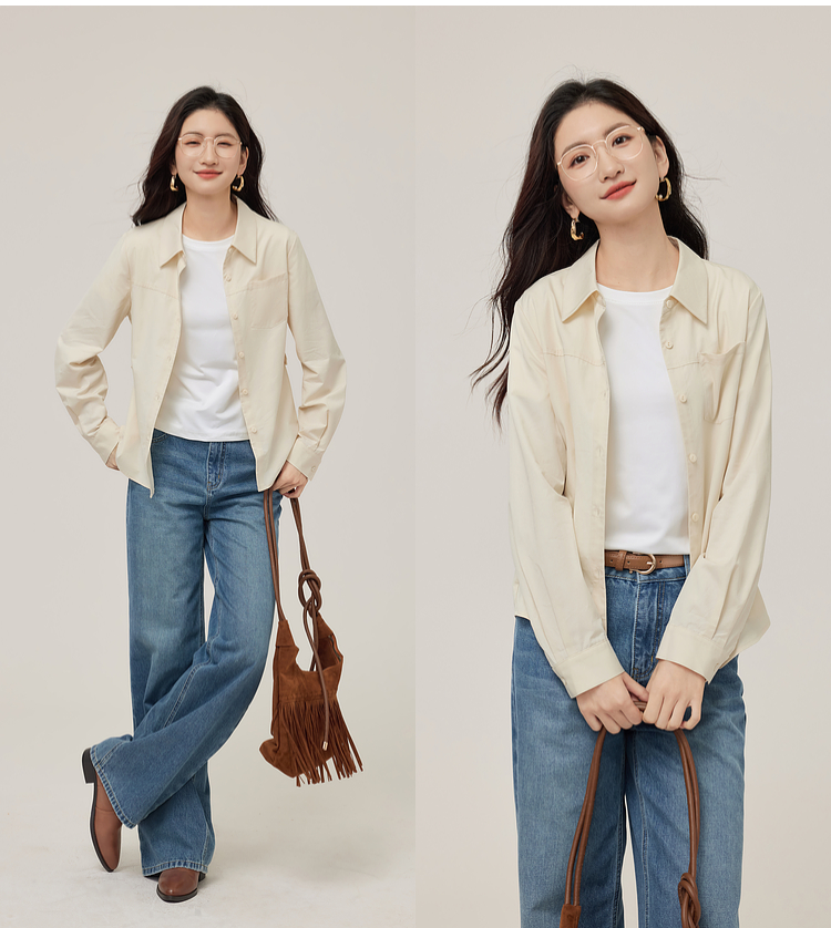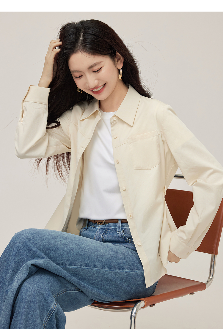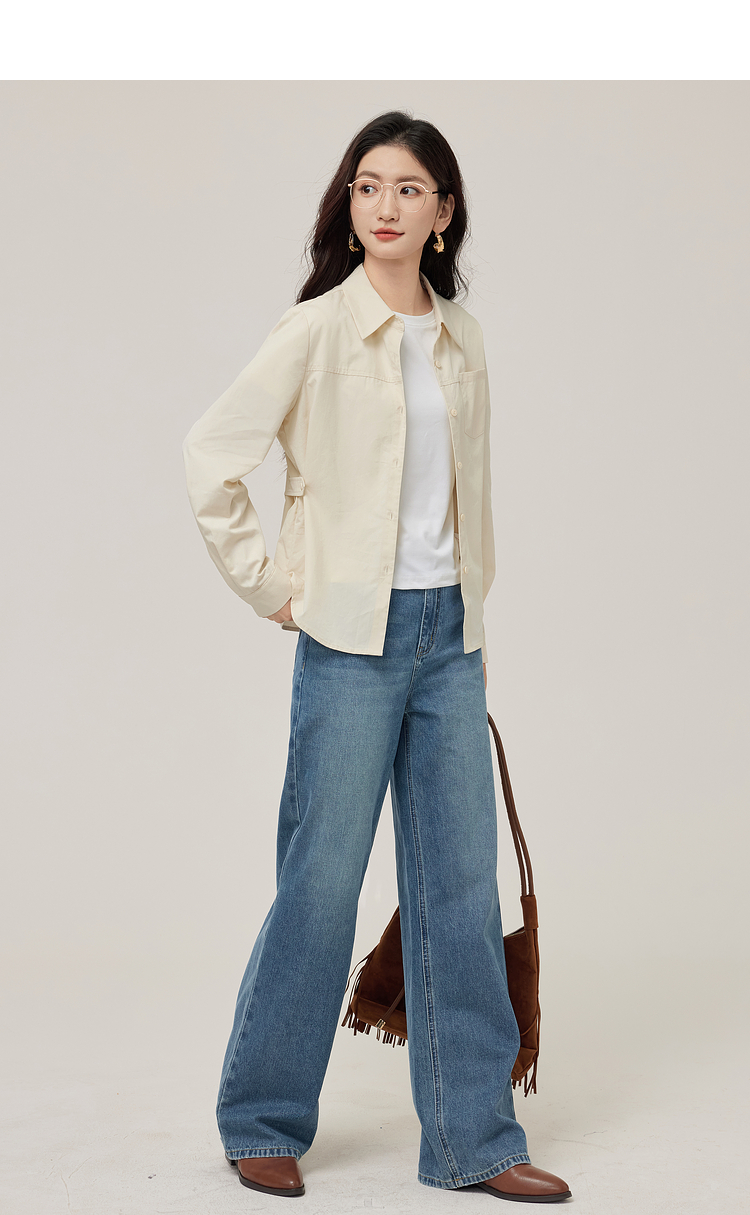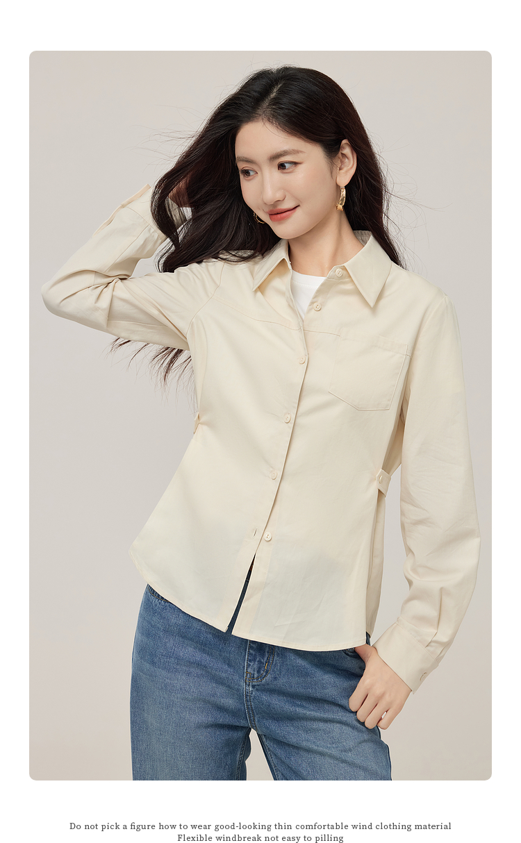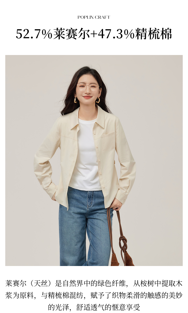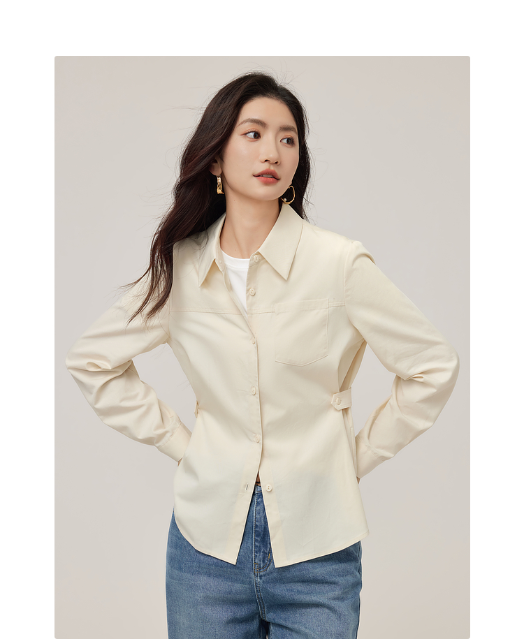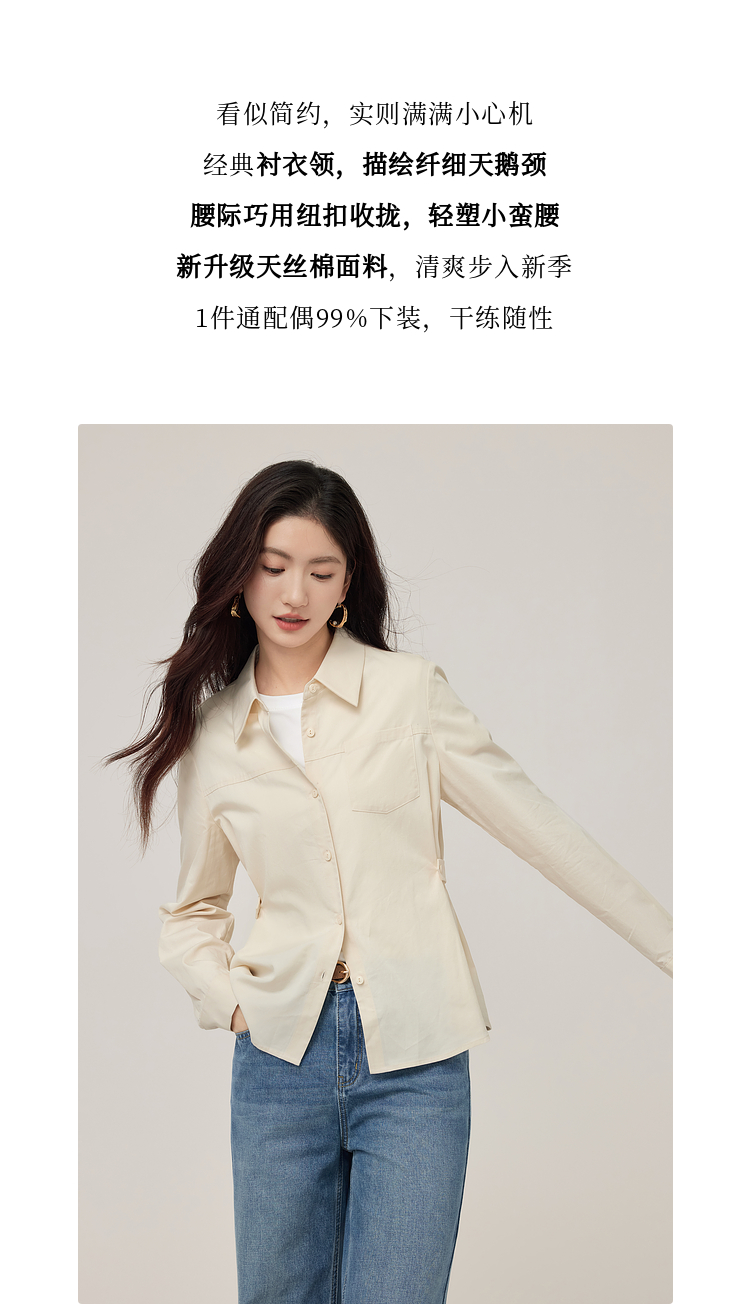 【08/27新品】熙世界天丝棉衬衫女秋季2025新款高级感通勤法式长袖衬衣收腰上衣