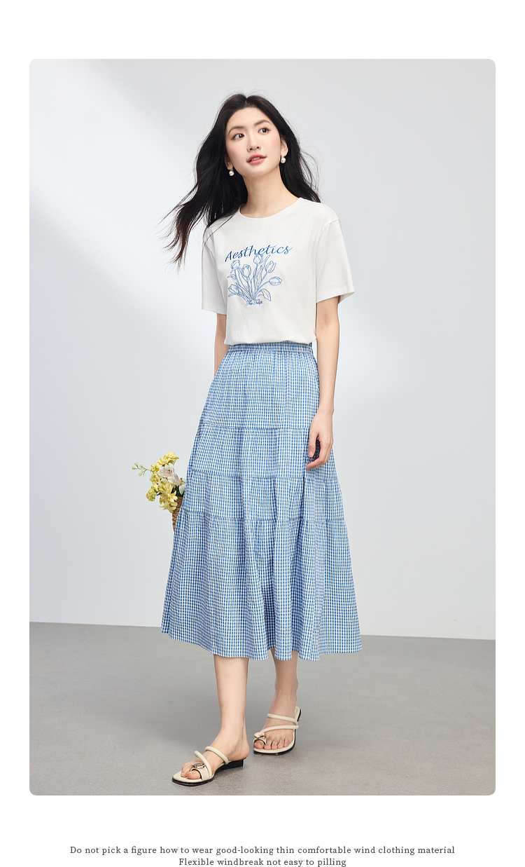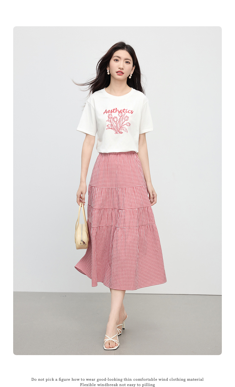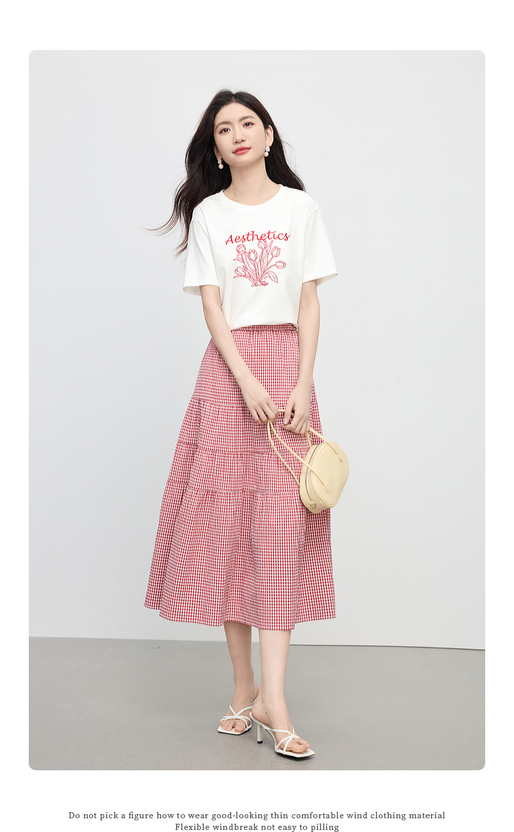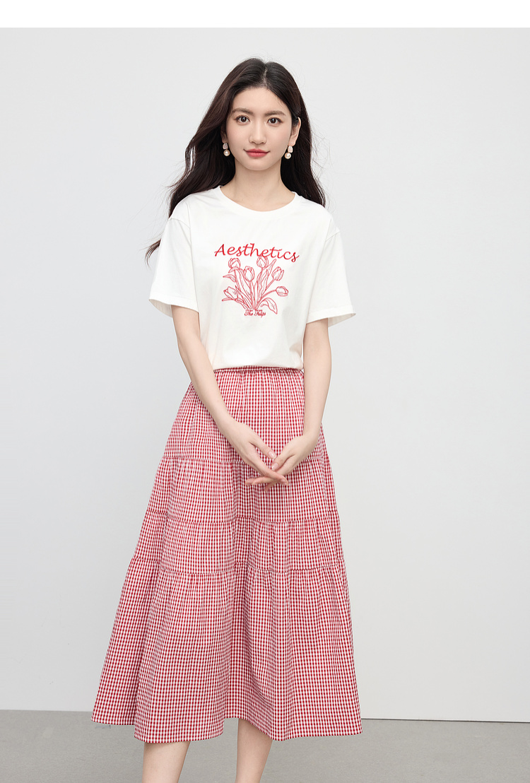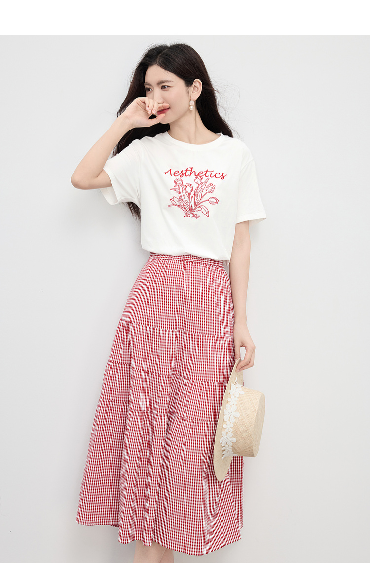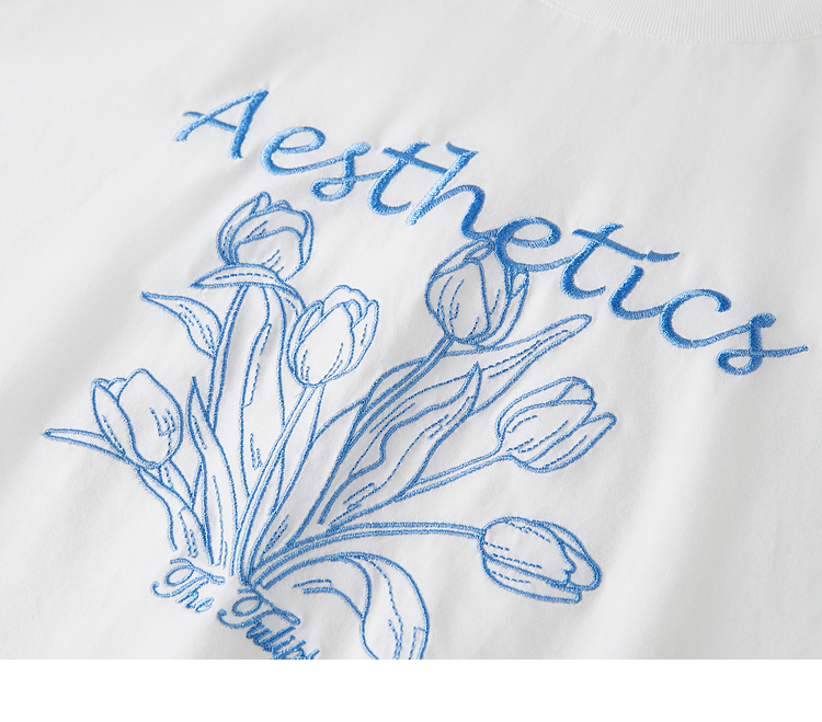 【夏季新品】熙世界艺术风郁金香印花T恤短袖女2025夏季新款正肩圆领白色上衣