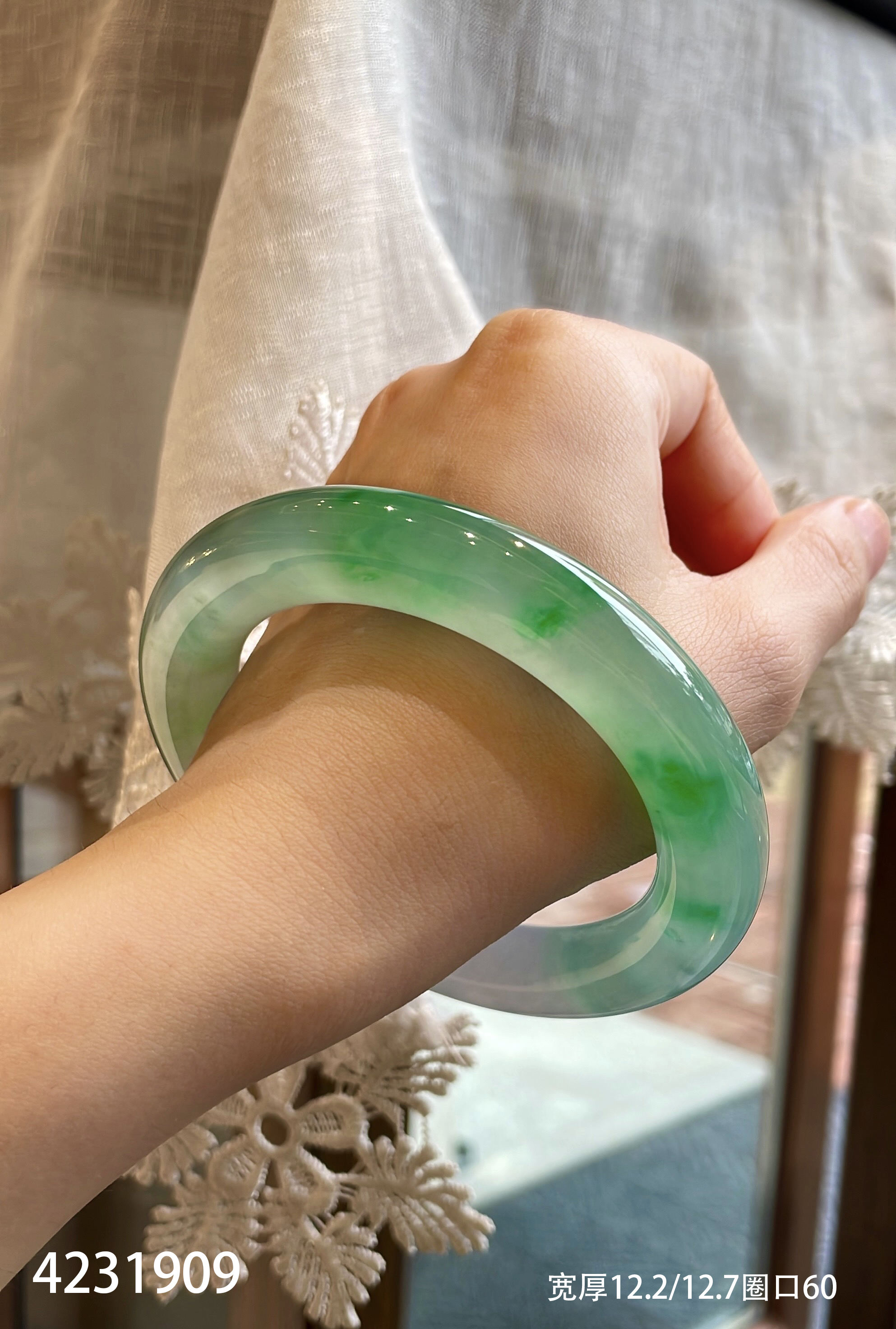 高冰飘翠手镯【4231909】圈口60.0~具体价格微信咨询