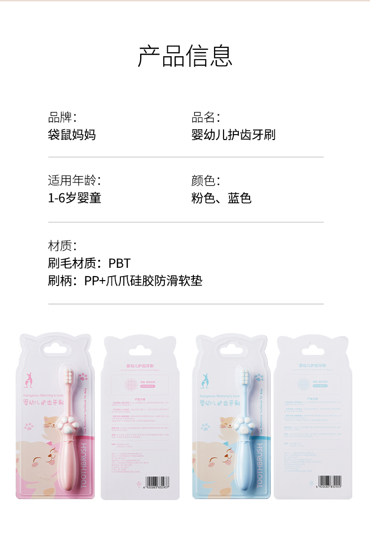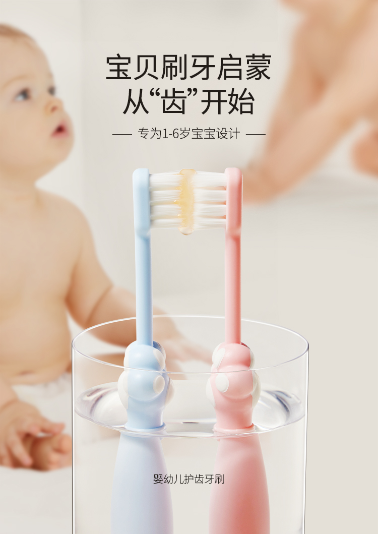 【婴幼儿牙刷】1-6岁宝宝可用 羽柔刷毛 呵护牙龈 婴幼儿护齿牙刷(蓝色/粉色)