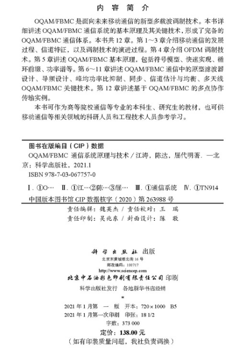 (仓发) OQAM/FBMC通信系统原理与技术/科学出版社/江涛,陈达,屈代明/9787030677570