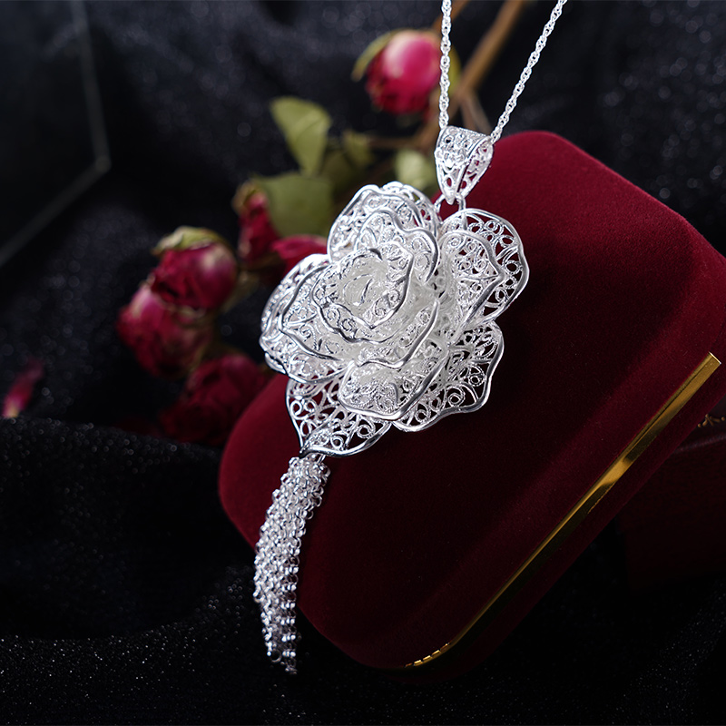 子佩集S990银玫瑰吊坠【MG1】纯银花丝(不含链)2406