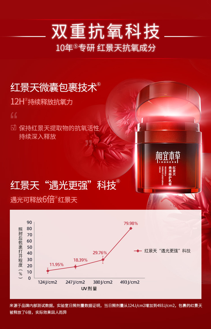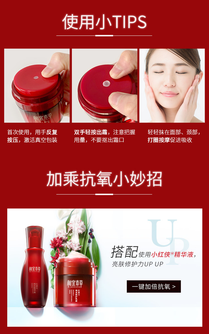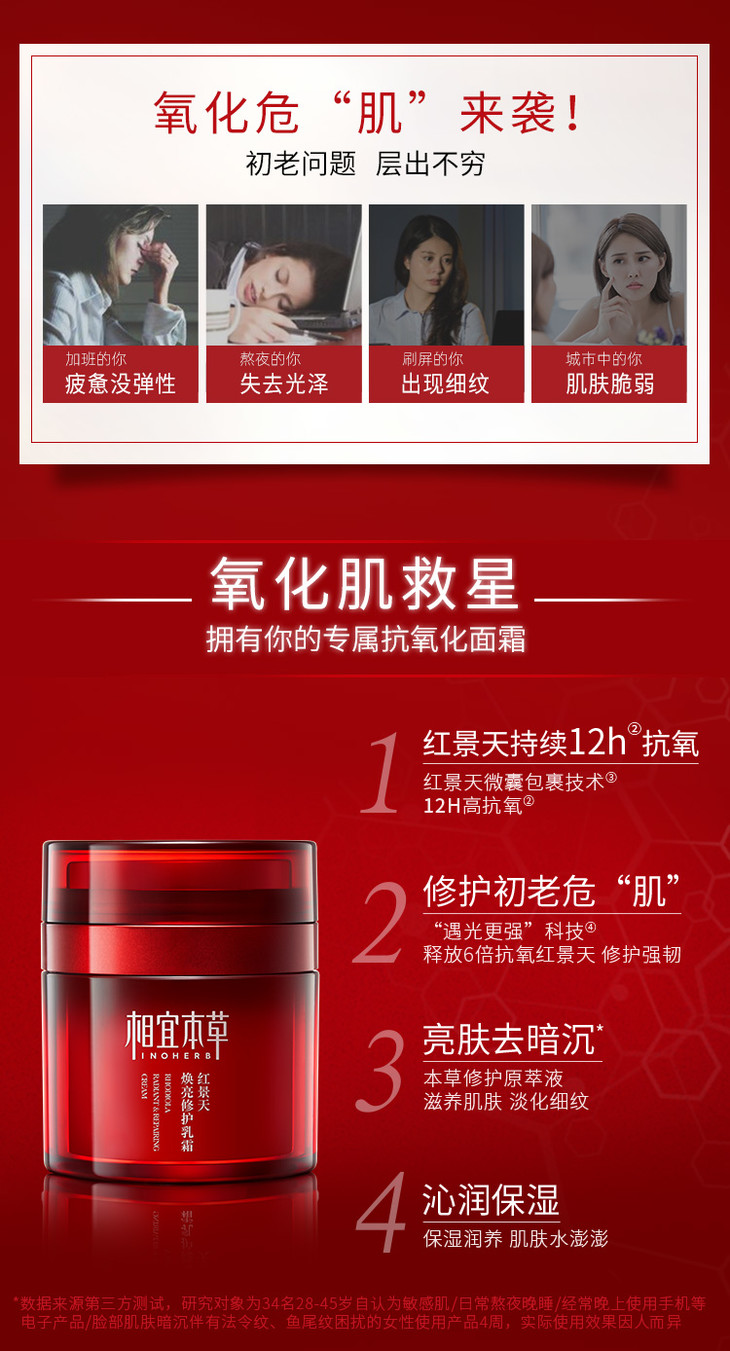 相宜本草红景天焕亮修护乳霜抗氧保湿面霜50g(新老包装随机发货)