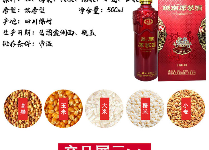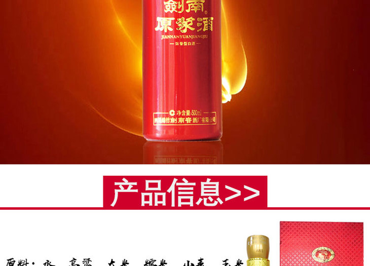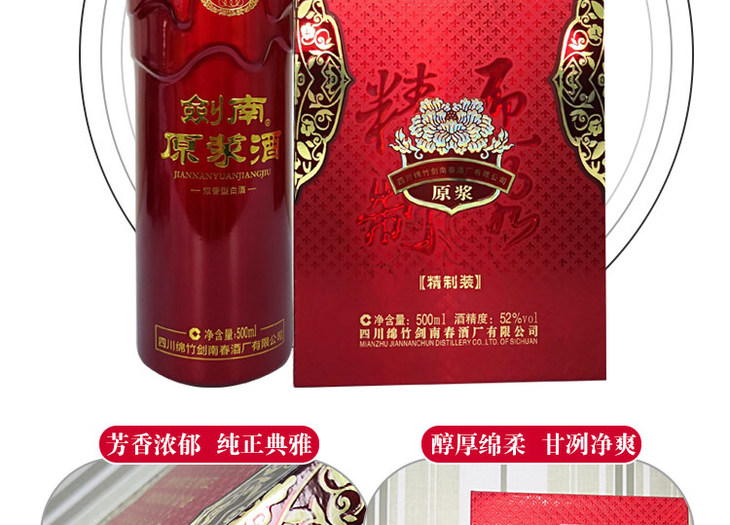 四川绵竹剑南原浆(精制装)浓香型白酒500ml