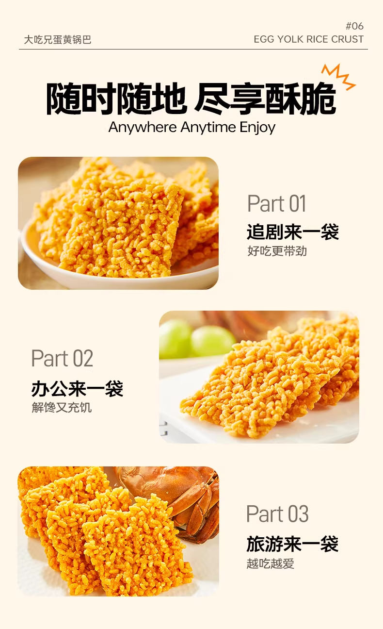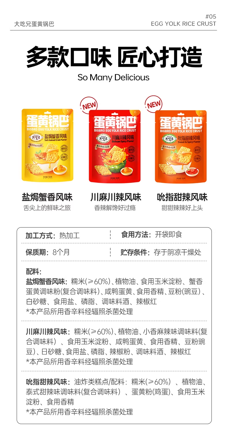粮悦大吃兄蛋黄锅巴川麻川辣风味138g/袋*6