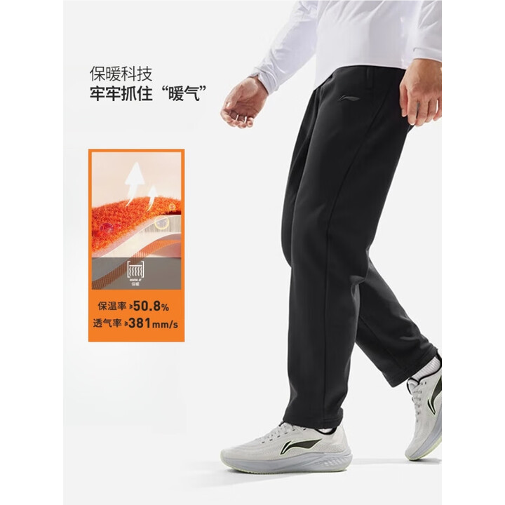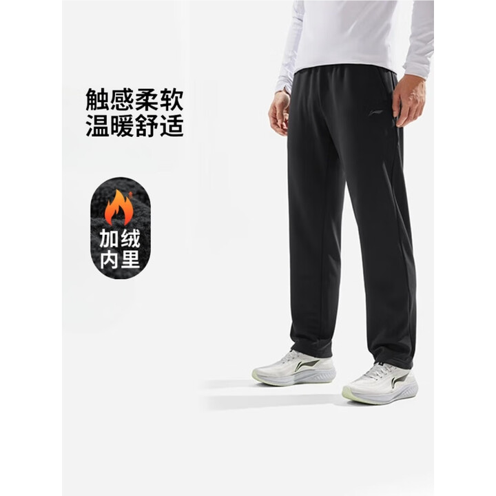 李宁男子冬季加绒保暖直筒运动裤AKLU551-1
