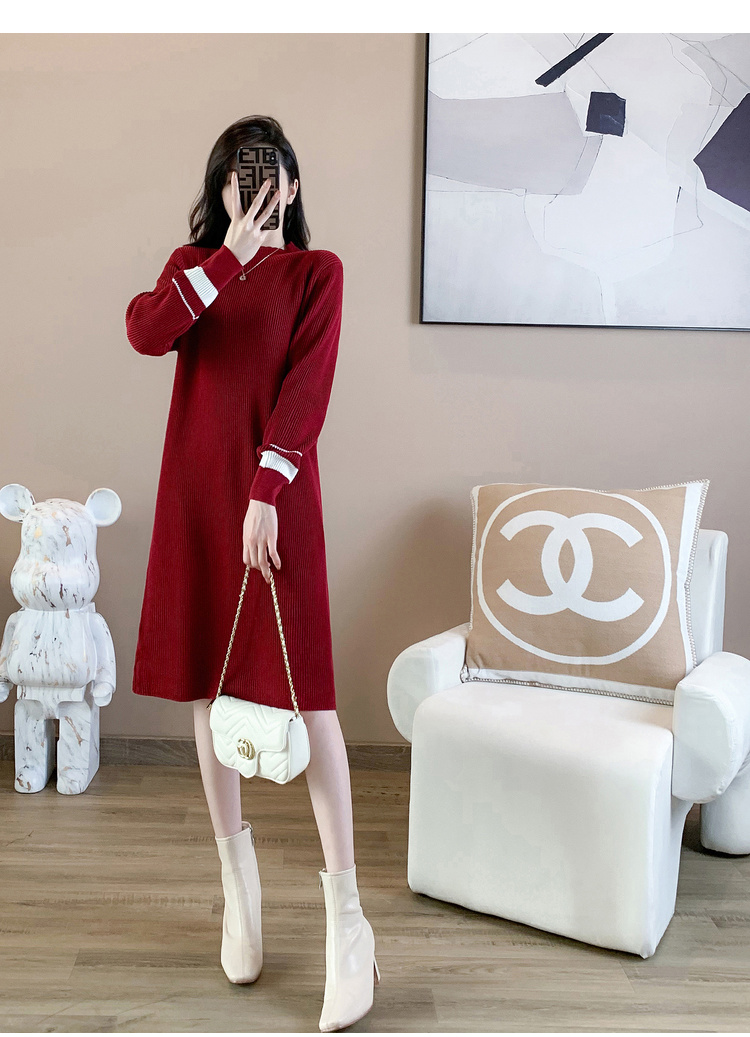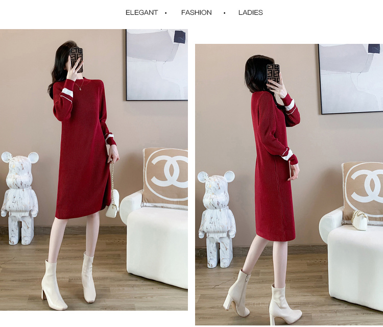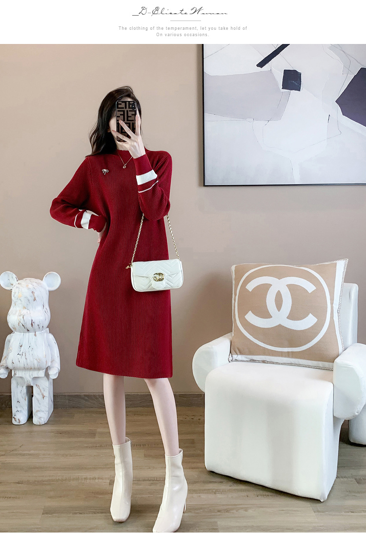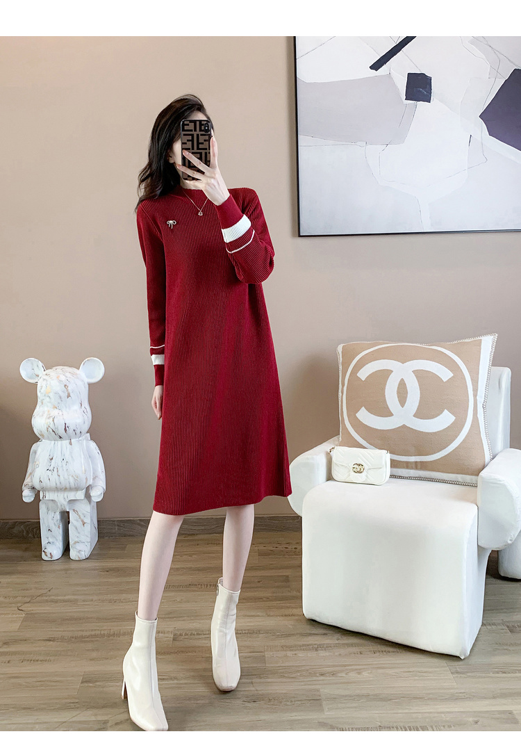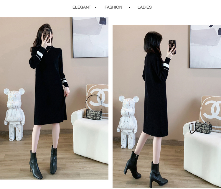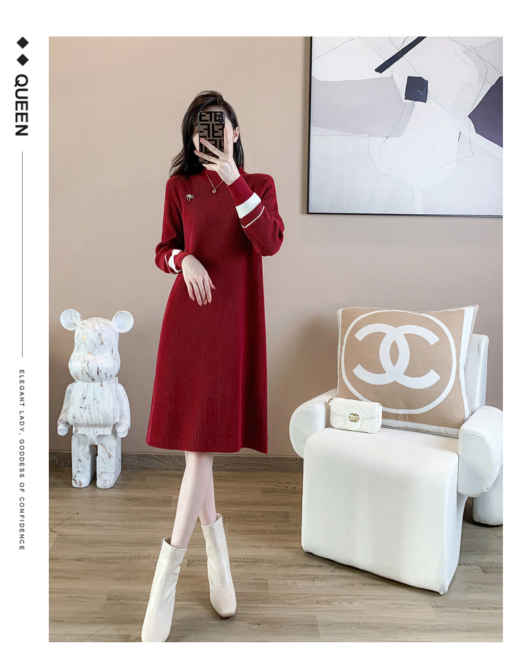 奢姿24年秋装新款大码女装气质小立领针织连衣裙胖妹妹时尚裙子9823852288