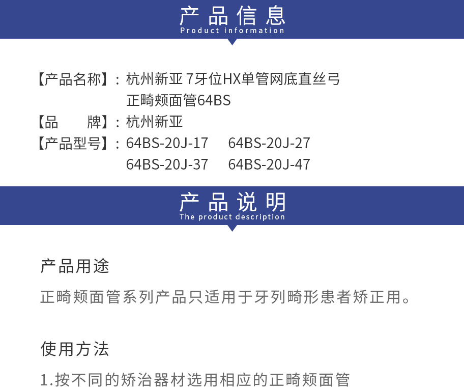 正畸颊面管(新亚 7牙位 PIM单管标准网底直丝弓颊面管 20粒装) 商品缩略图0