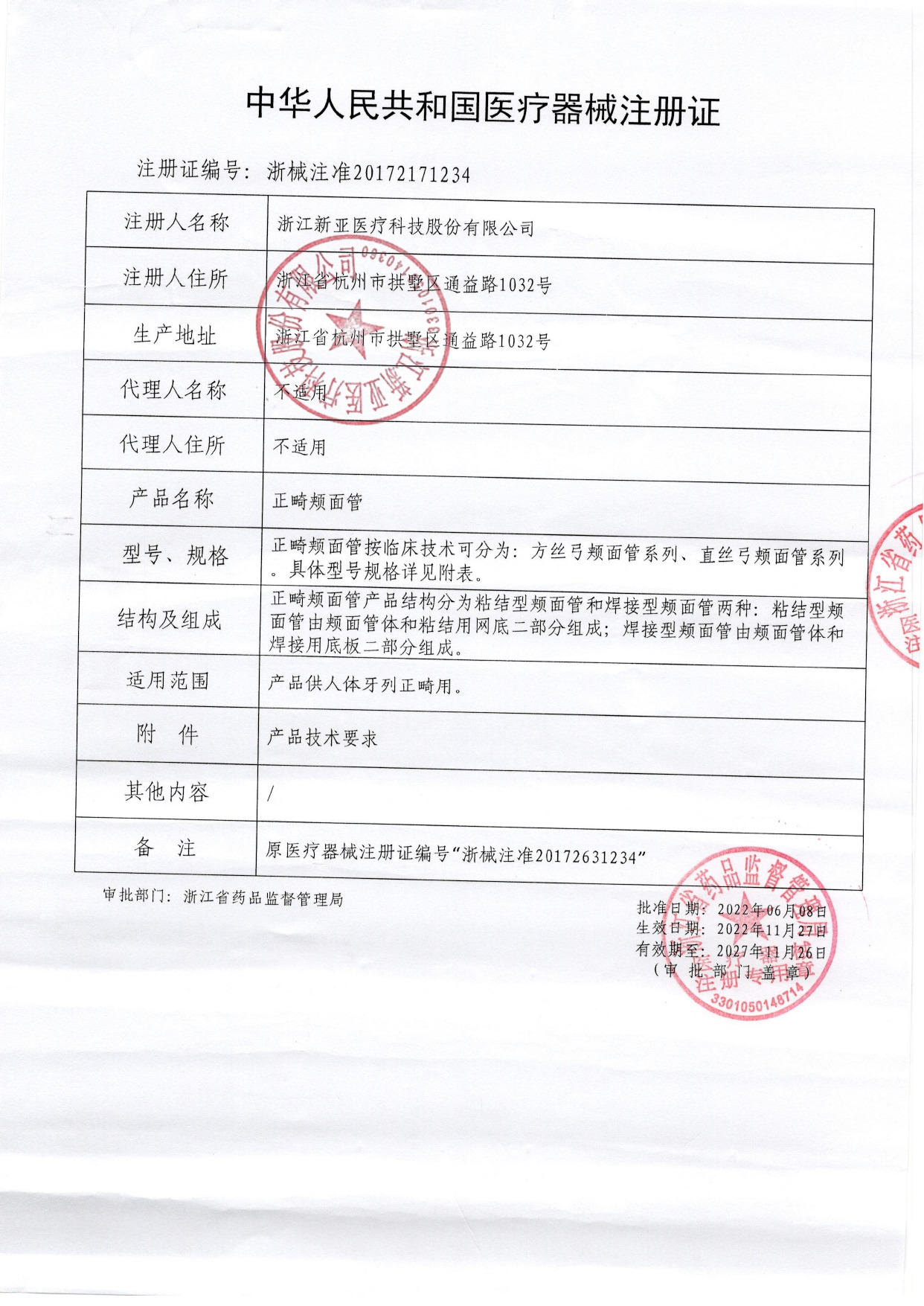 正畸颊面管(新亚 7牙位 PIM单管标准网底直丝弓颊面管 20粒装)