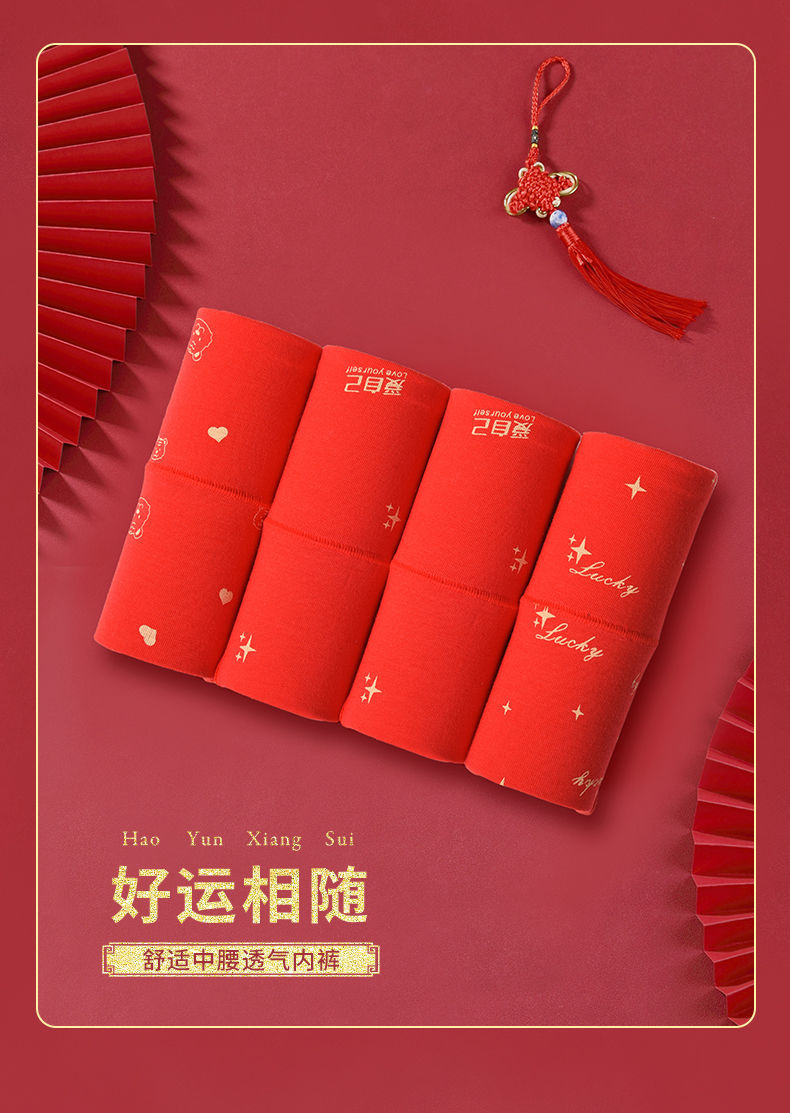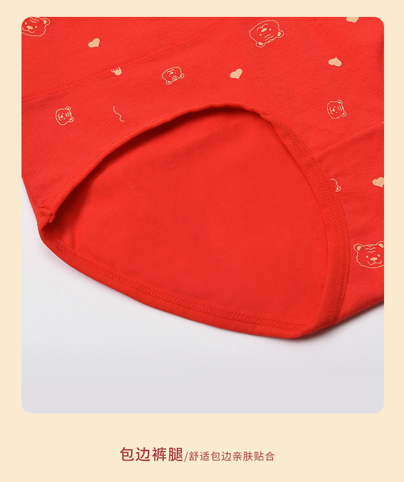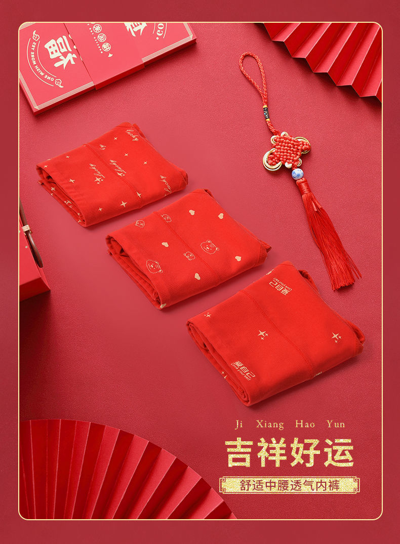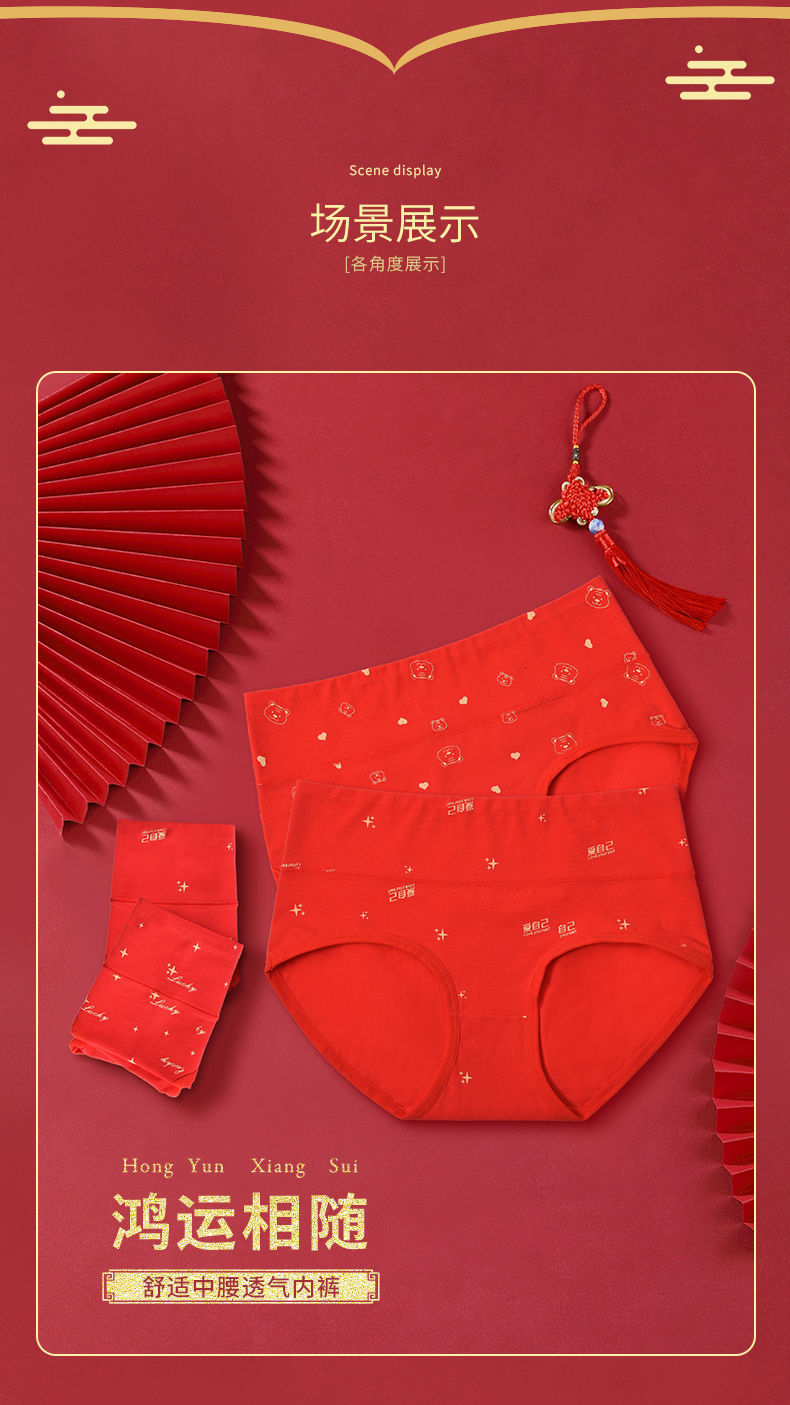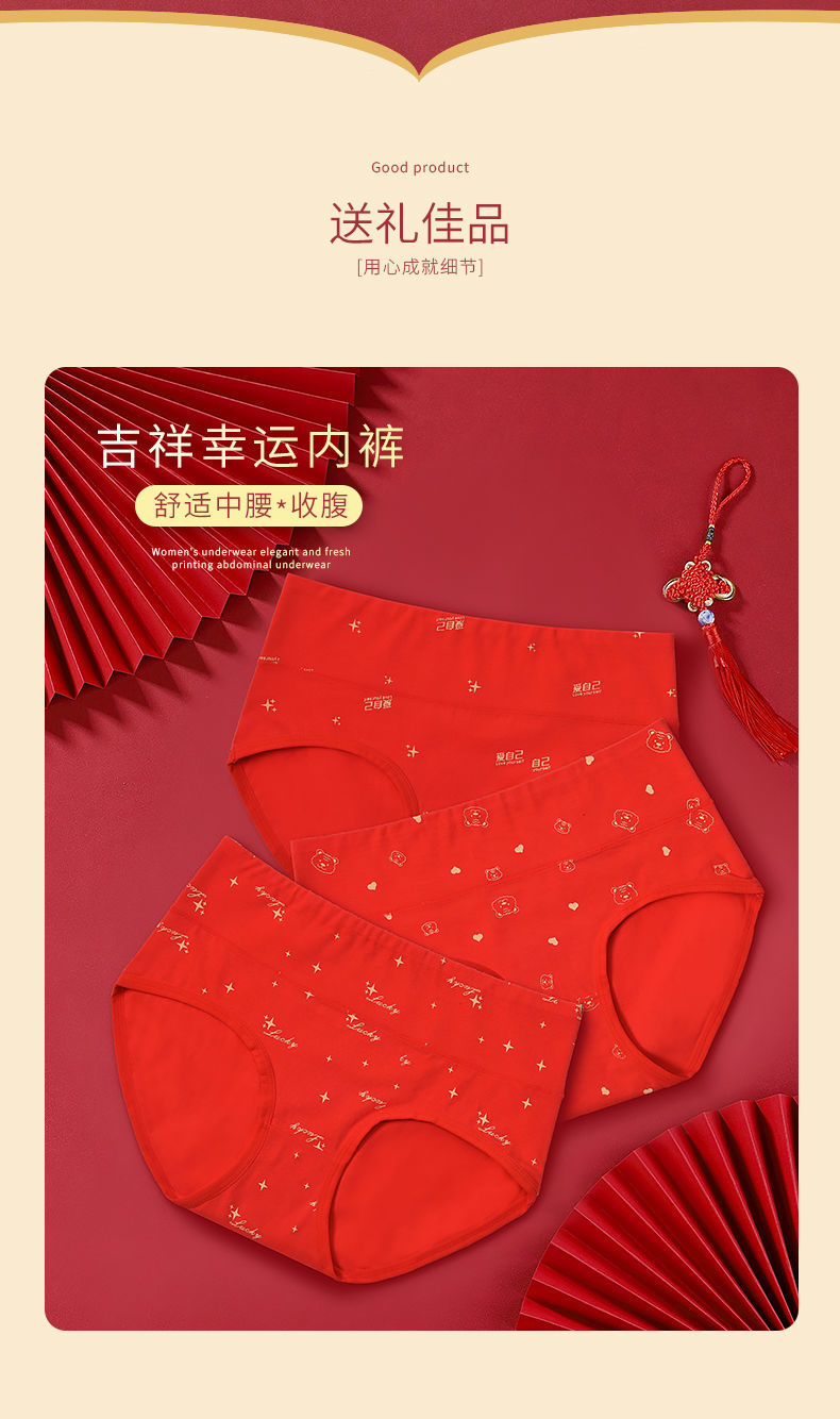 洁丽雅本命年红内裤女纯棉透气大红色鸿运裤中腰三角短裤女士裤头