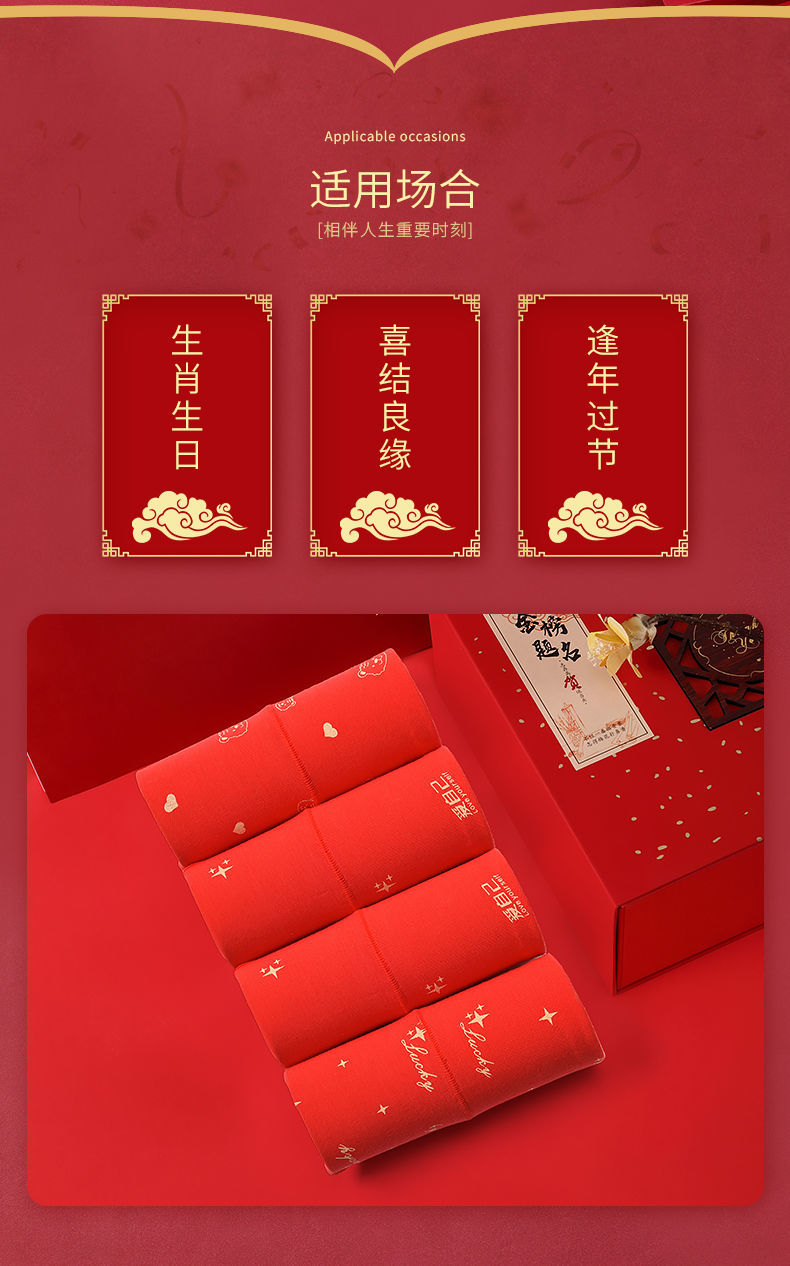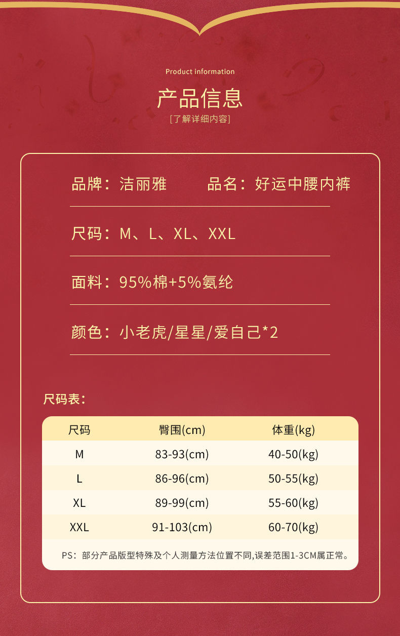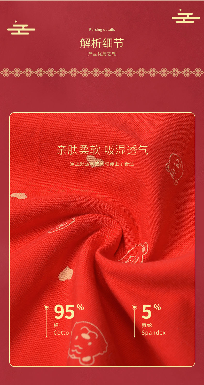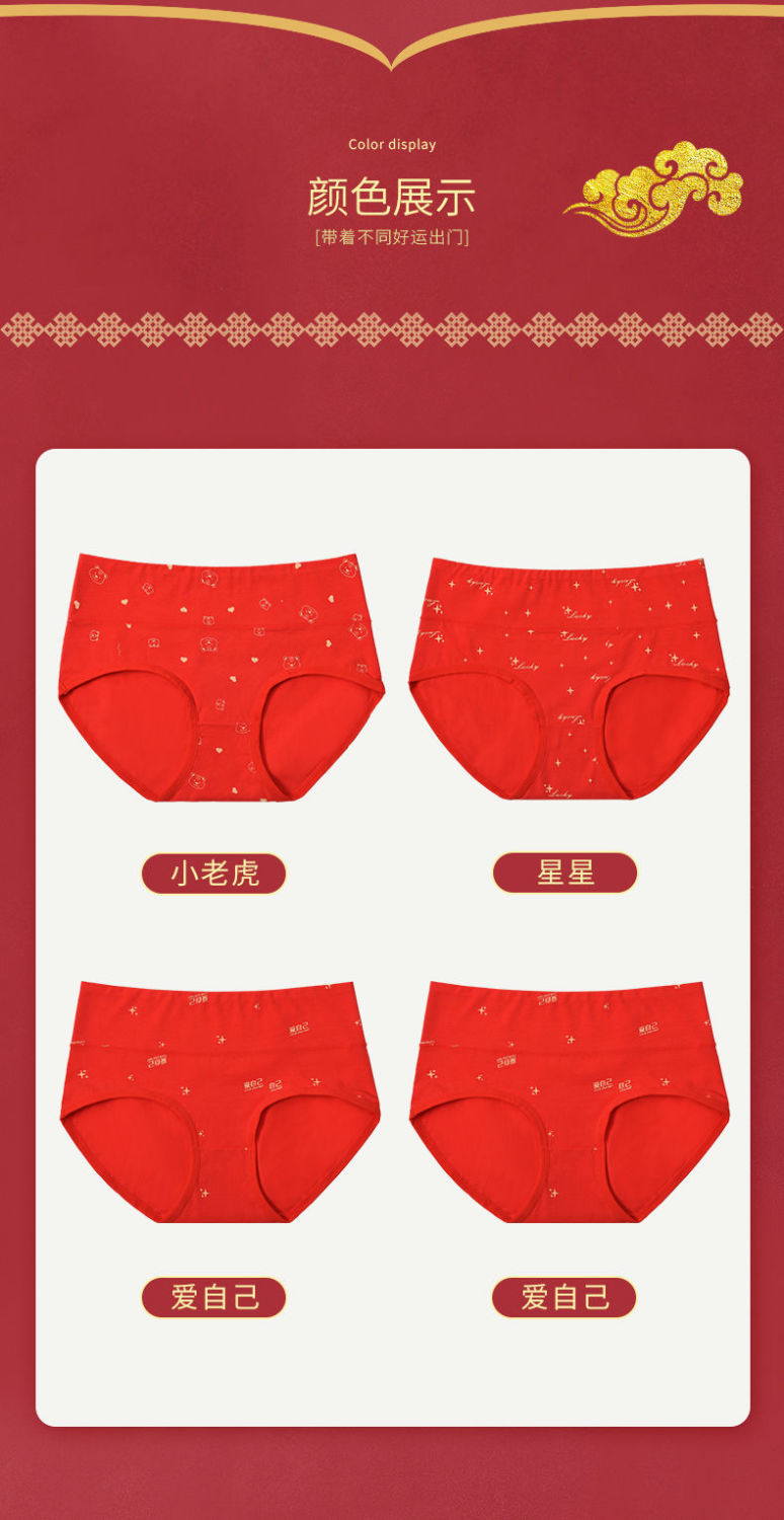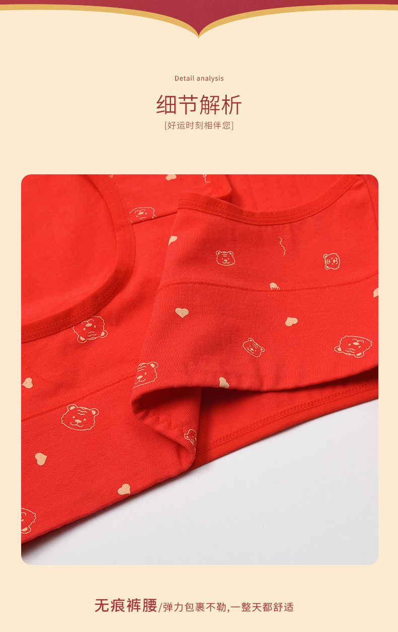 洁丽雅本命年红内裤女纯棉透气大红色鸿运裤中腰三角短裤女士裤头