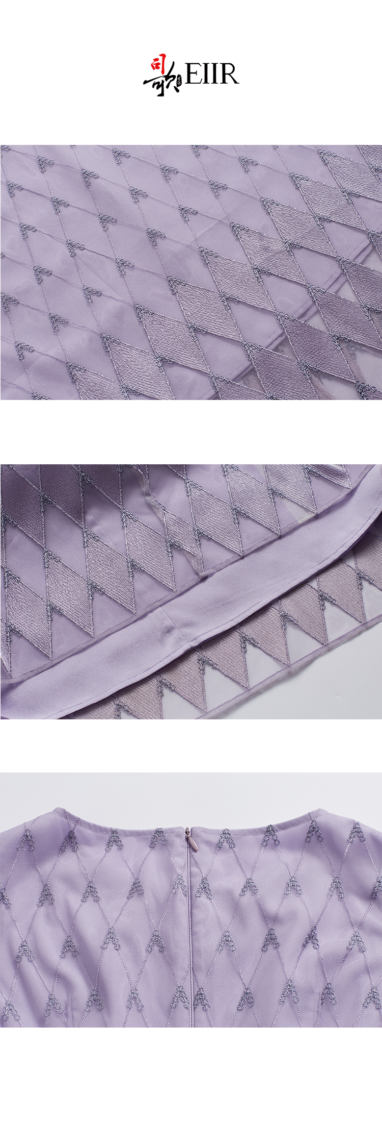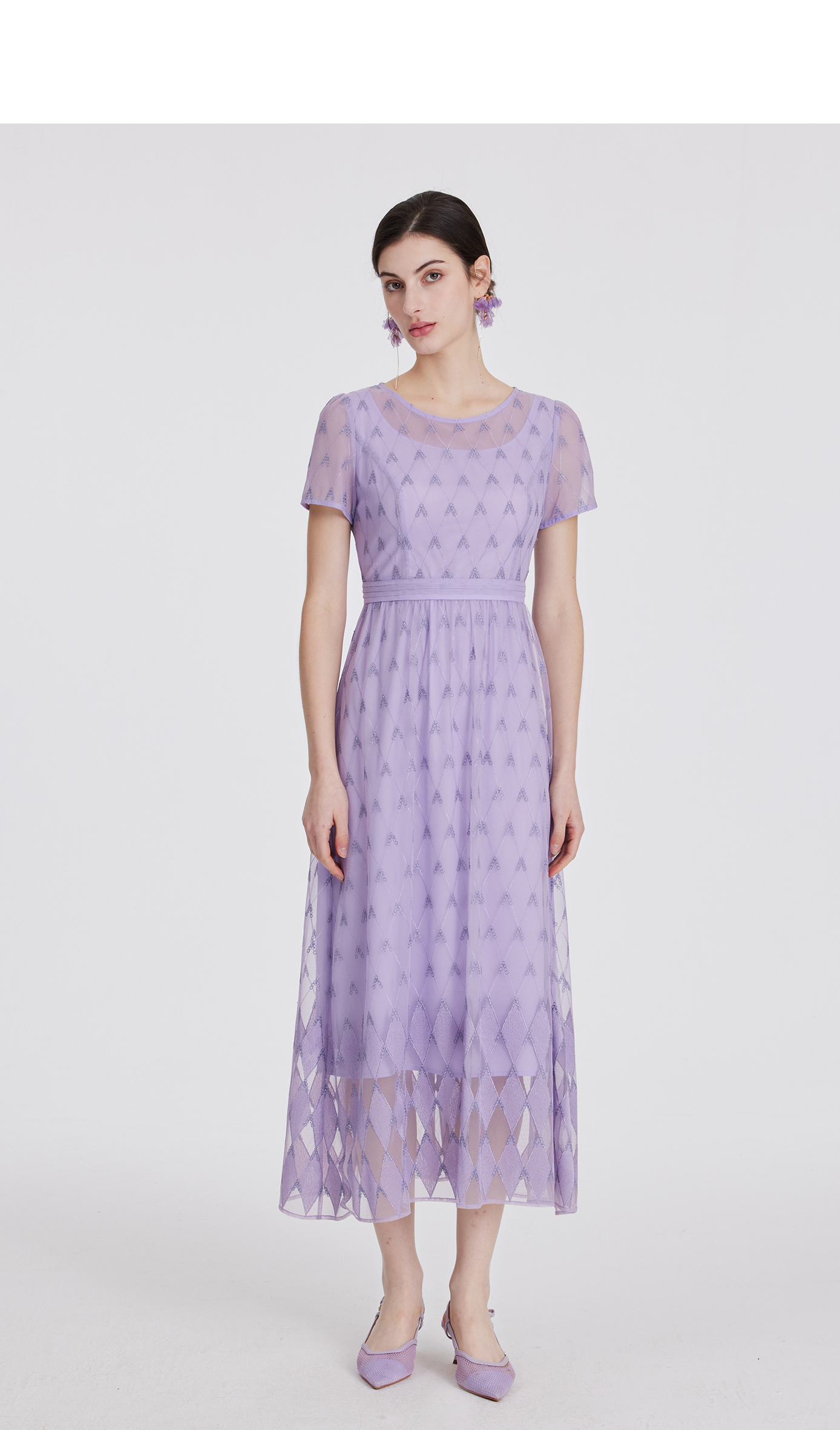 司歌蕾丝刺绣复古优雅菱形格短袖连衣裙A891053X
