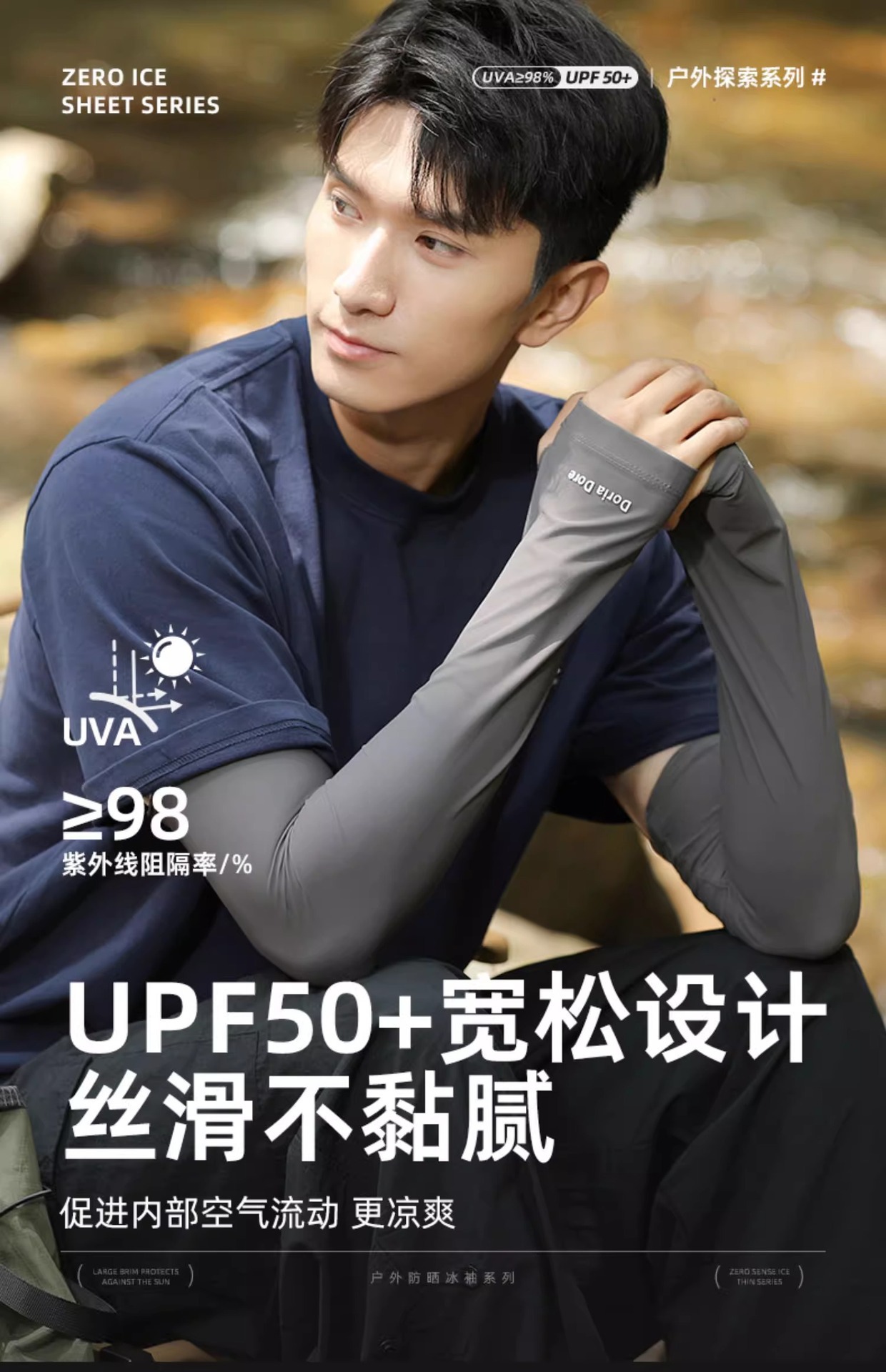 【出行常备❗️UPF50+冰丝防晒袖套】冰涼舒爽,凉爽透气,轻薄不闷热!男款夏季冰袖户外开车冰丝护袖防紫外线骑行手袖遮阳