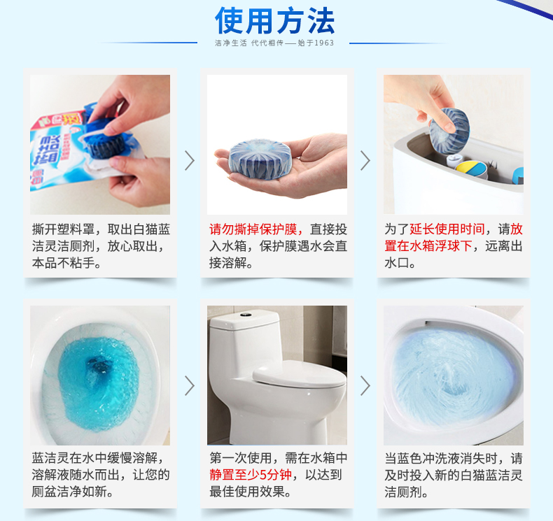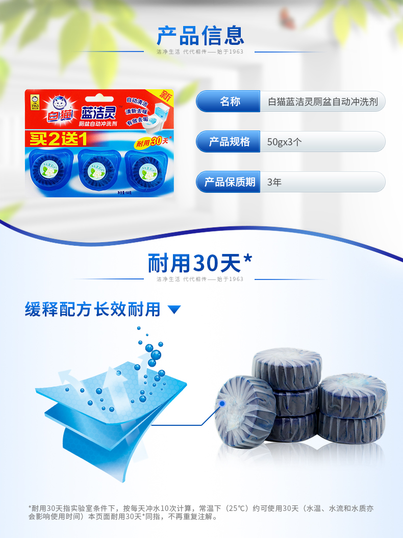 【买二送一】白猫蓝洁灵洁厕剂 蓝泡泡马桶清洁剂 厕盆自动冲洗剂 茉莉香50g