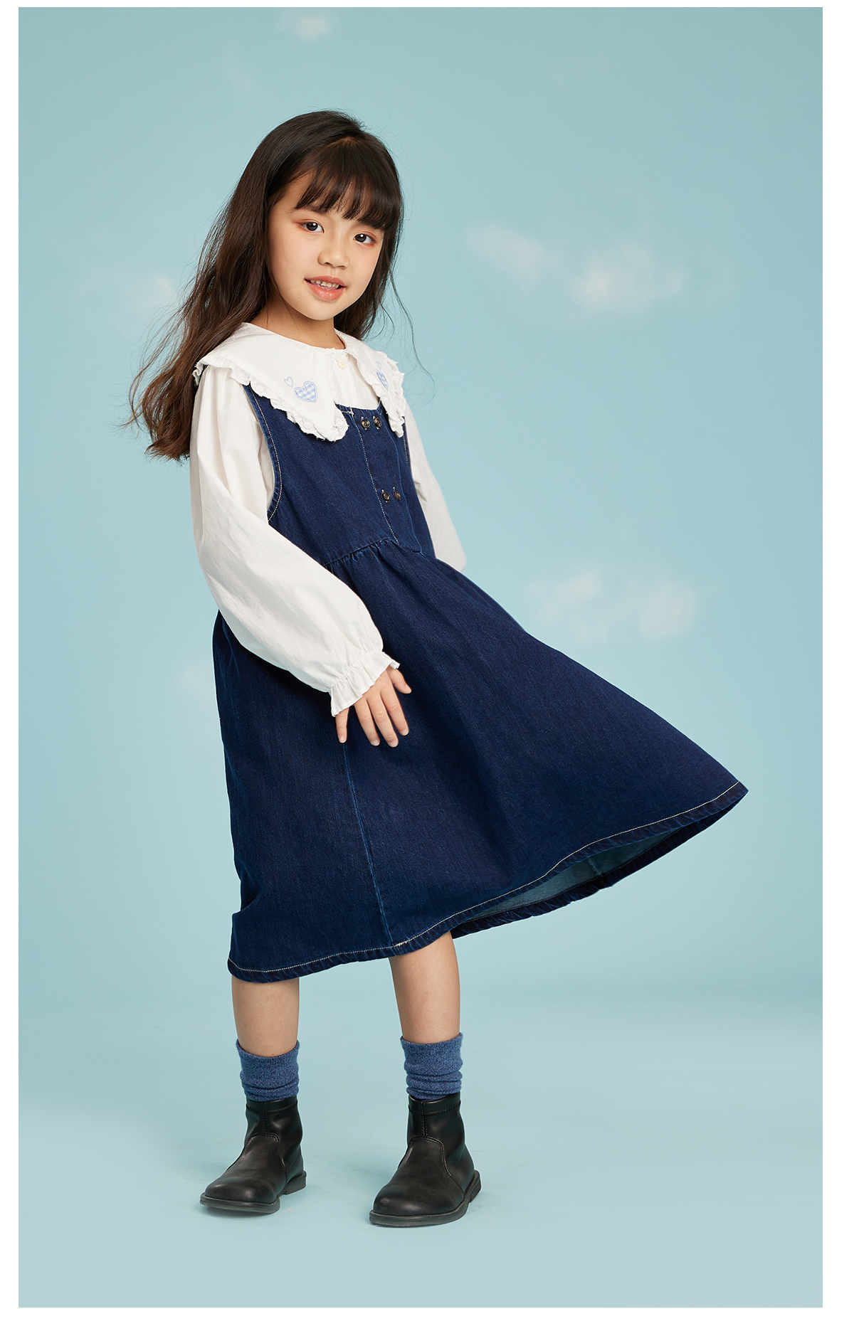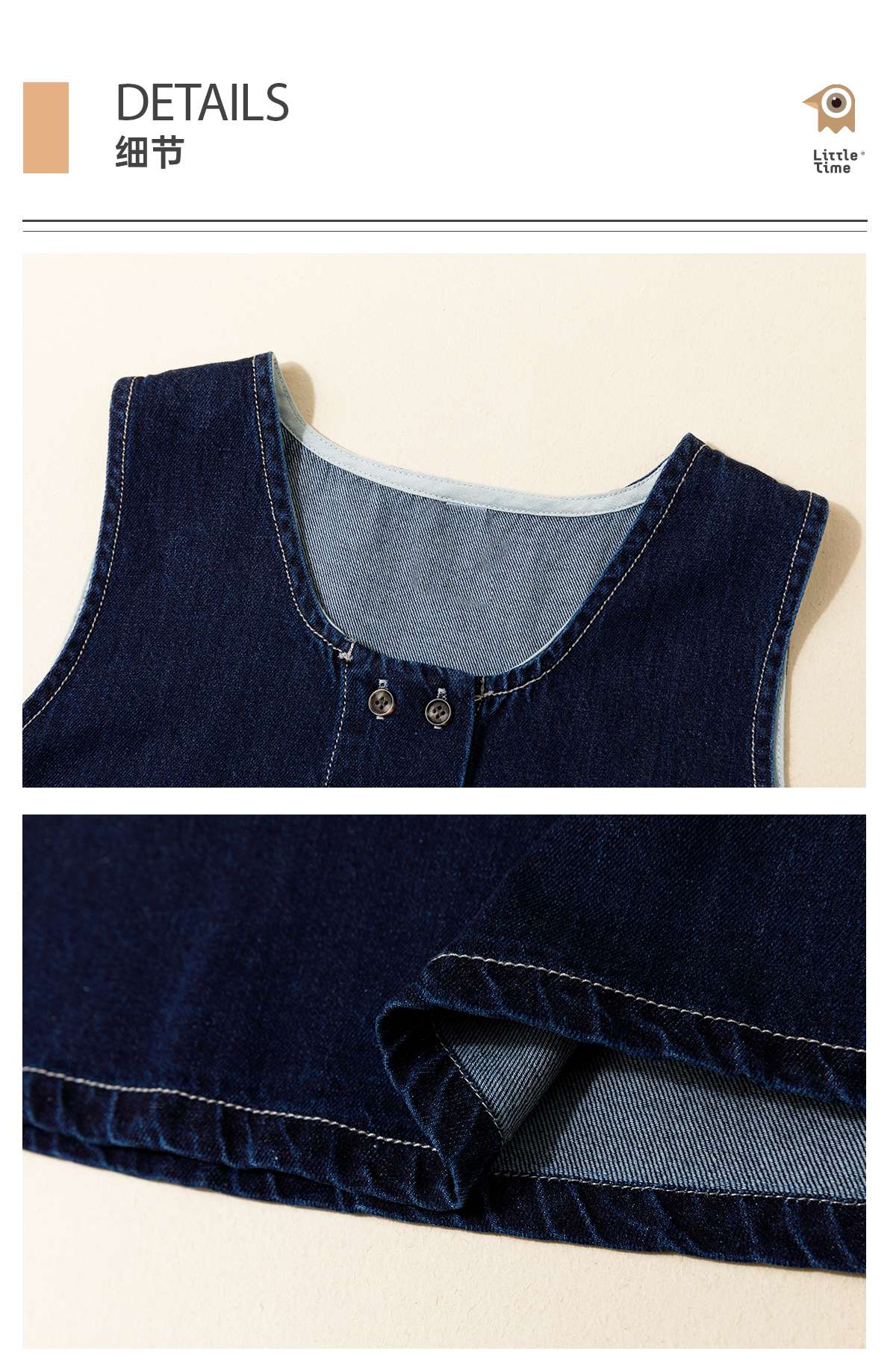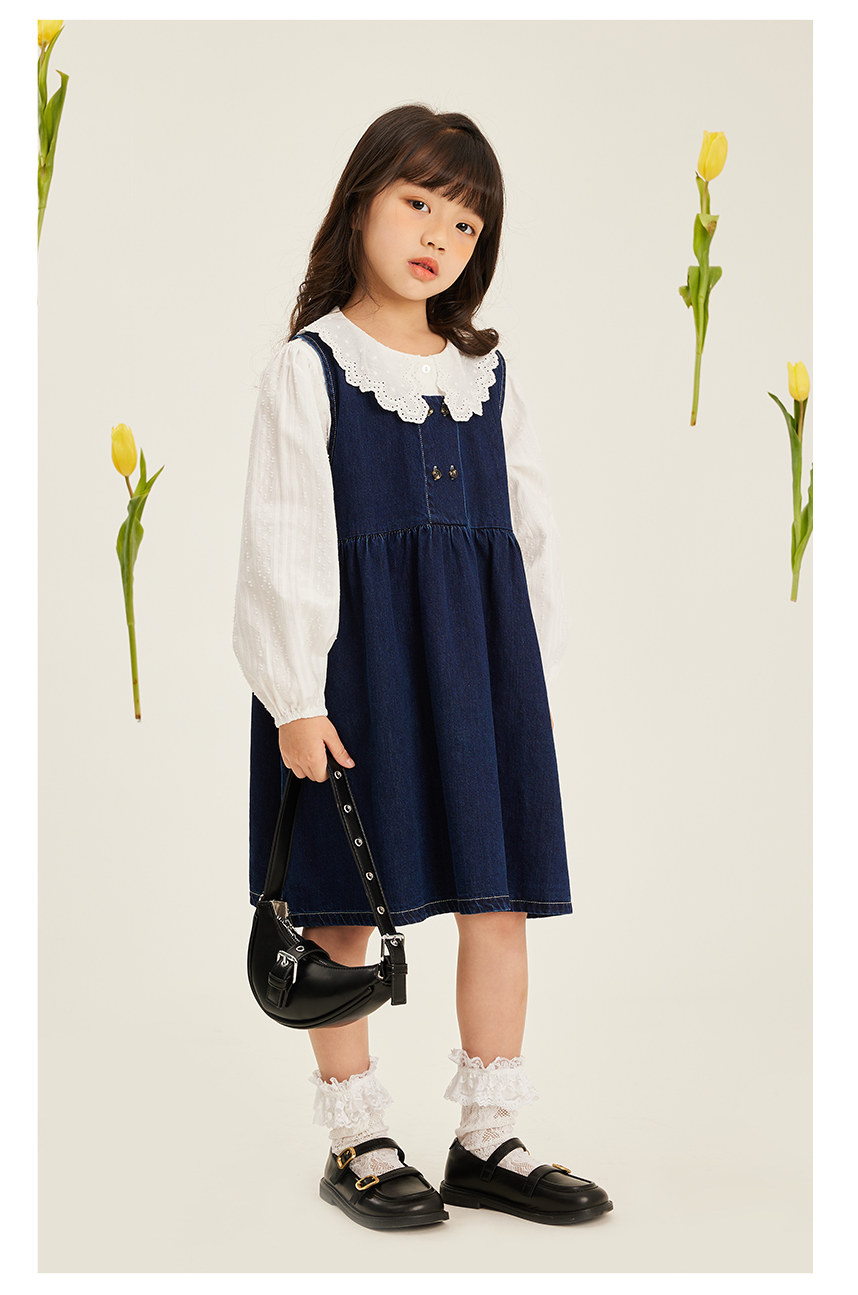 littletime女童牛仔背心裙2023春季新款韩版文艺儿童春秋连衣裙