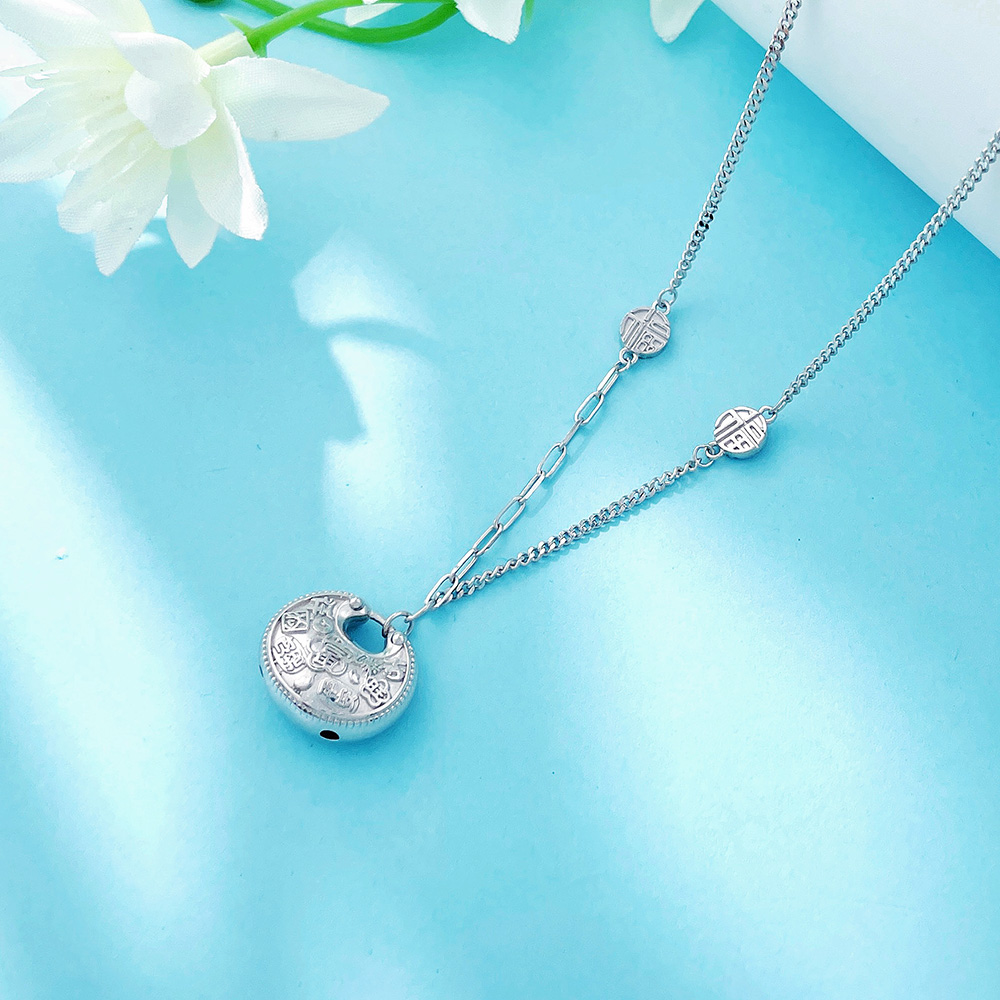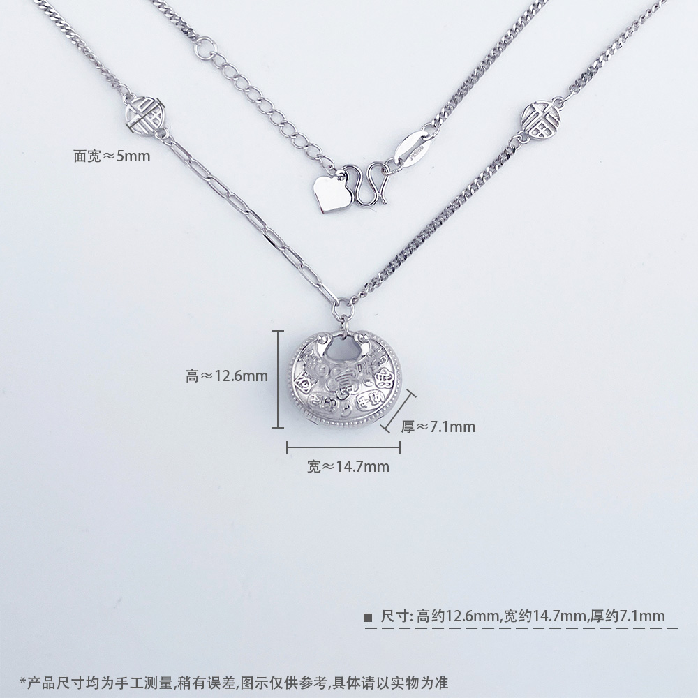 【限时8.8折】【线上铂金馆】PT950 #复古风 【国际铂金协会】铂金空心AB调节吉祥如意吉言吉语锁包套链(BTL00364)预售产品下单后不退款不退货不换货不补差价)