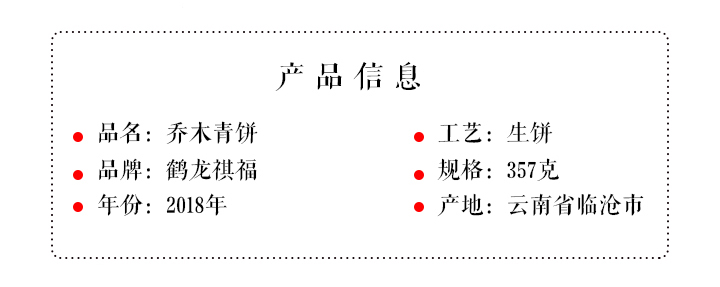 生普丨鹤龍祺福 2018年 乔木青饼 357克/饼
