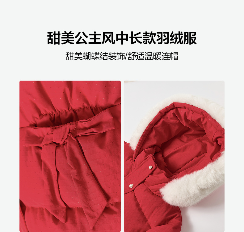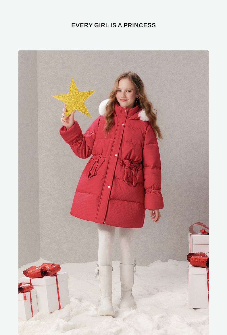 笛莎Deesha 童装女童羽绒服2025冬新款甜美公主风中长款羽绒服