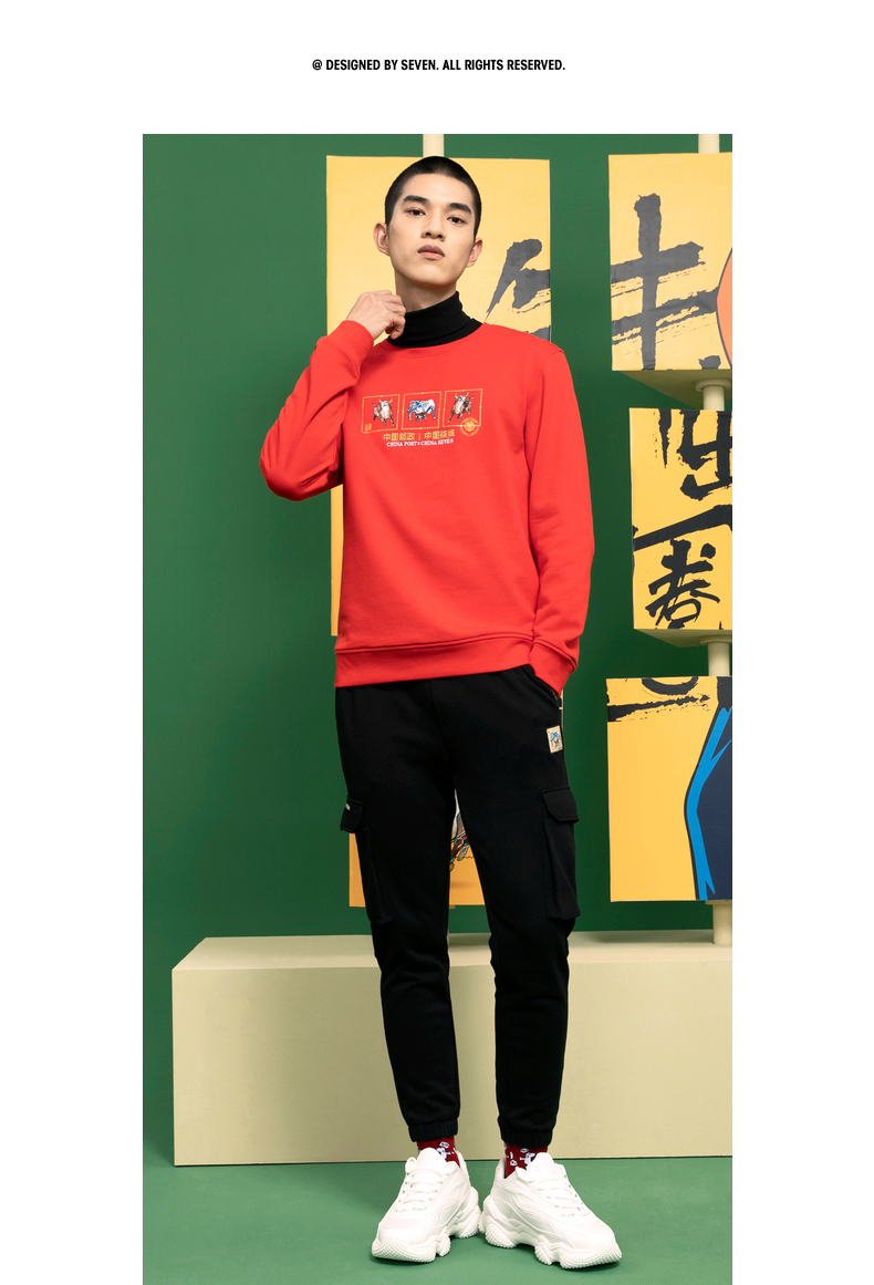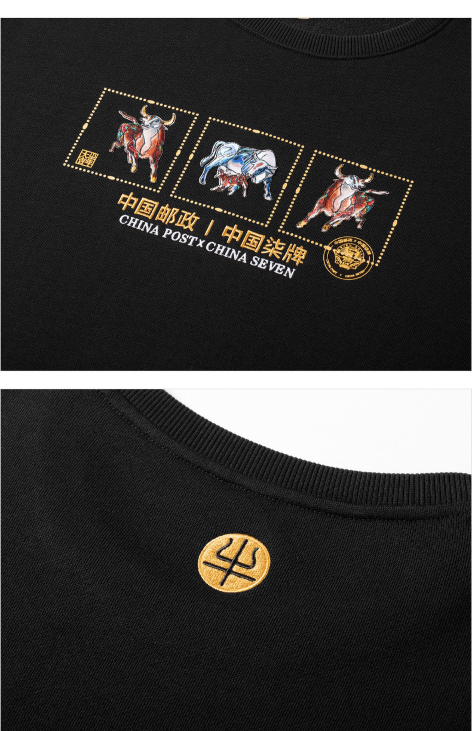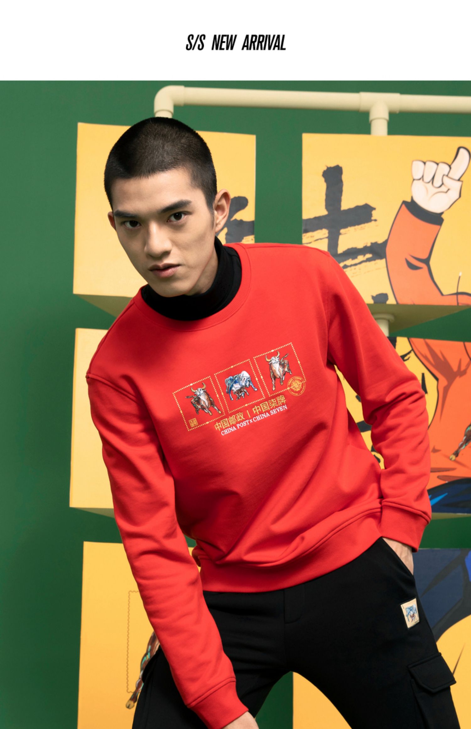 【特价】【中国邮政联名款】柒牌男装卫衣新年国潮系列刺绣圆领套头卫衣 121W70040