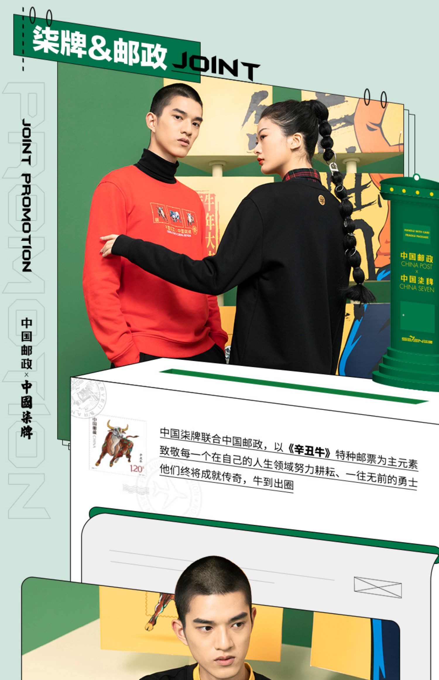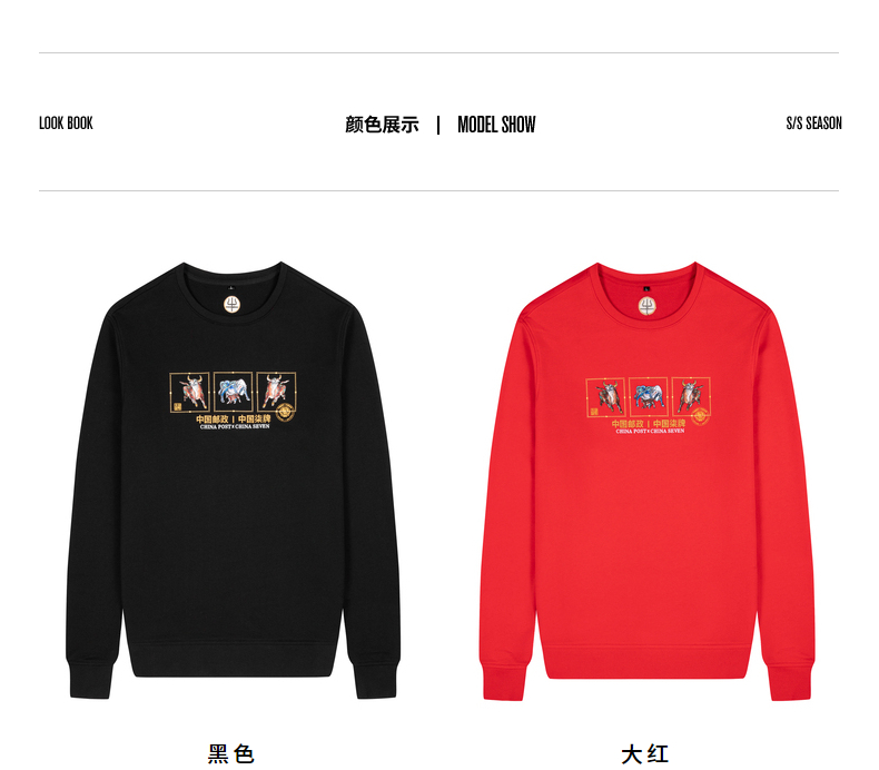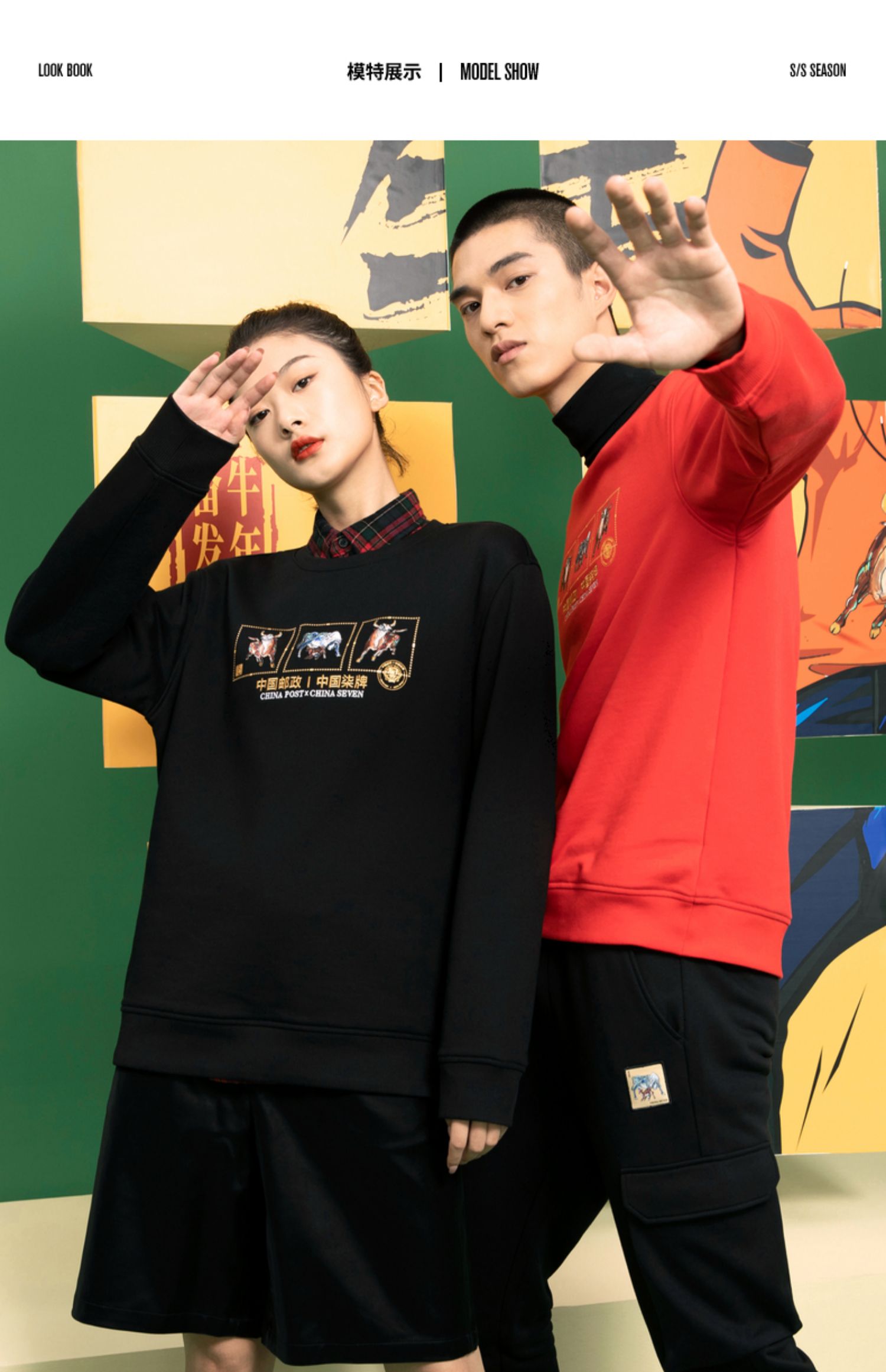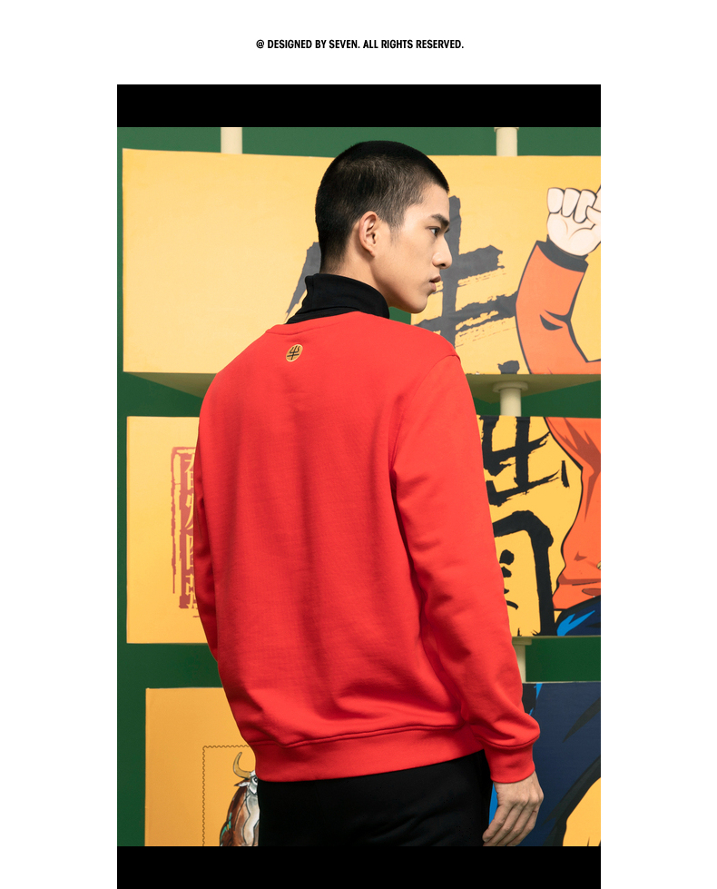 【特价】【中国邮政联名款】柒牌男装卫衣新年国潮系列刺绣圆领套头卫衣 121W70040