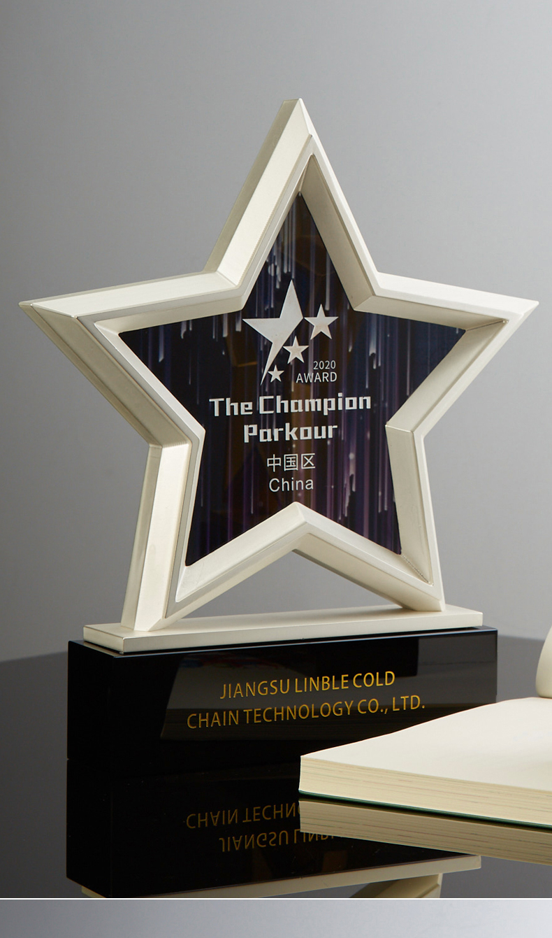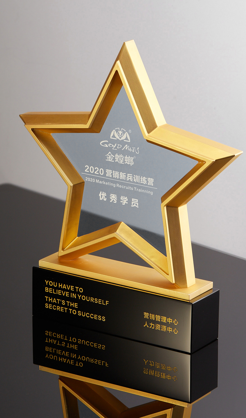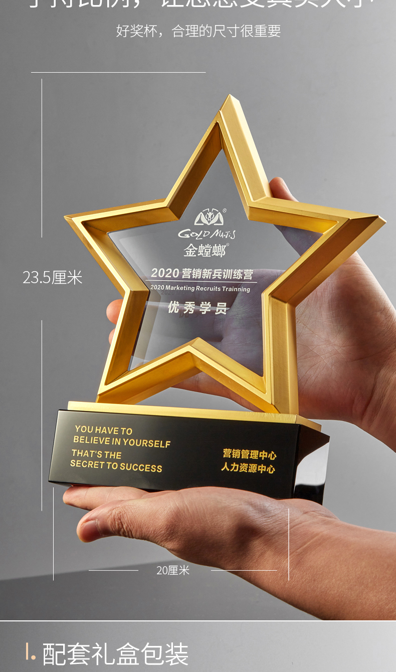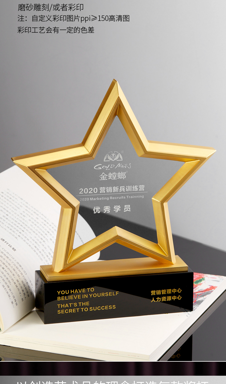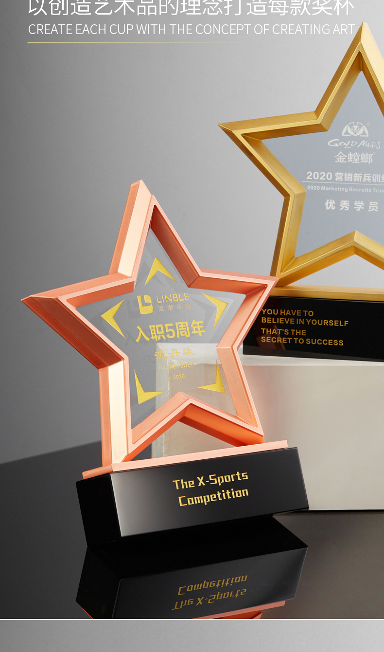 金属五角星水晶奖杯牌定制定做年会员工合作伙伴刻字2021年会颁奖