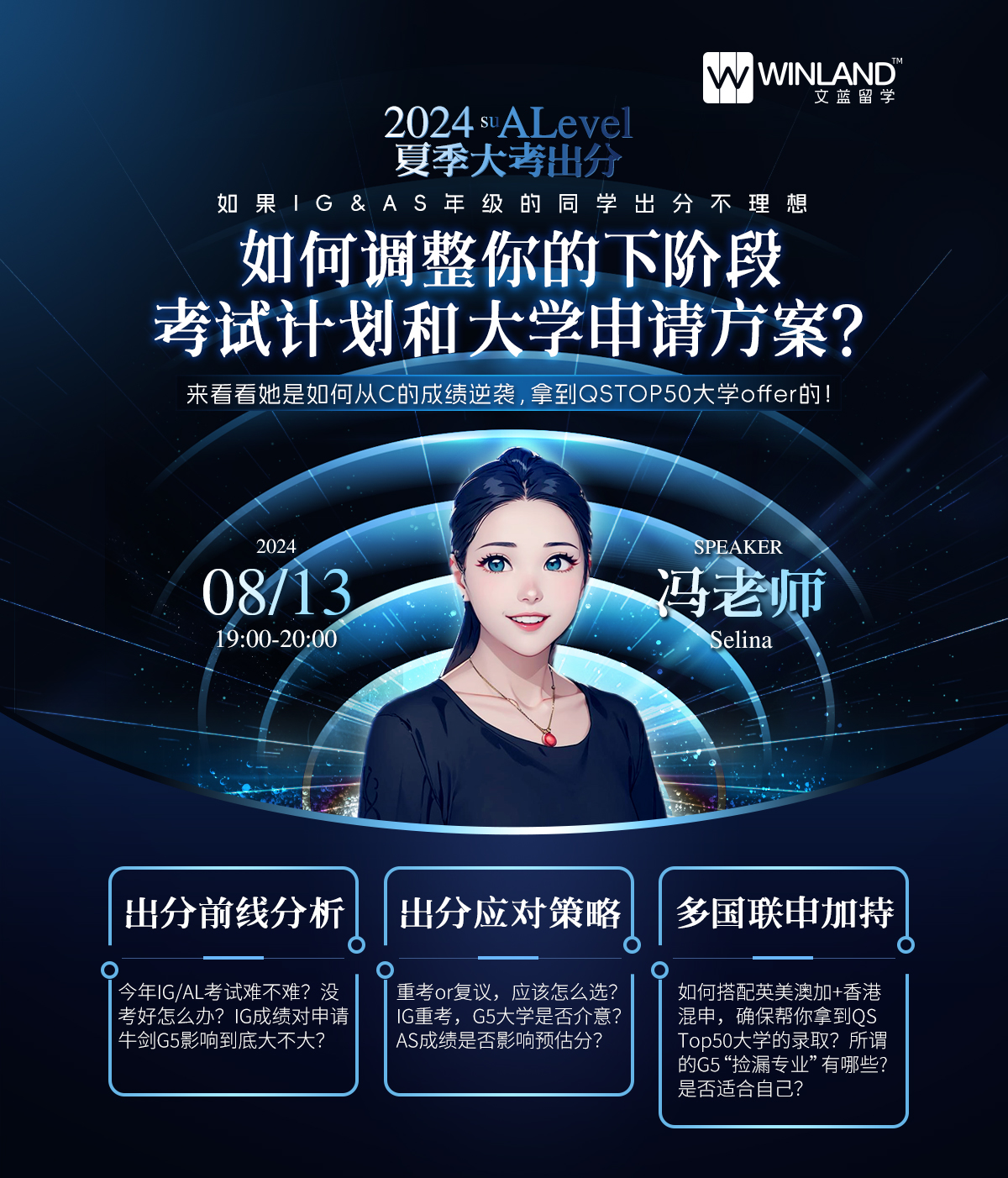 【8.13】2024 ALevel夏季大考出分,如果IG&AS年级的同学出分不理想,如何调整你的下阶段考试计划和大学申请方案?来看看她是如何从C的成绩逆袭,拿到QSTOP50大学offer的!