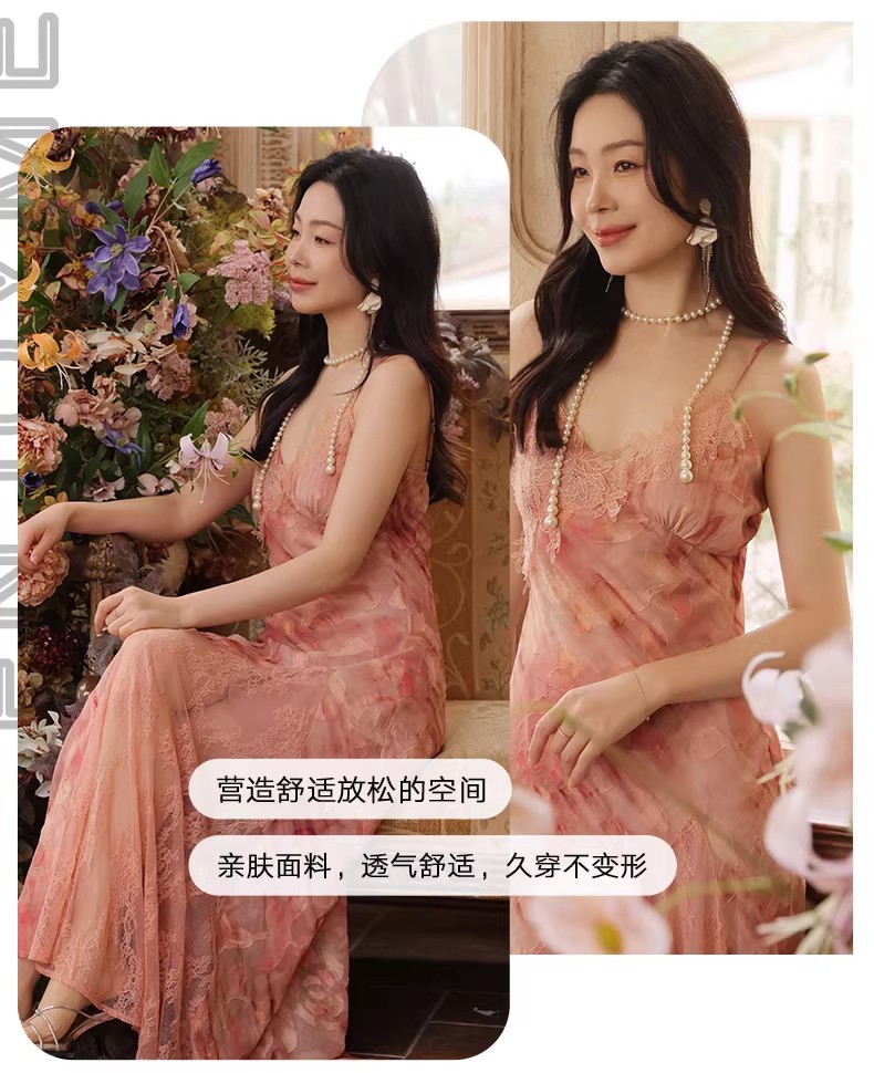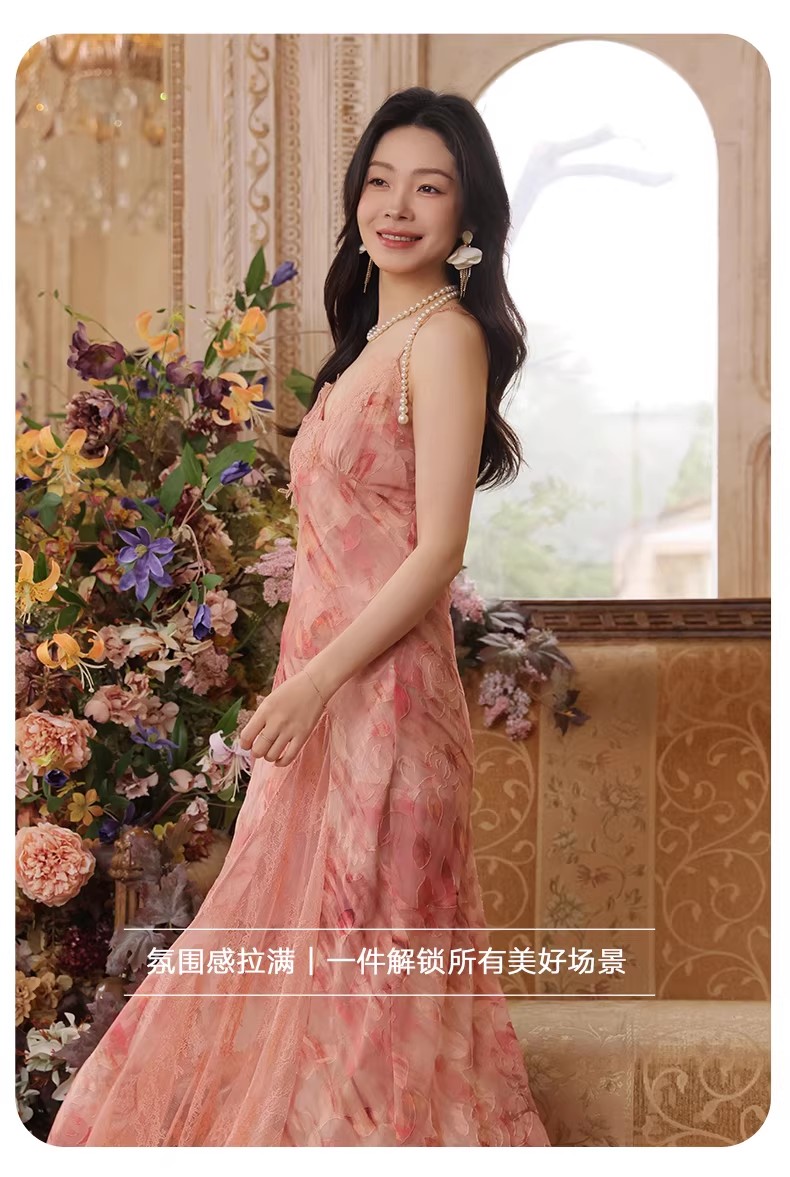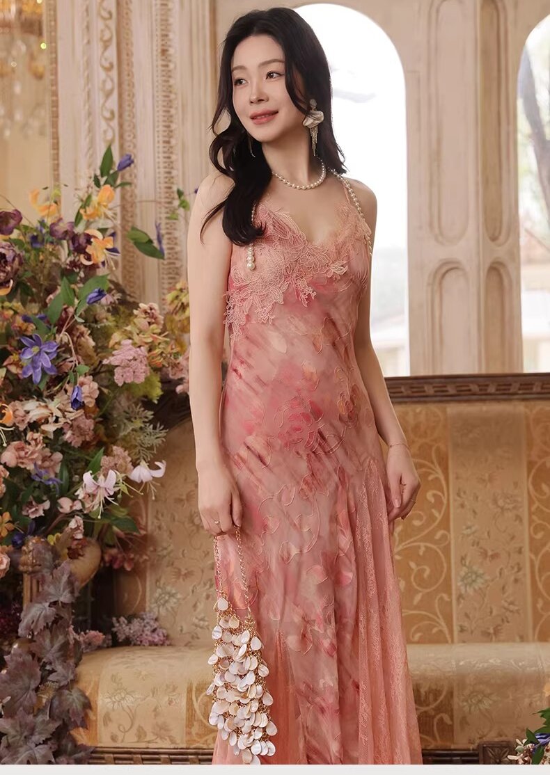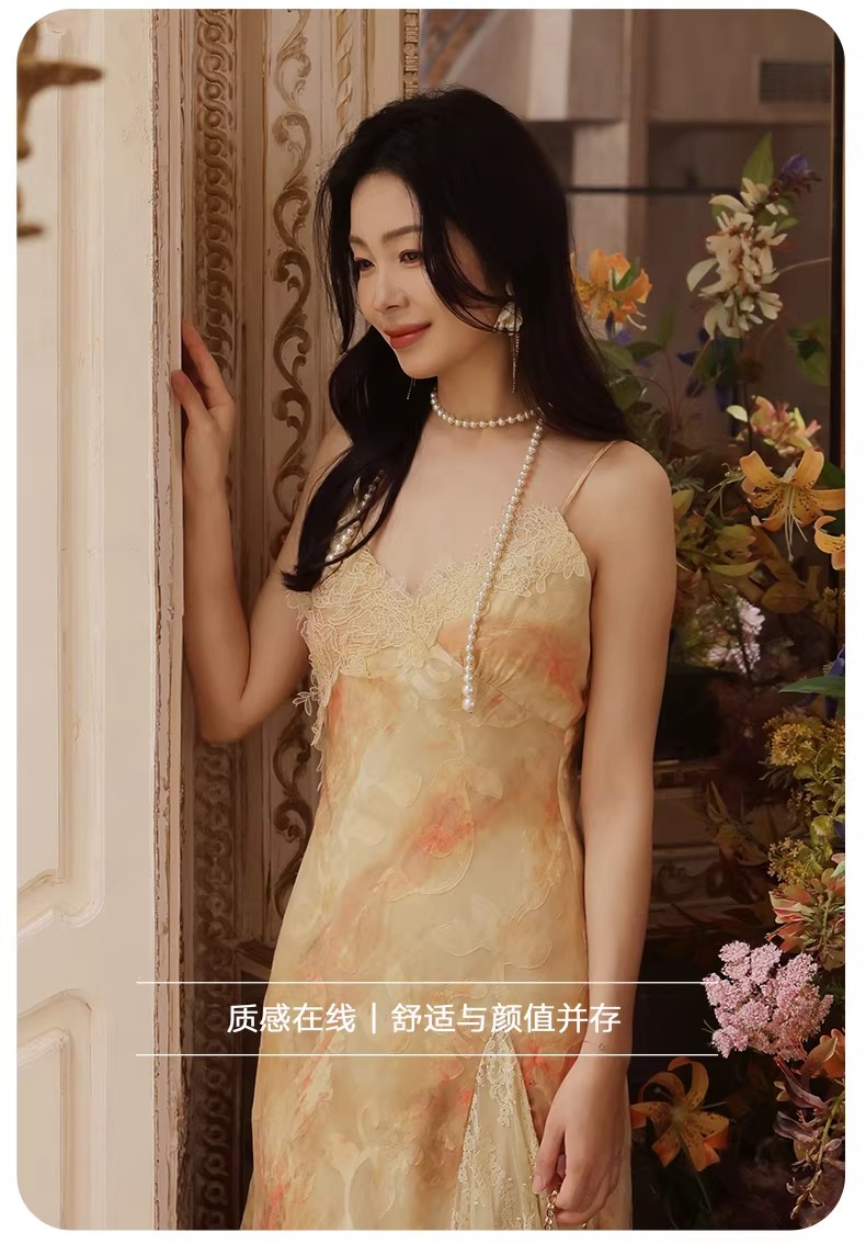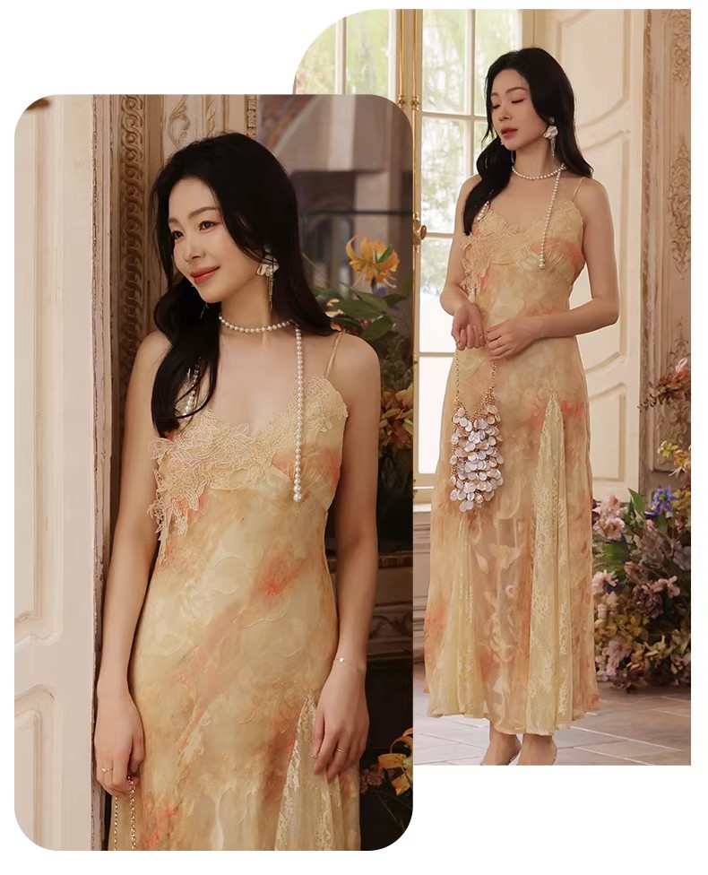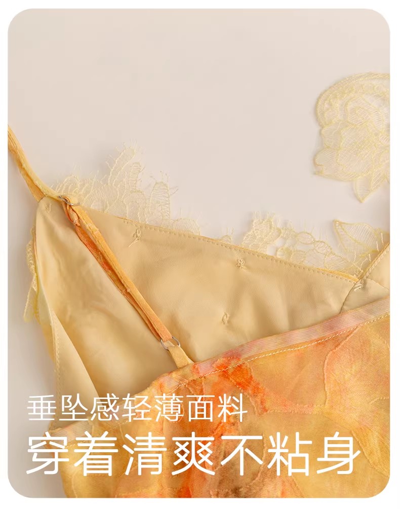 【门店同款】ENJOY夏季橘粉晚樱拼蕾丝吊带裙 170796380